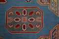 A Beautiful Genuine Pakistan Kazak rug is Hand Knotted by skillful weavers in Pakistan with 100% Wool Material. This rug is in New, First Quality condition. dimensions are 11' 9'' X 9' 2'' in foot and 358 X 279 in centimeter. the primary color is Navy Blue & Blues.