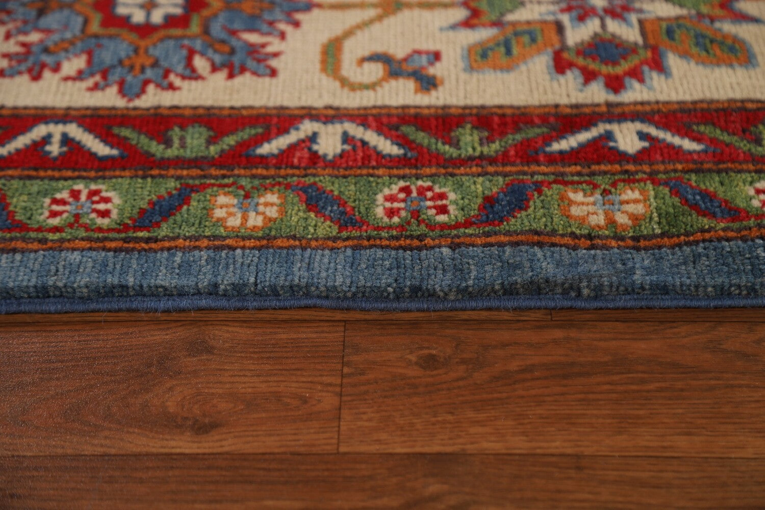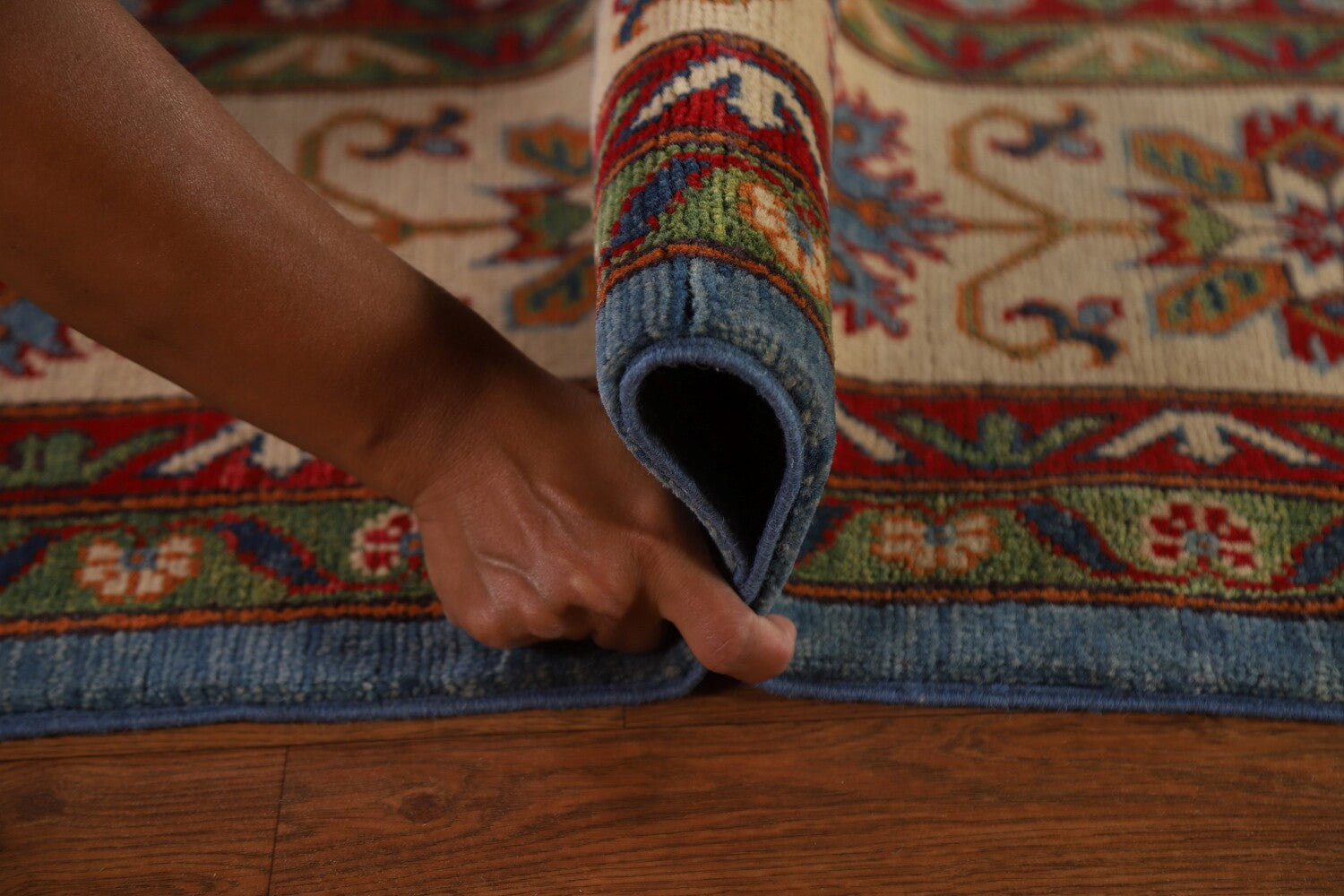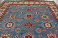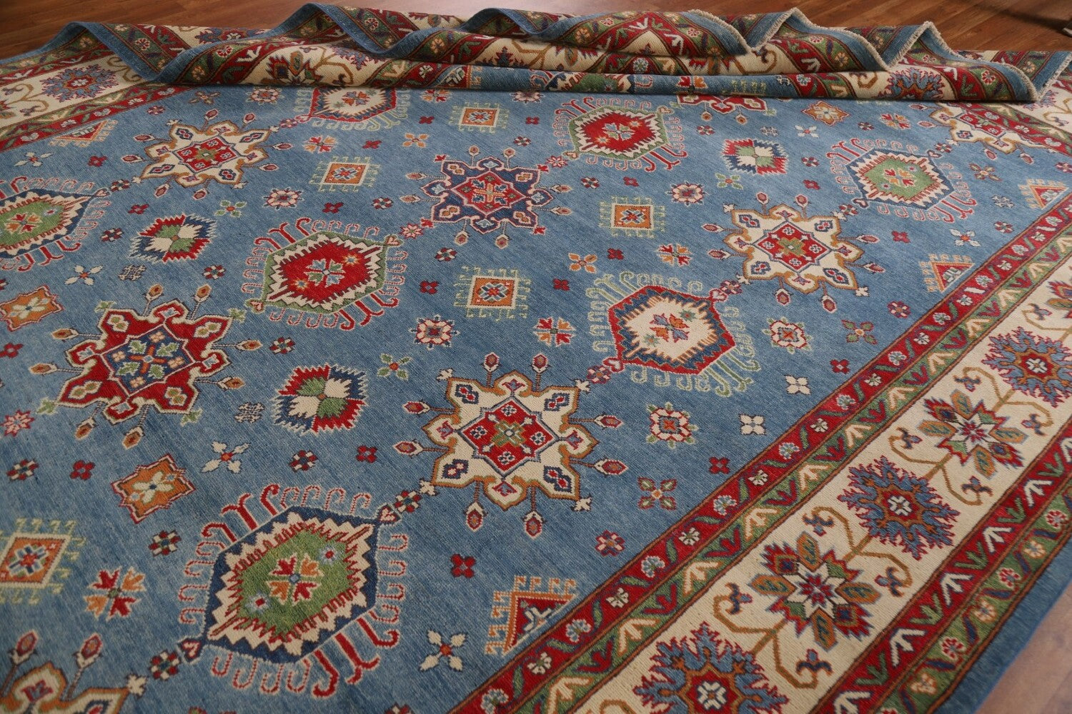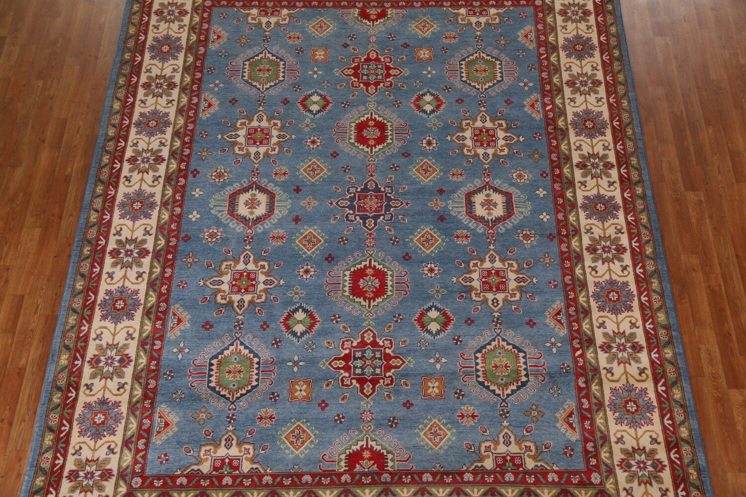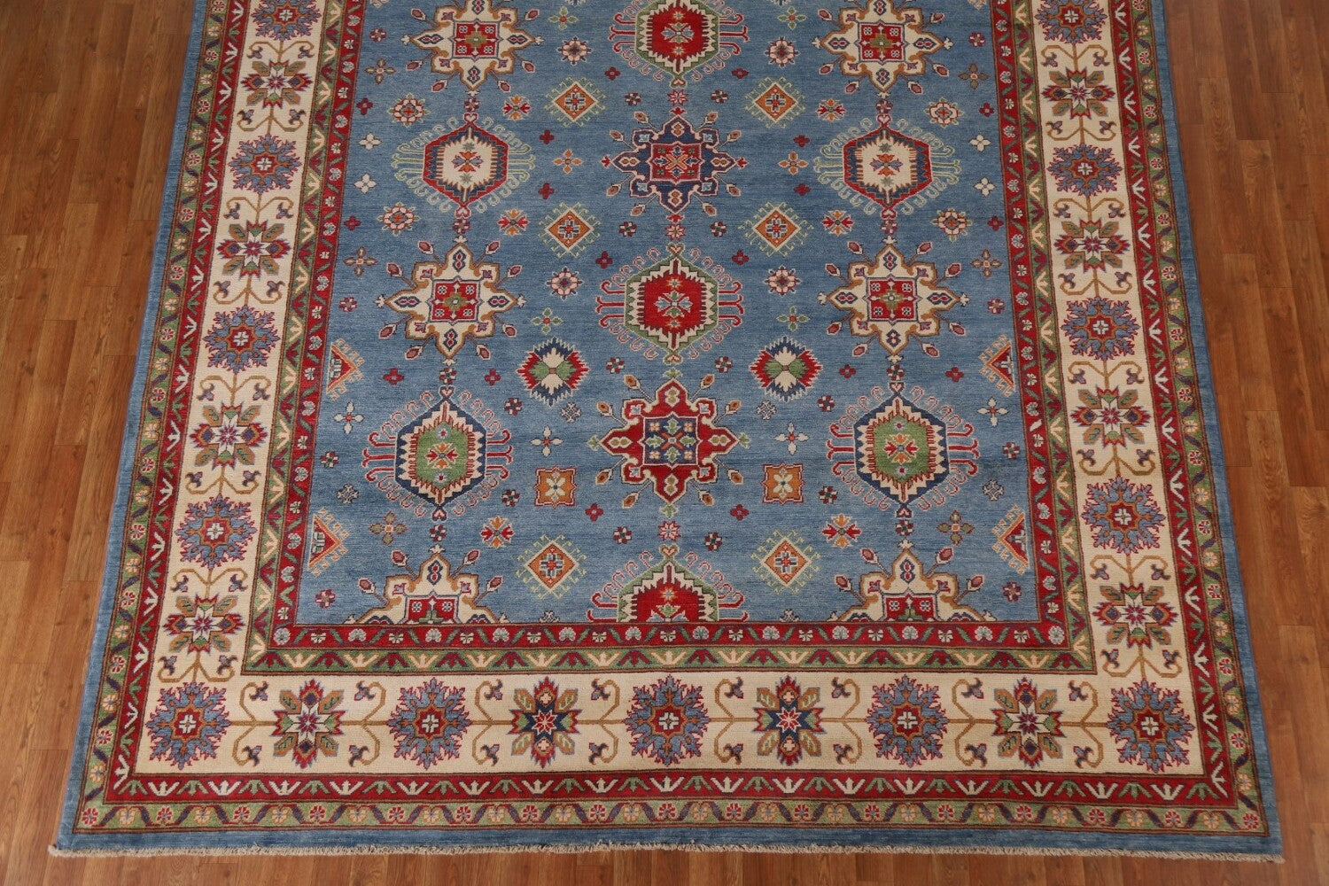A Beautiful Genuine Pakistan Kazak rug is Hand Knotted by skillful weavers in Pakistan with 100% Wool Material. This rug is in condition. dimensions are 11' 10'' X 8' 11'' in foot and 361 X 272 in centimeter. the primary color is Navy Blue & Blues.