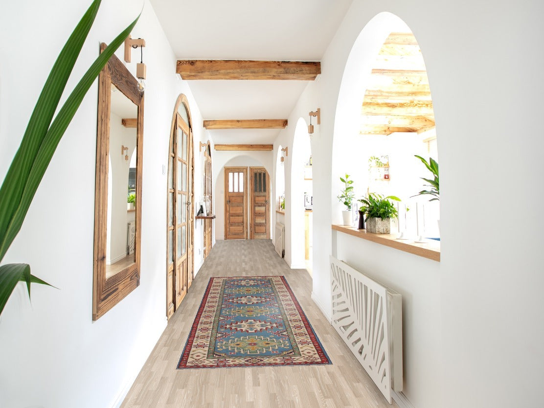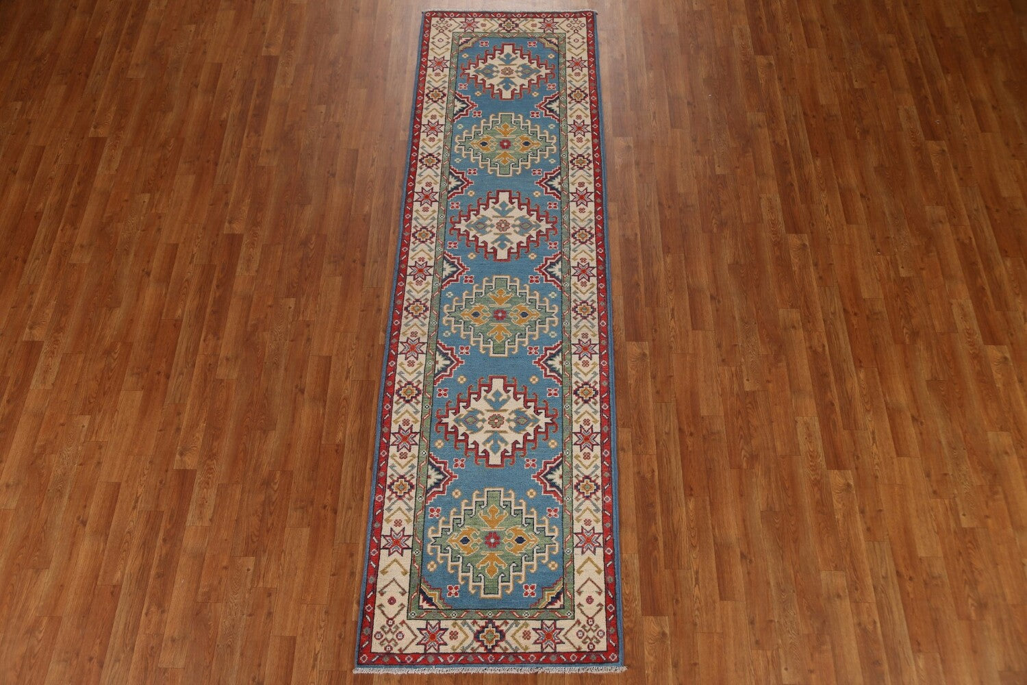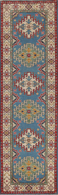 Light Blue Kazak Wool Runner Rug 3x10