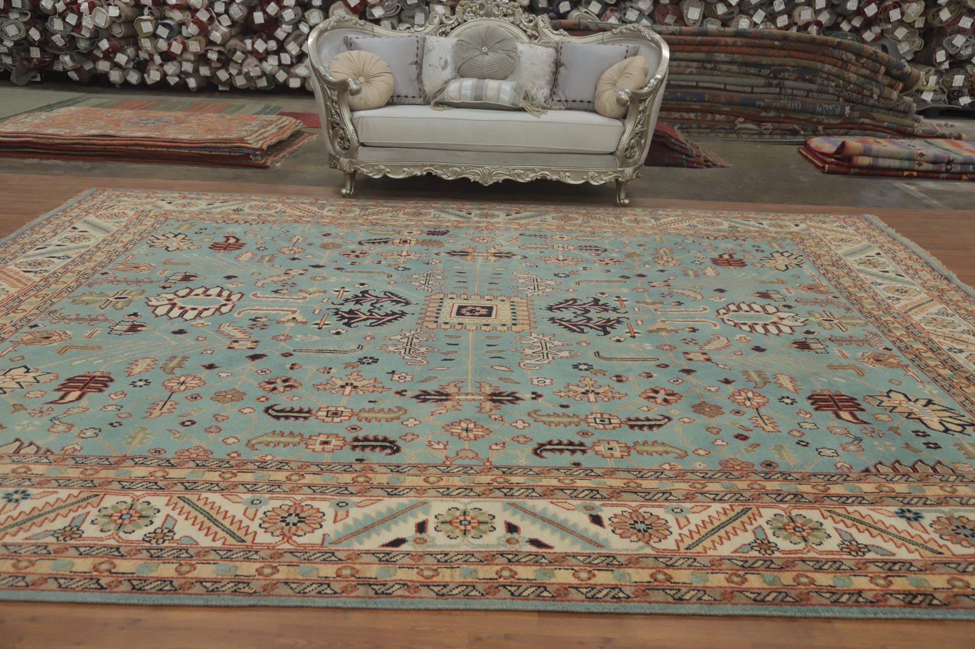 Light Blue Oushak Handmade Large Rug 12x15