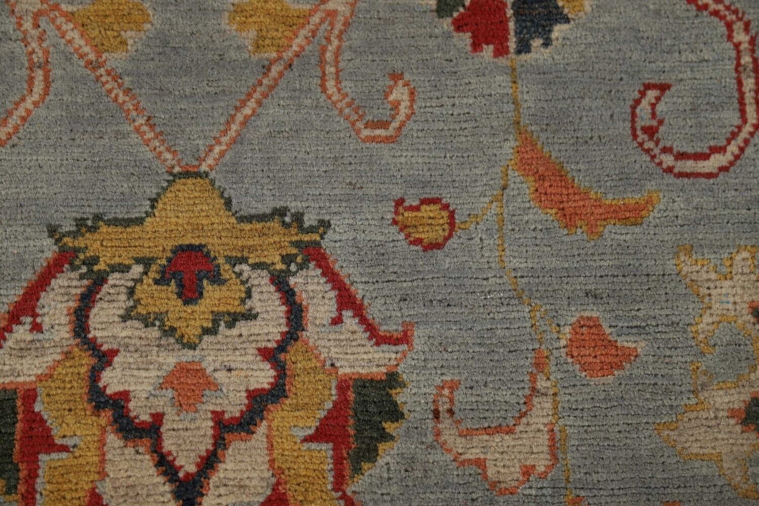 A Beautiful Genuine Pakistan Oushak rug is Hand Knotted by skillful weavers in Pakistan with 100% Wool Material. This rug is in New, First Quality condition. dimensions are 10' 5'' X 2' 9'' in foot and 318 X 84 in centimeter. the primary color is Navy Blue & Blues.