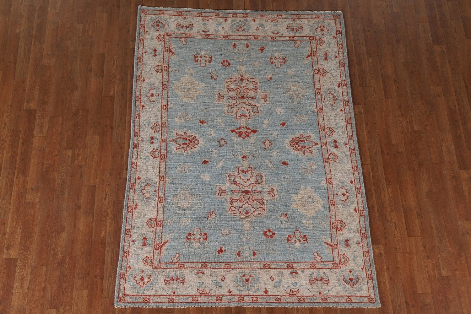 Light Blue Oushak Vegetable Dye Area Rug 5x7