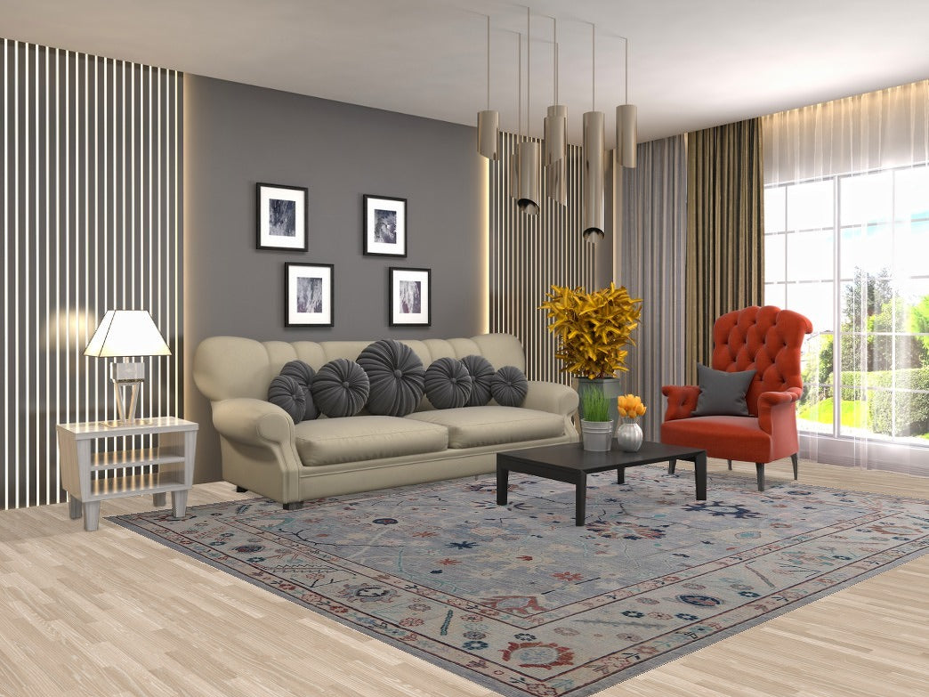 Light Blue Oushak Vegetable Dye Area Rug 8x10