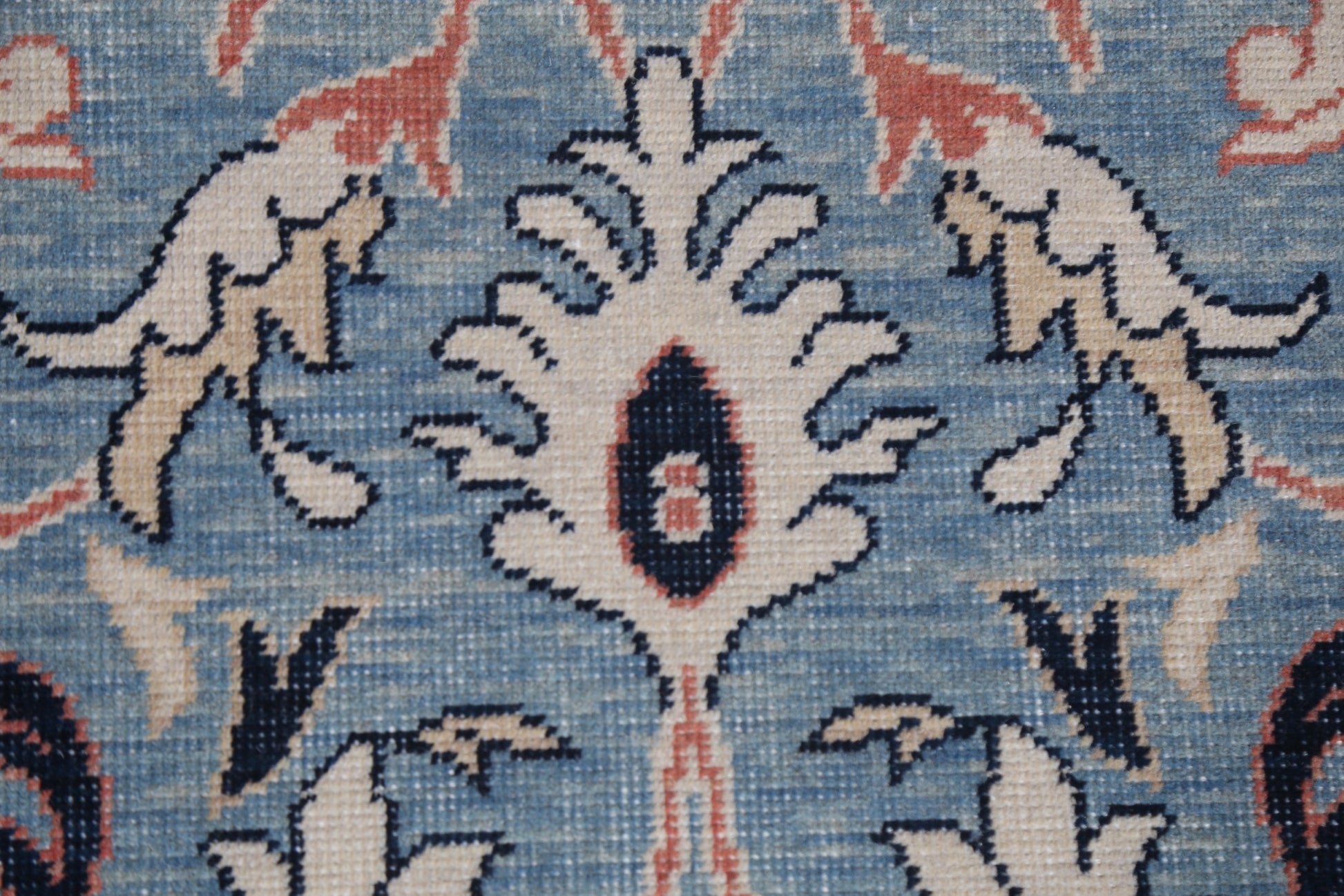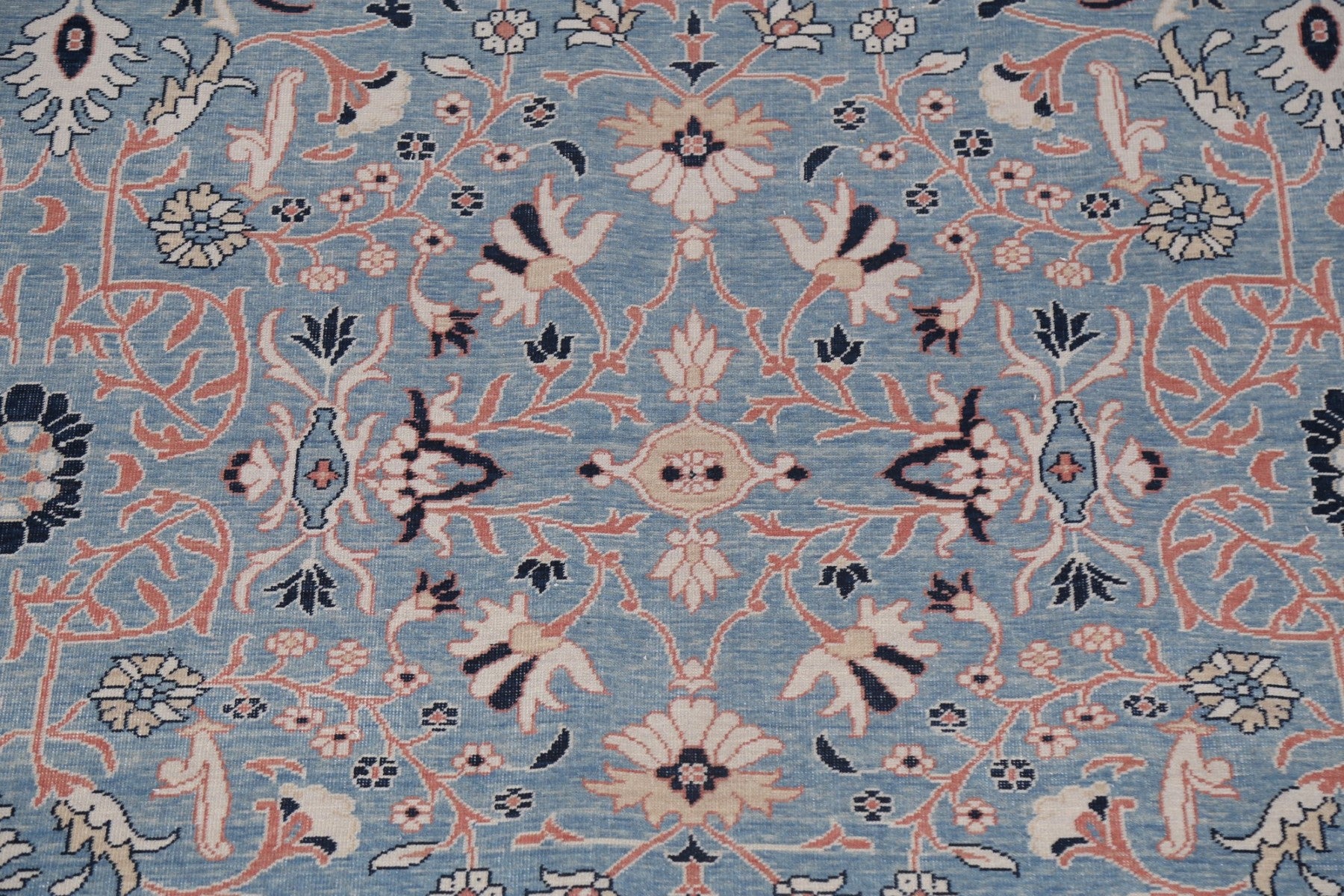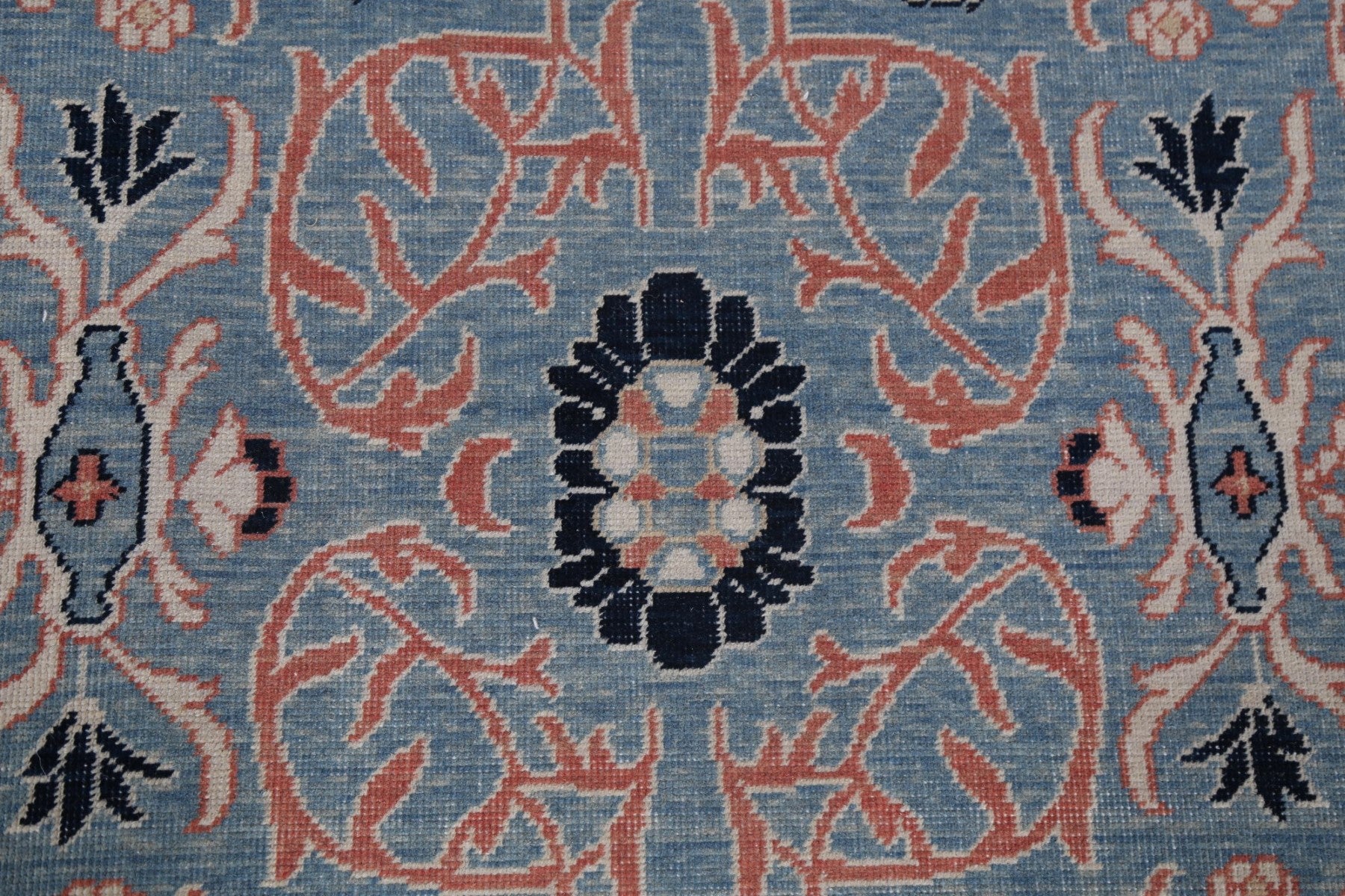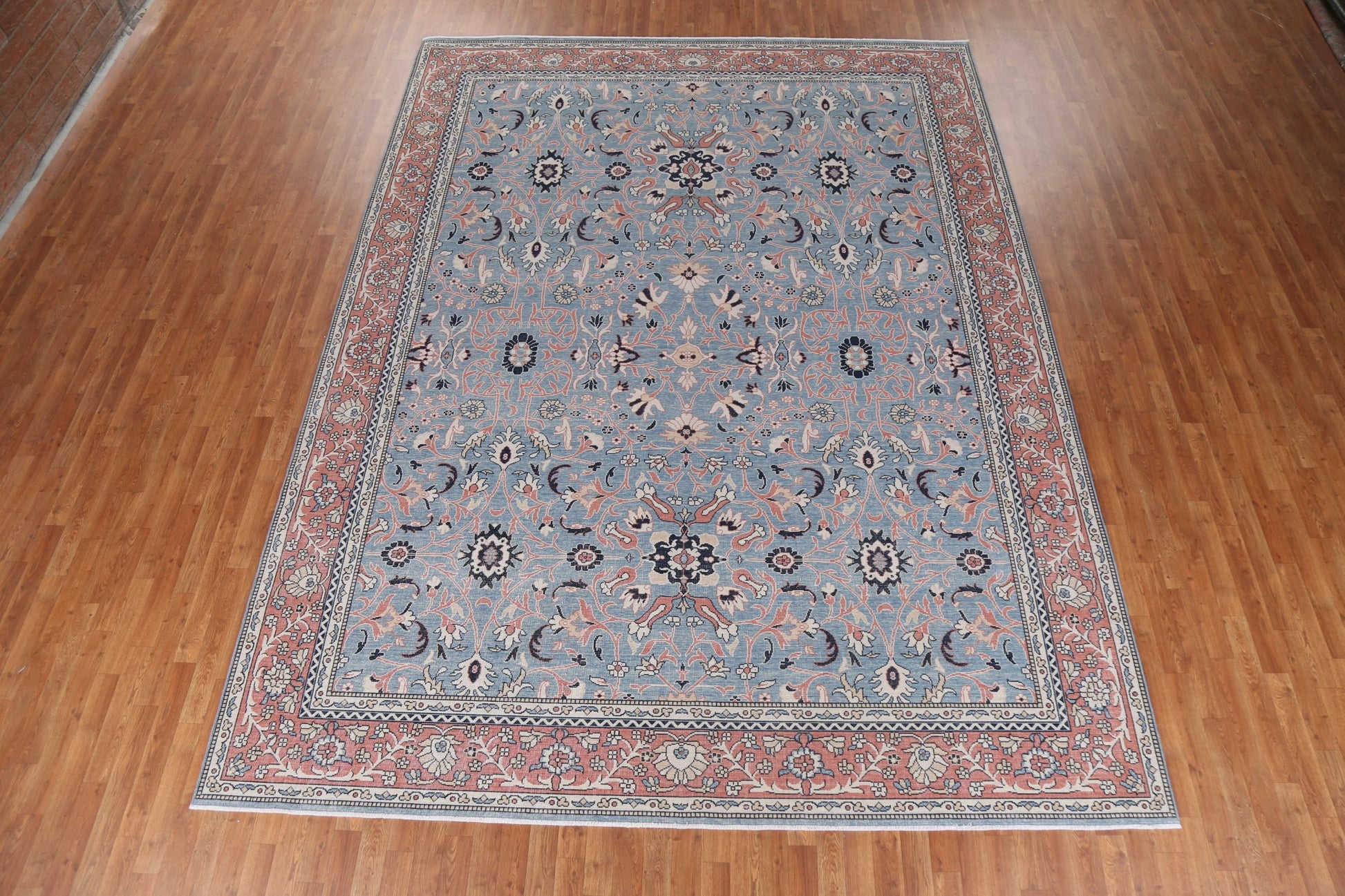 A Beautiful Genuine Turkey Sultanabad (Ziegler) rug is Hand Knotted by skillful weavers in Turkey with 100% Wool Material. This rug is in New, First Quality condition. dimensions are 12' 11'' X 9' 10'' in foot and 394 X 300 in centimeter. the primary color is Navy Blue & Blues.