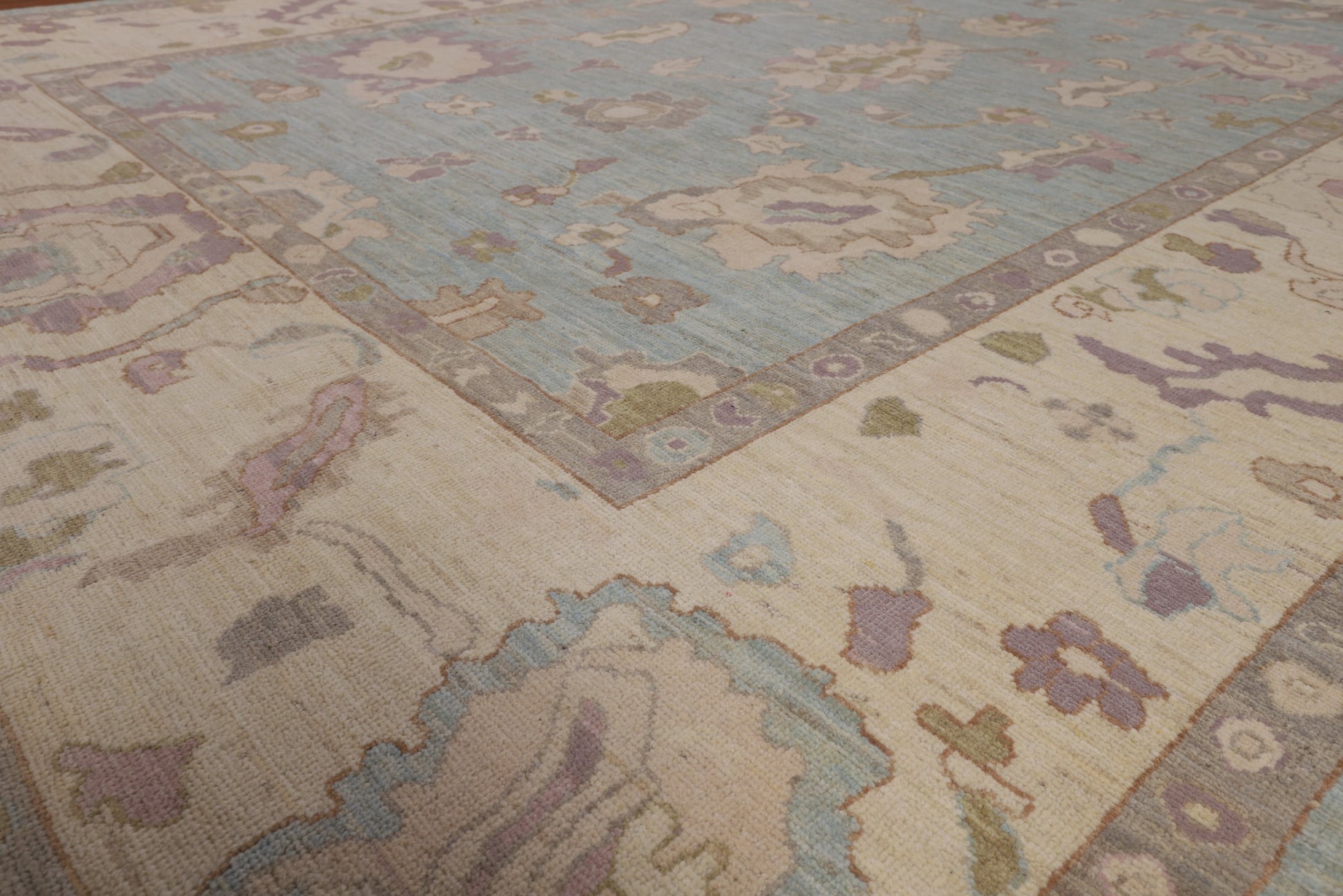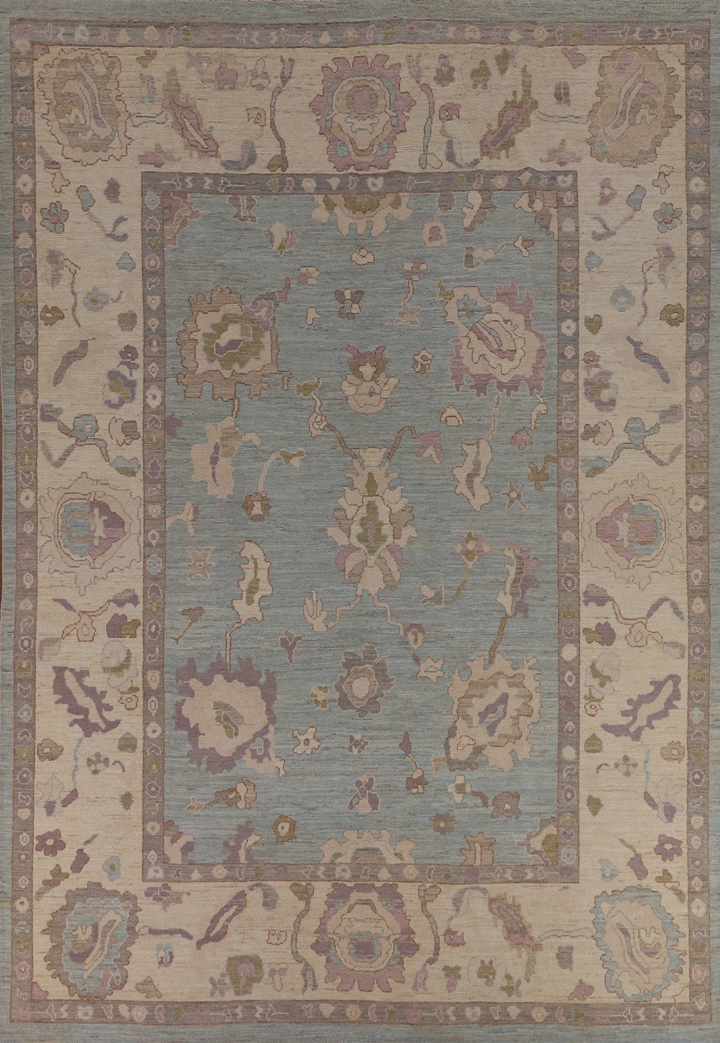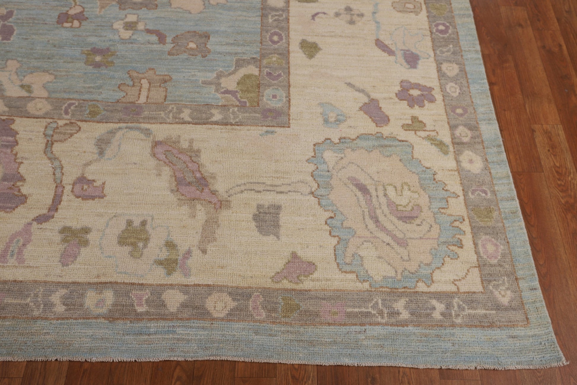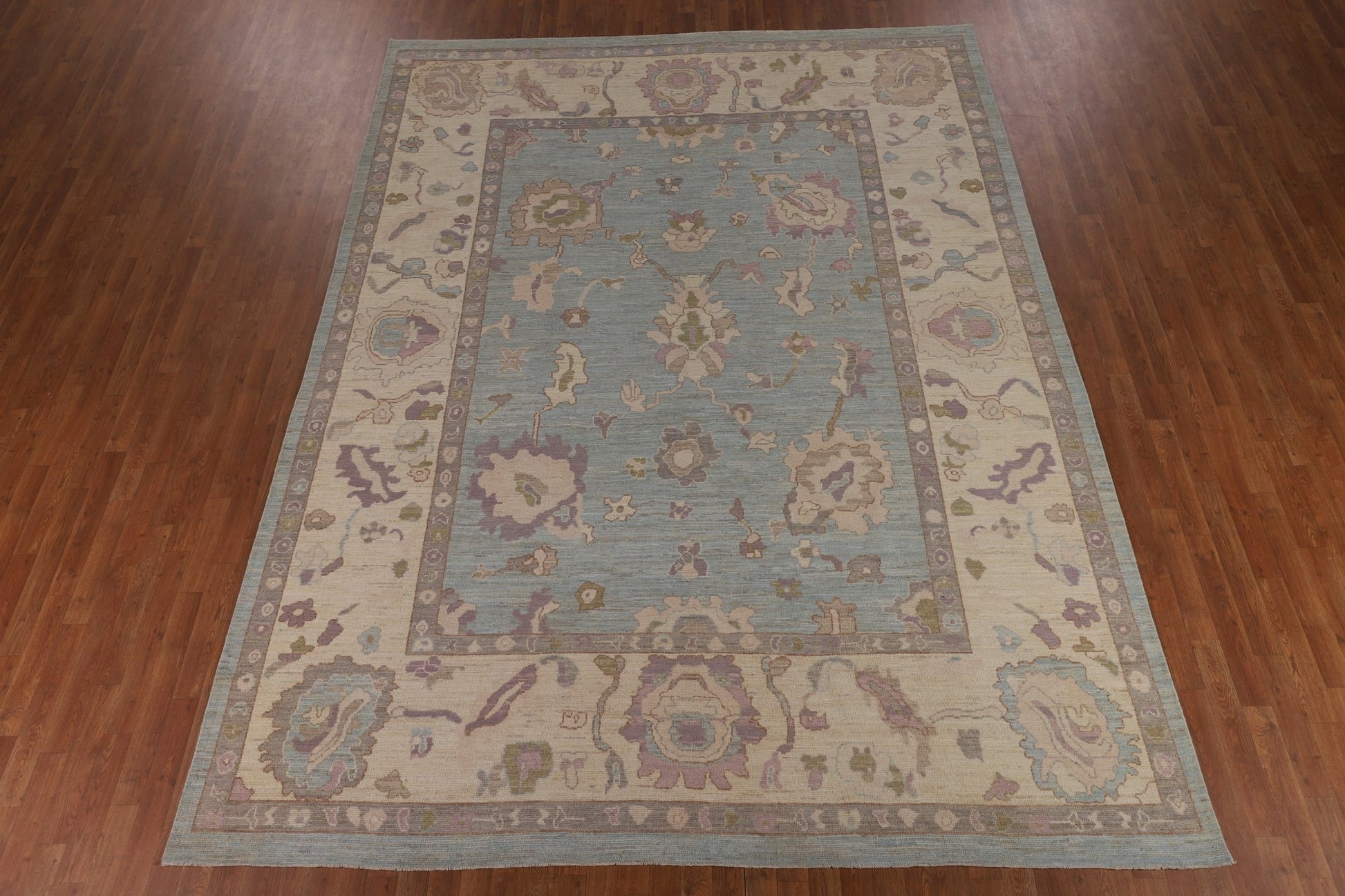 Light Blue Wool Oushak Vegetable Dye Area Rug 9x12