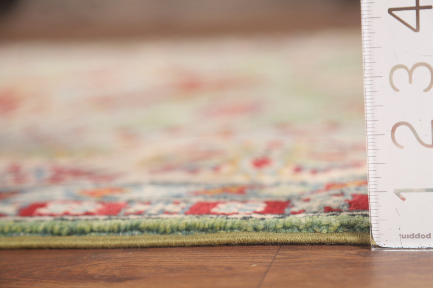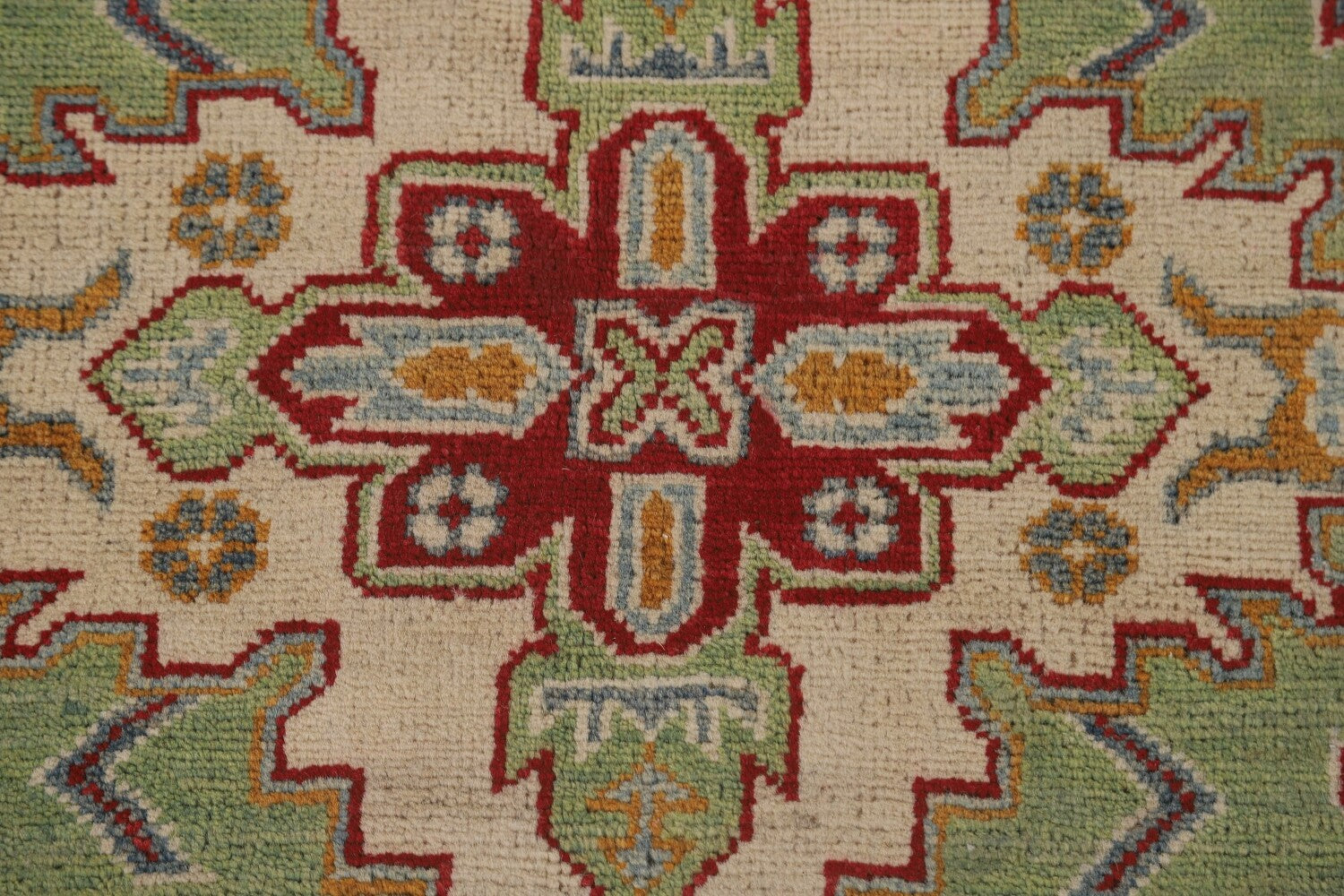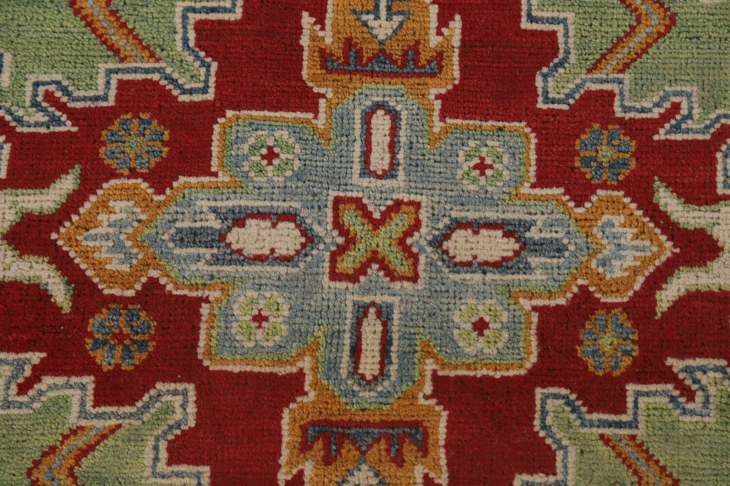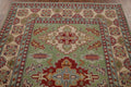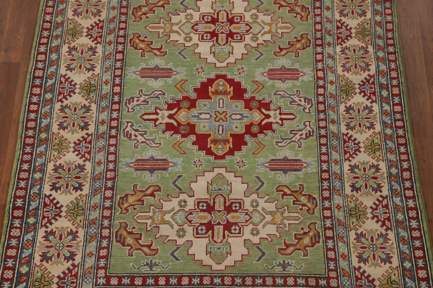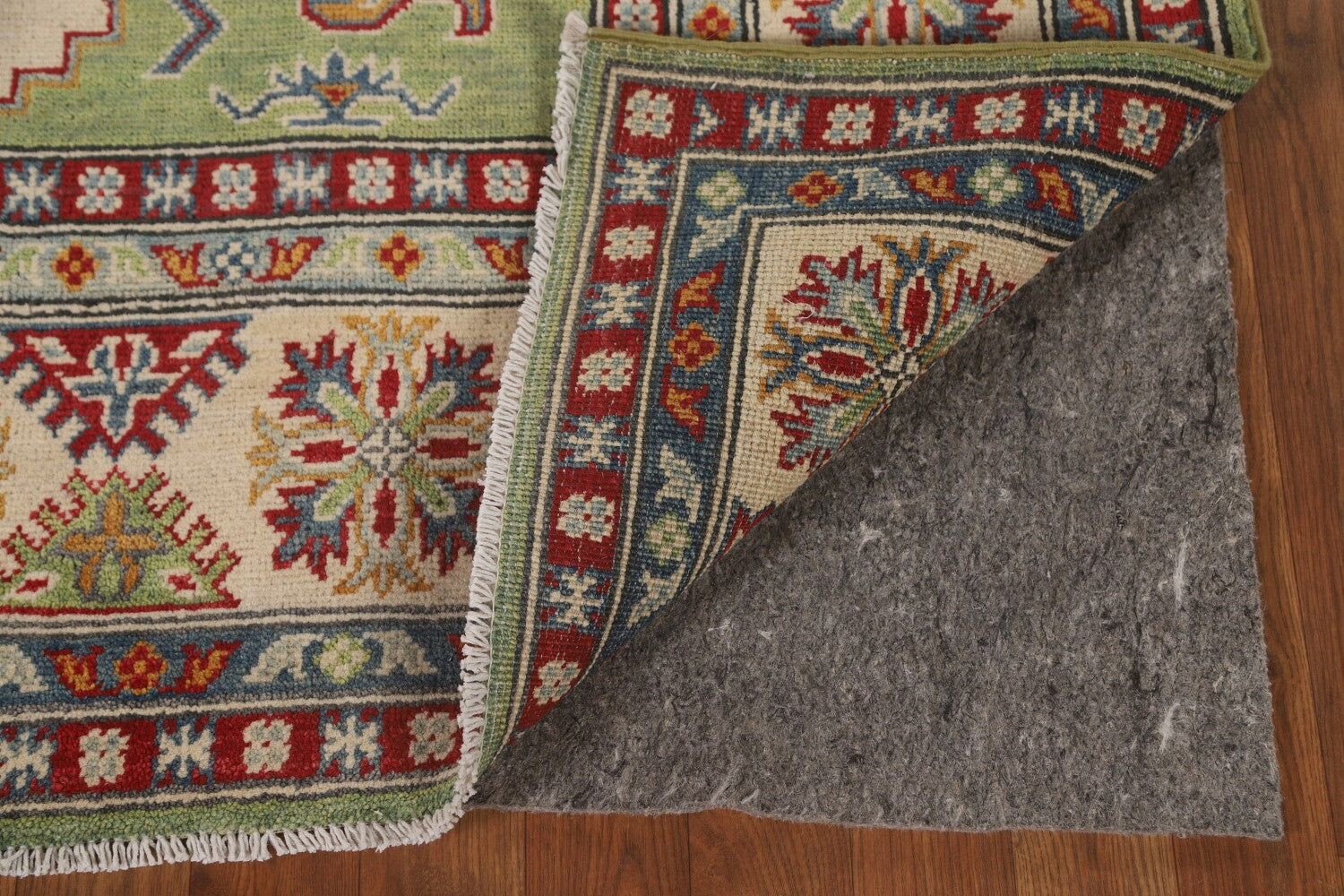 A Beautiful Genuine Pakistan Kazak rug is Hand Knotted by skillful weavers in Pakistan with 100% Wool Material. This rug is in New, First Quality condition. dimensions are 7' 0'' X 5' 0'' in foot and 213 X 152 in centimeter. the primary color is Green.