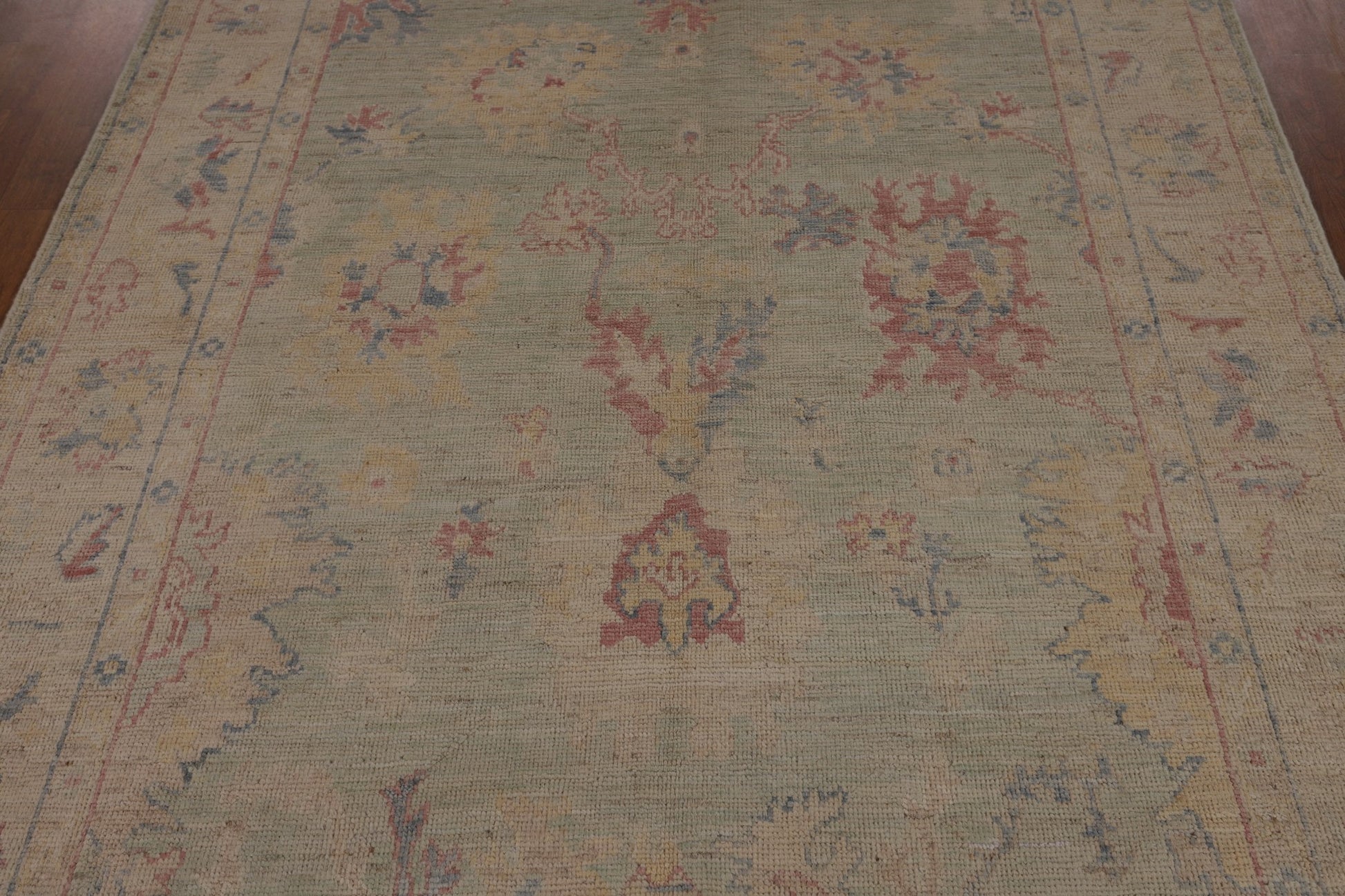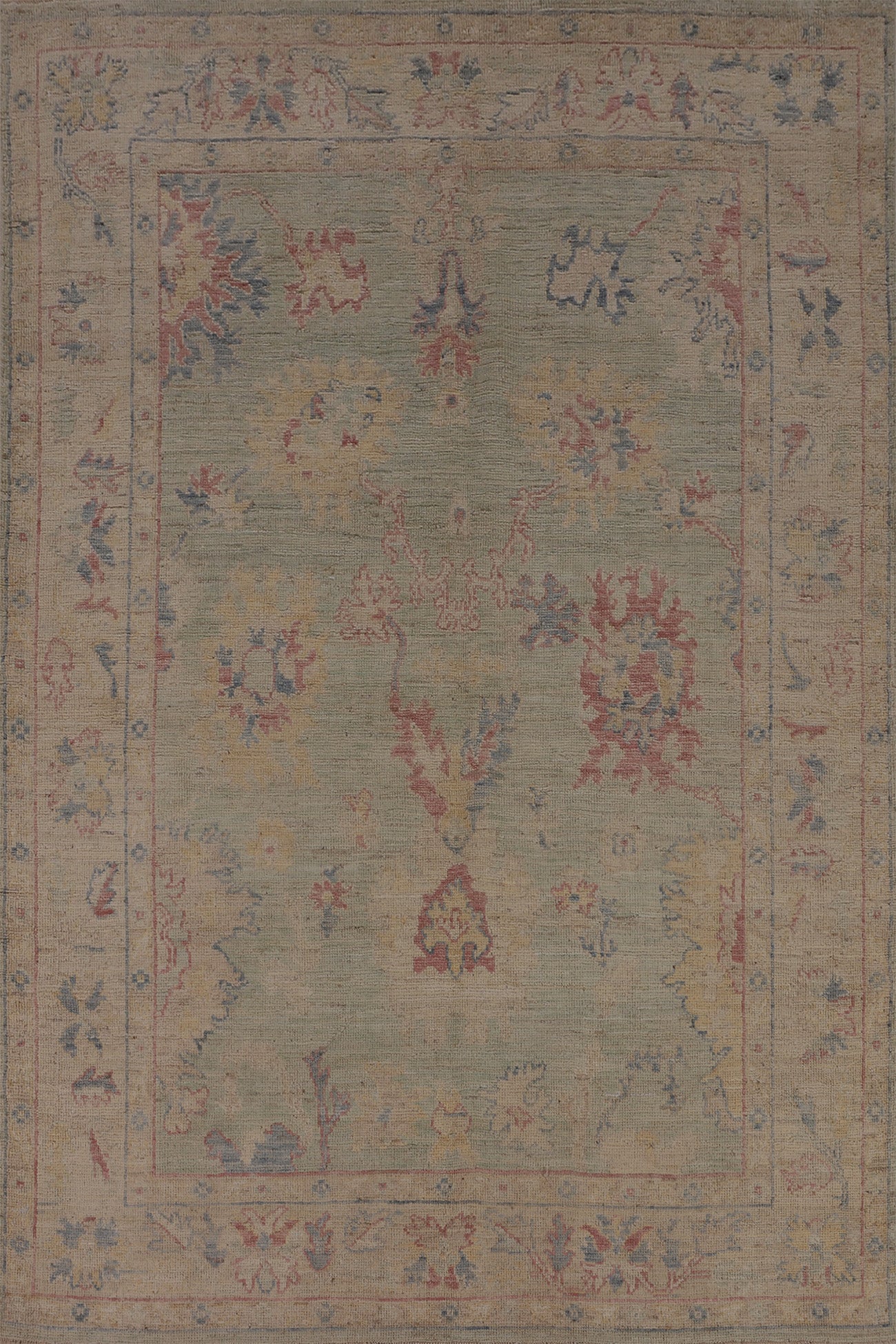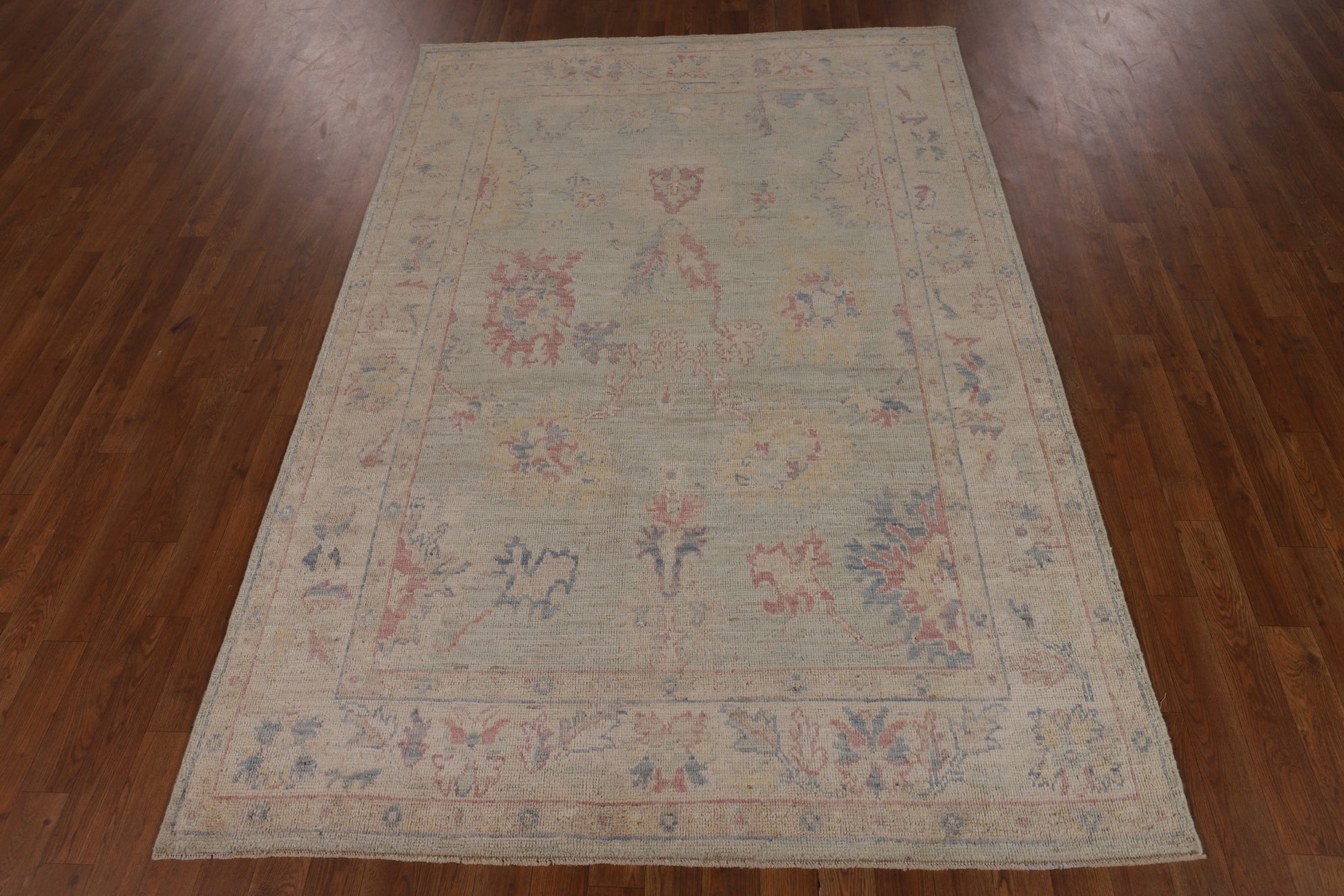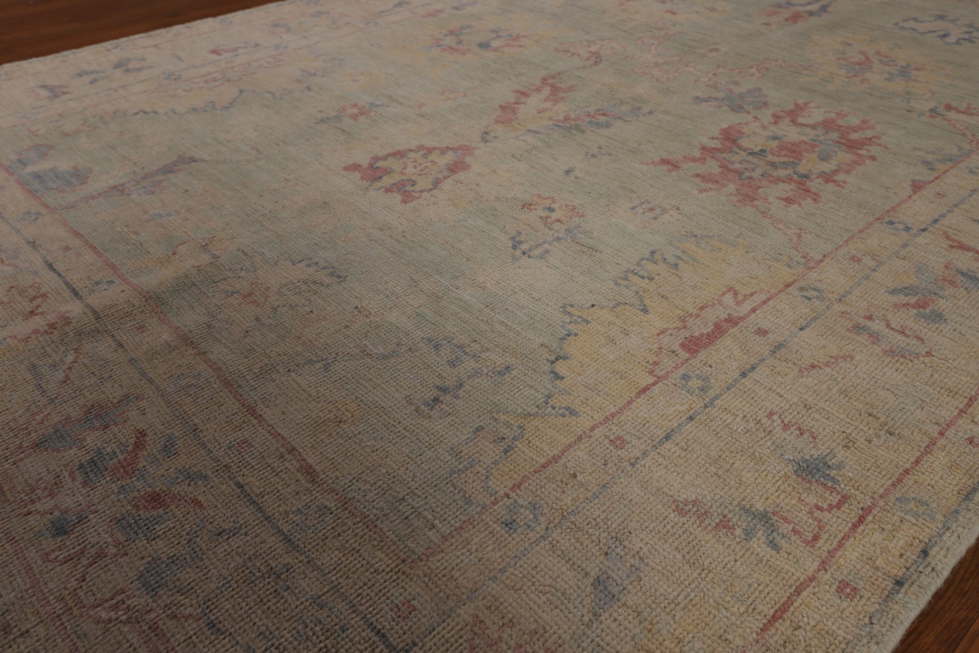 Light Green Oushak Vegetable Dye Turkish Rug 5x7