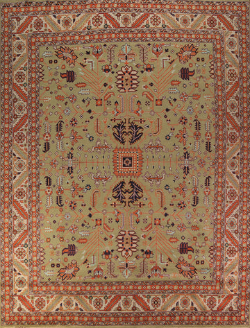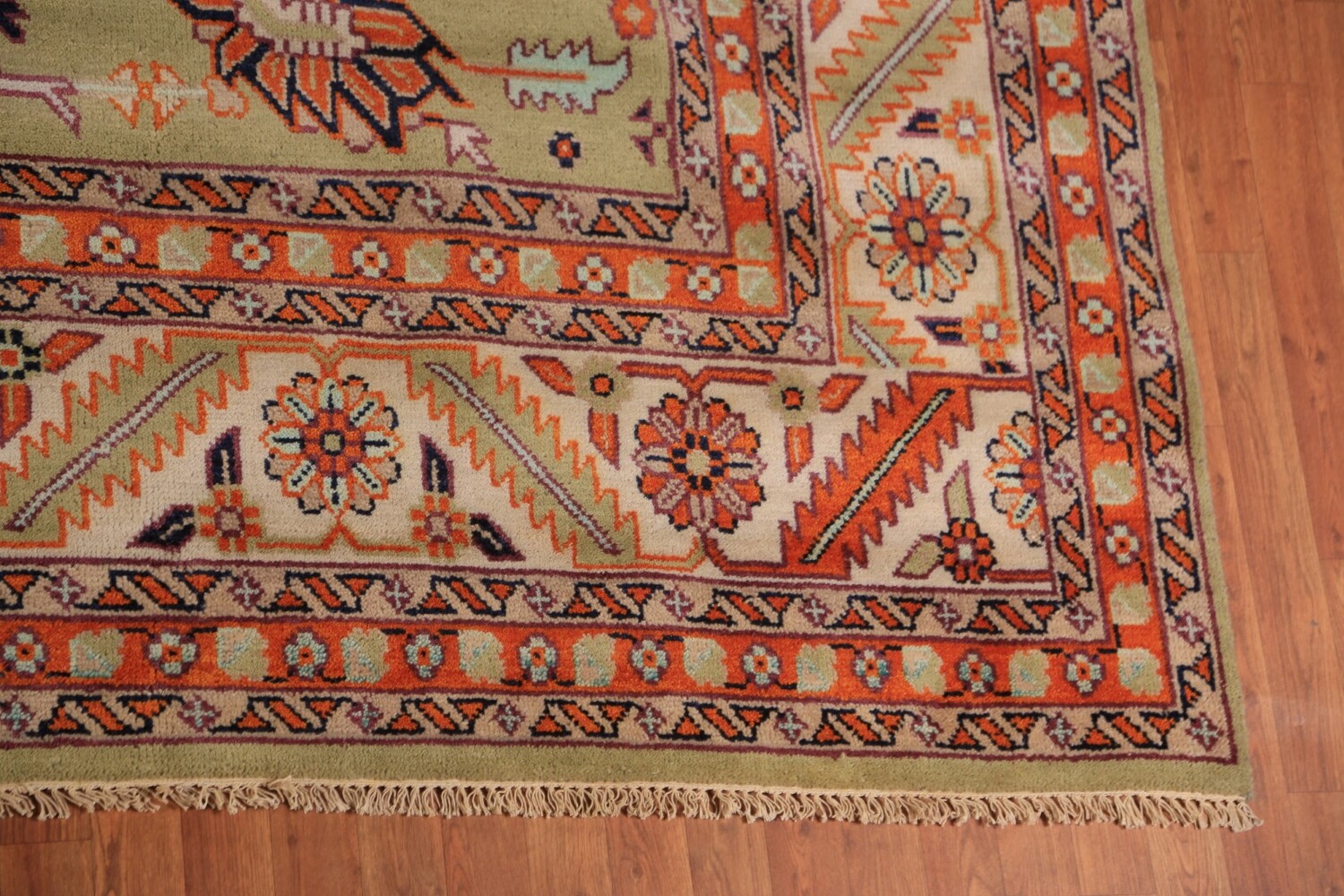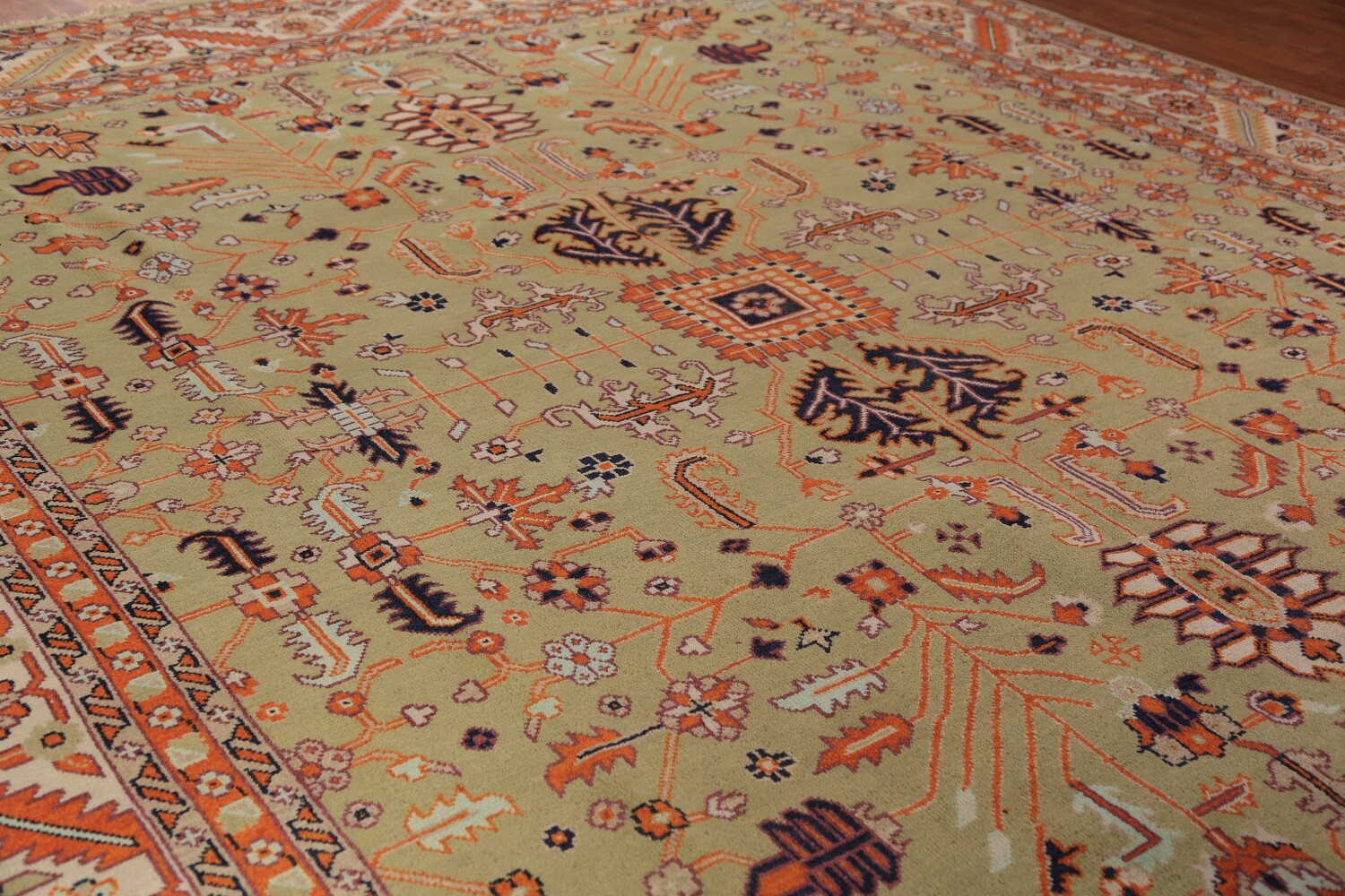 Light Green Wool Heriz Serapi Indian Large Rug 12x15