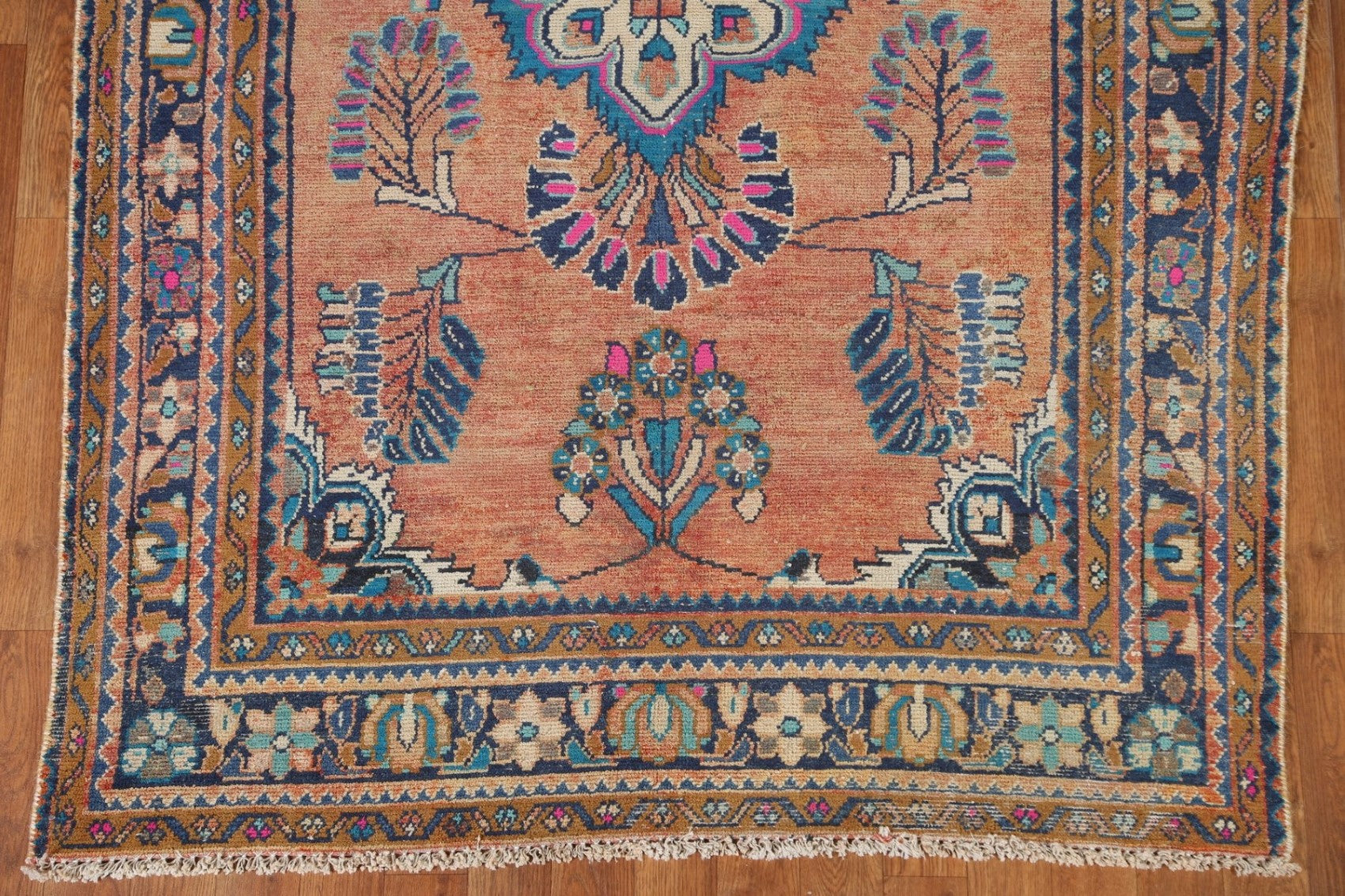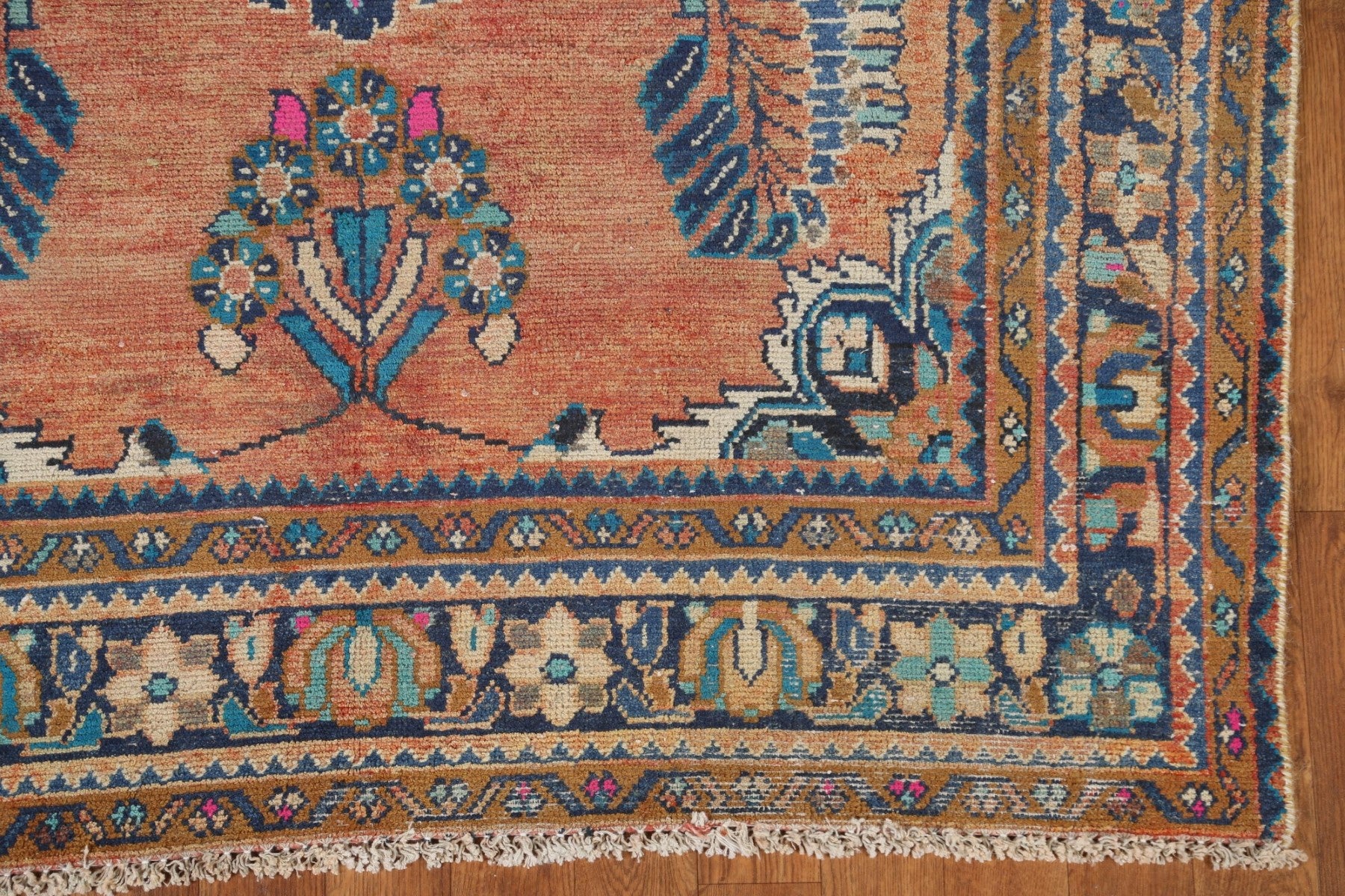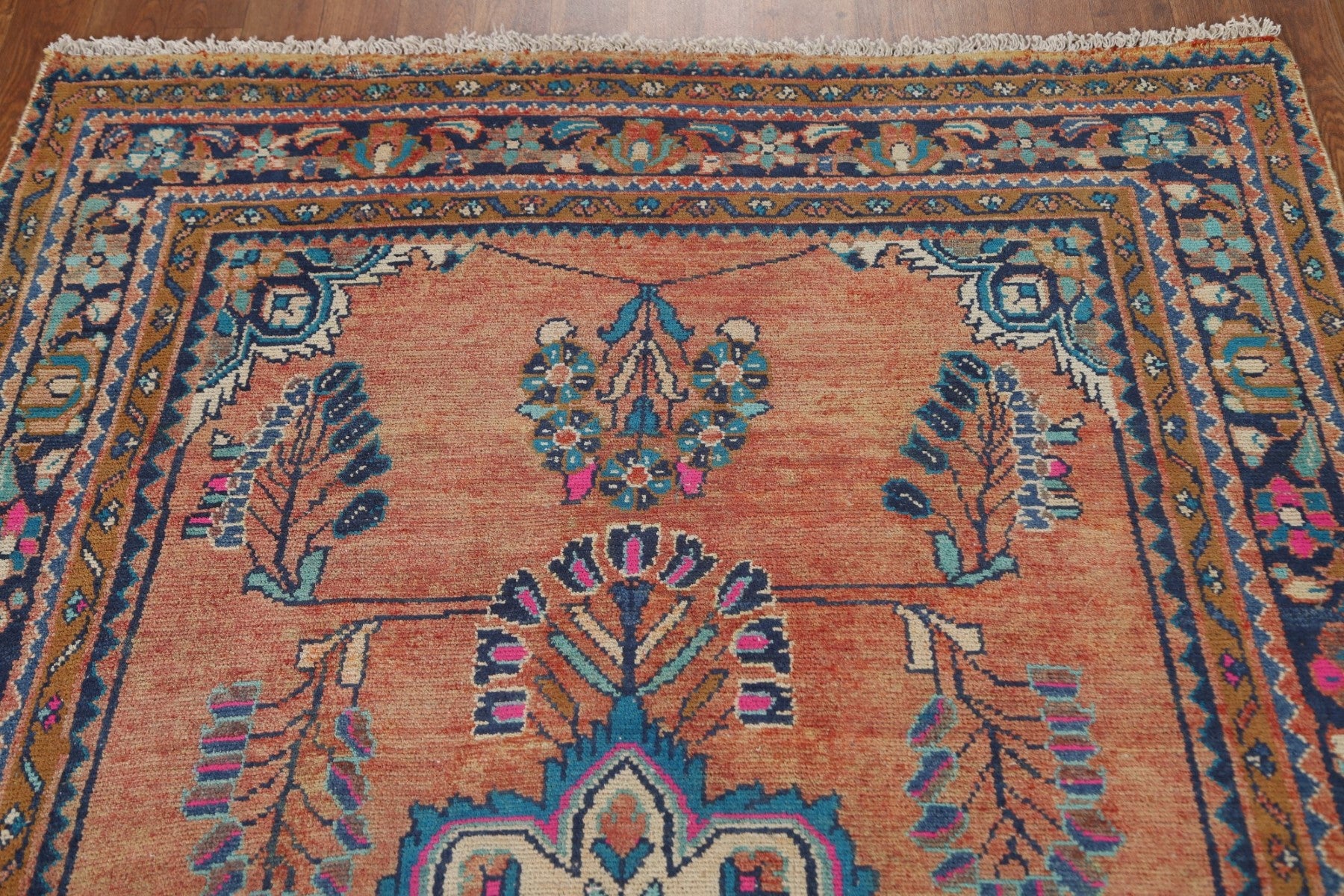 A Beautiful Genuine Persia ( Persia ) Lilian rug is Hand Knotted by skillful weavers in Persia ( Persia ) with 100% Wool Material. This rug is in Very Good (Evenly Low Pile) condition. dimensions are 6' 5'' X 4' 4'' in foot and 196 X 132 in centimeter. the primary color is Coral.