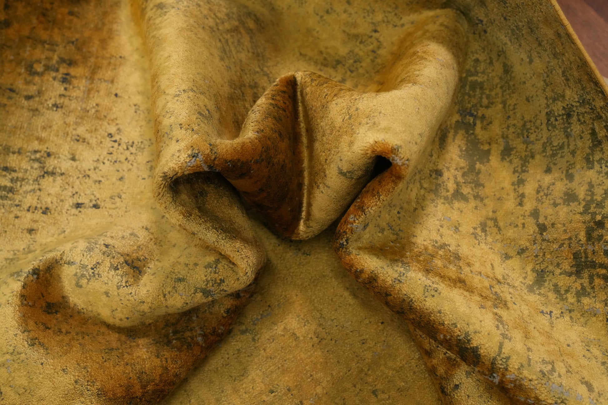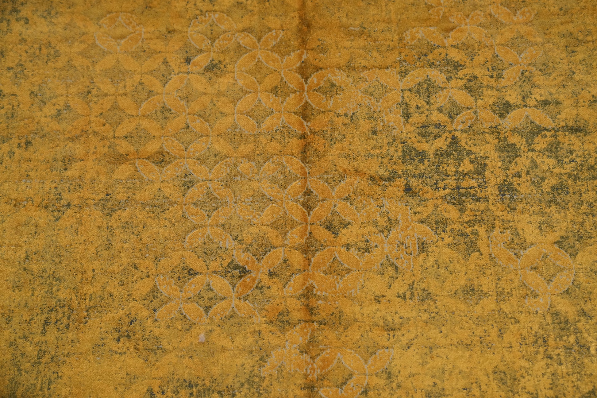 A Beautiful Genuine Turkey Distressed rug is Machine Made by skillful weavers in Turkey with Polyester Material. This rug is in New, First Quality condition. dimensions are 7' 5'' X 5' 2'' in foot and 226 X 157 in centimeter. the primary color is Yellow & Gold.
