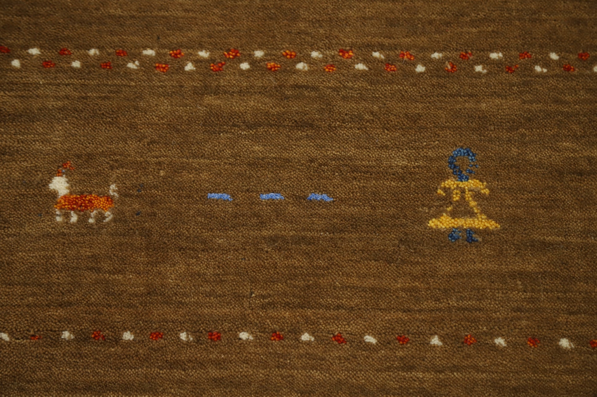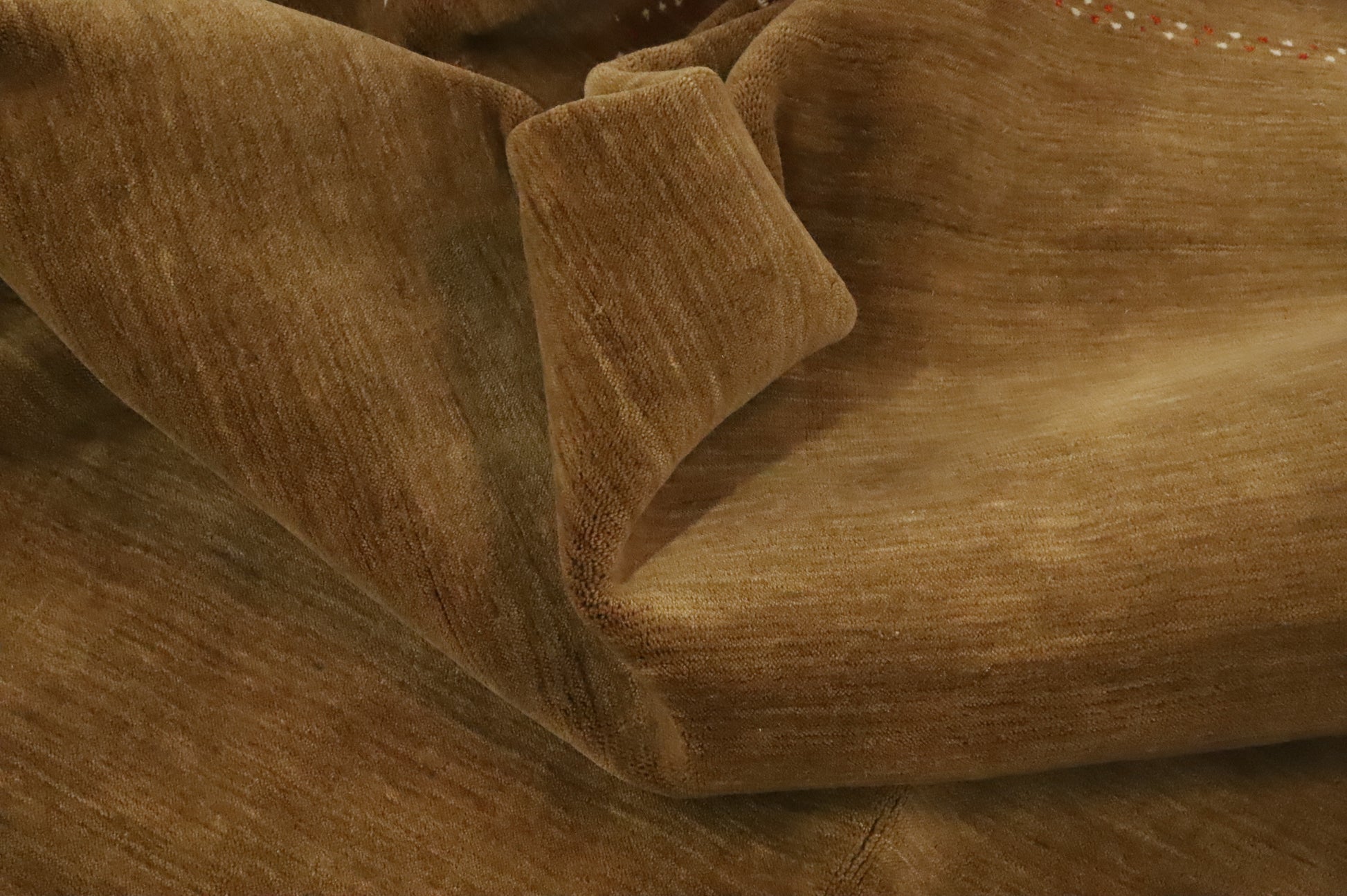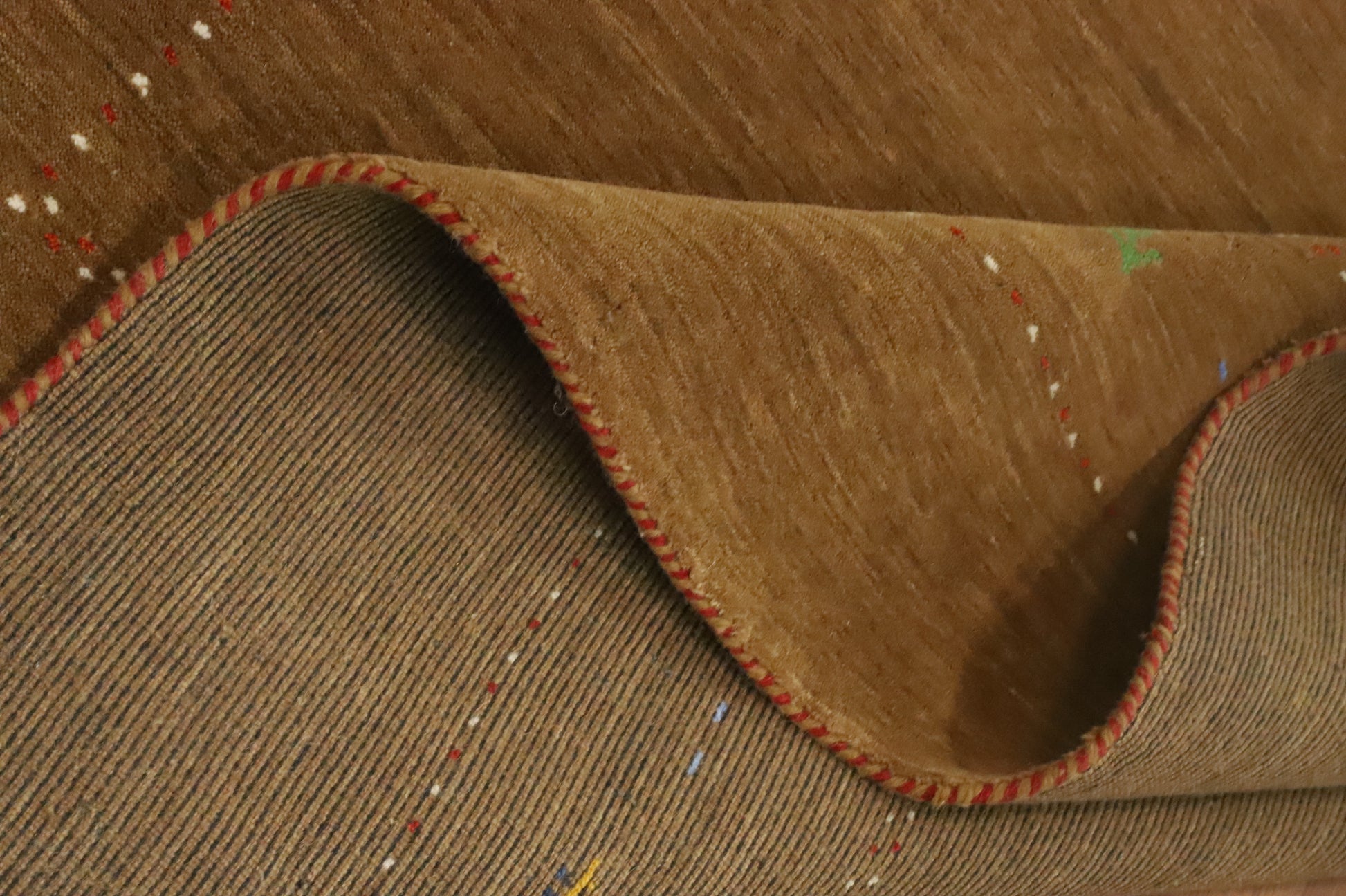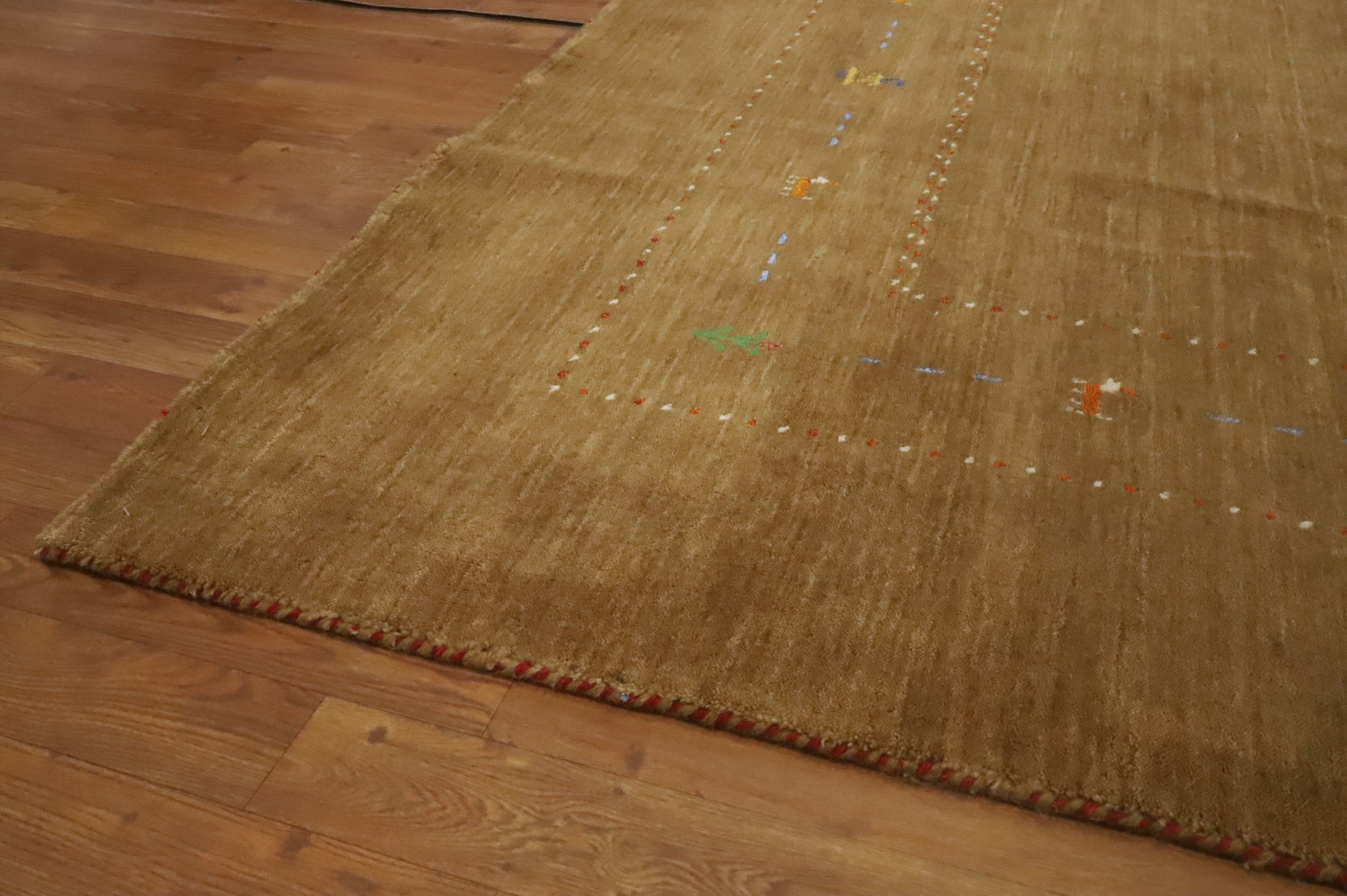 A Beautiful Genuine India Gabbeh rug is Hand Knotted by skillful weavers in India with 100% Wool Material. This rug is in New, First Quality condition. dimensions are 9' 10'' X 10' 0'' in foot and 300 X 305 in centimeter. the primary color is Yellow & Gold.