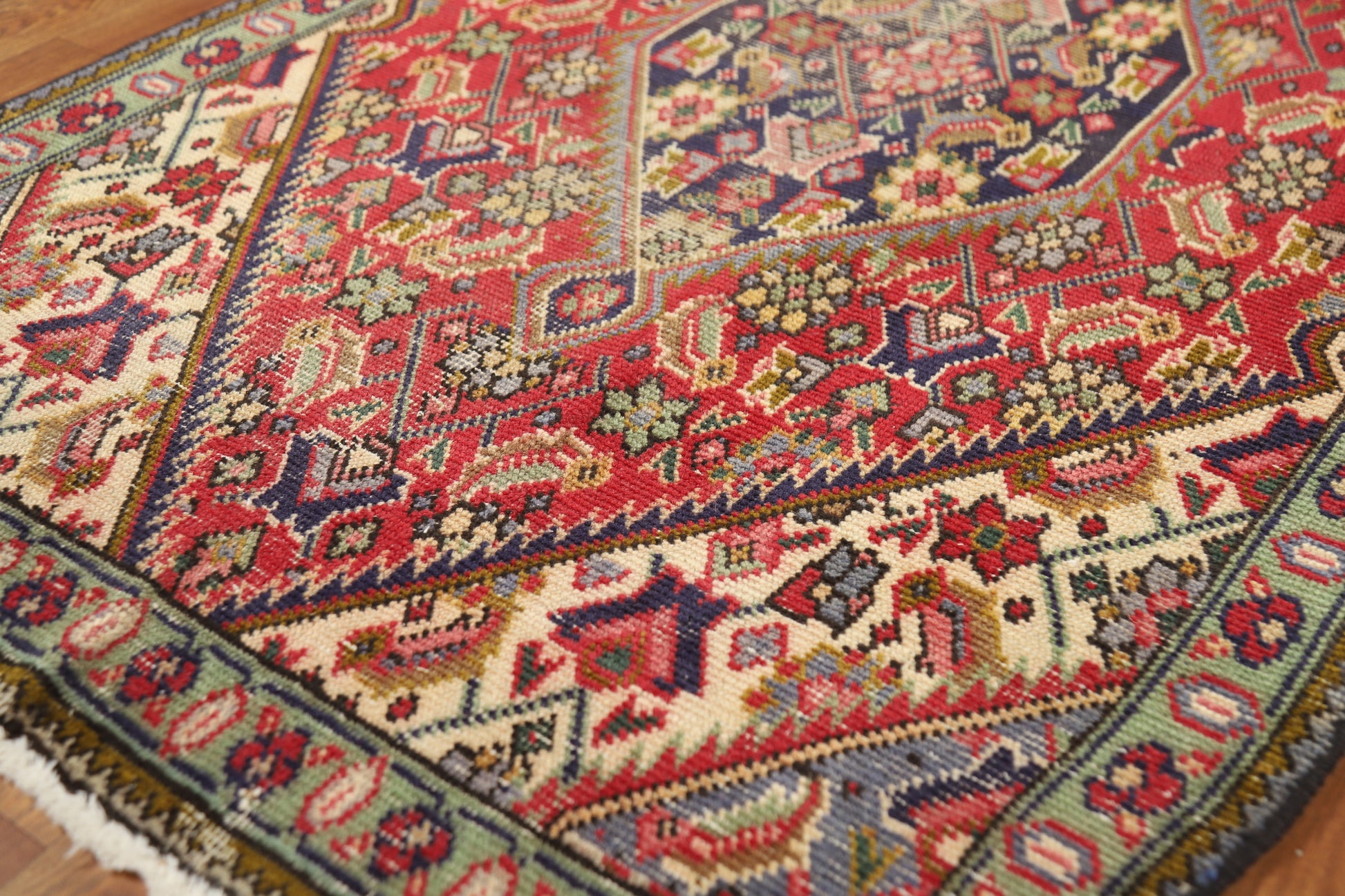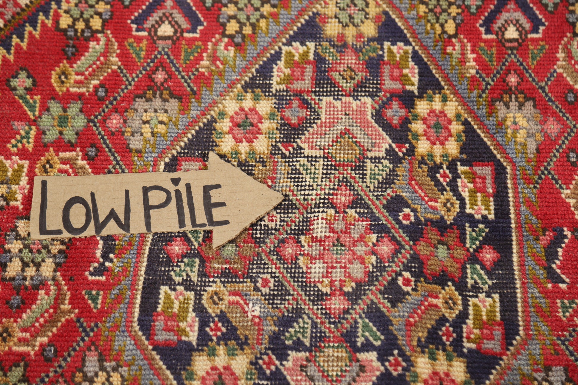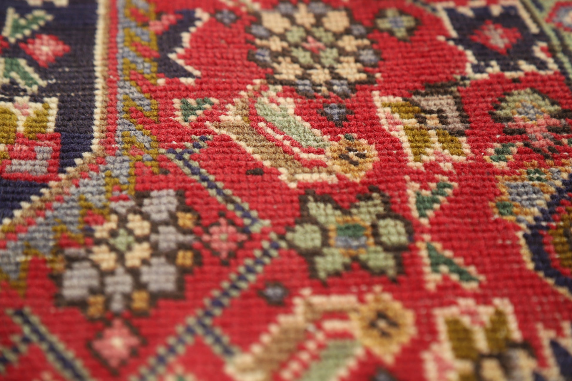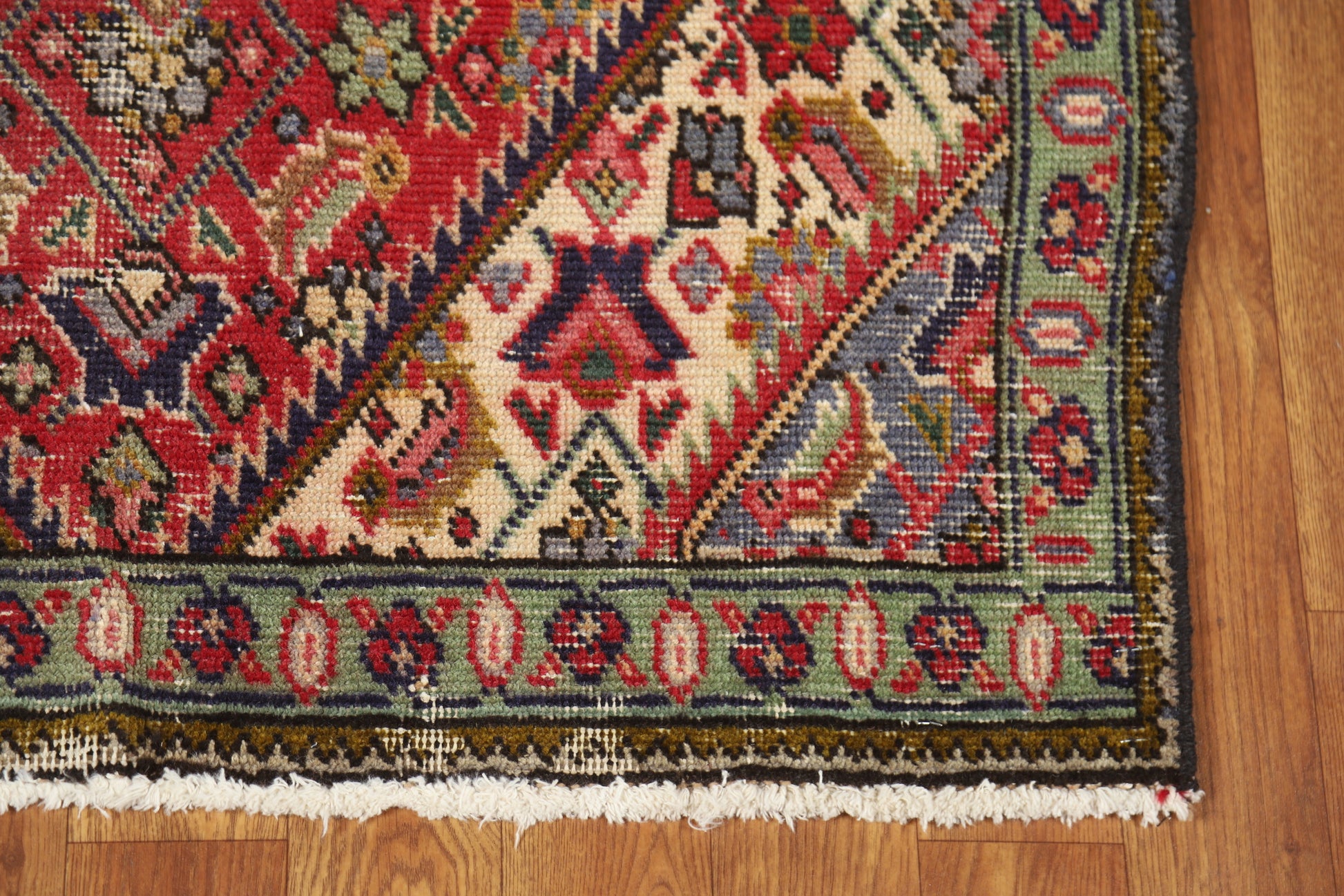 A Beautiful Genuine Persia ( Persia ) Tabriz rug is Hand Knotted by skillful weavers in Persia ( Persia ) with 100% Wool Material. This rug is in Very Good ( Low Pile ) condition. dimensions are 4' 10'' X 2' 11'' in foot and 147 X 89 in centimeter. the primary color is Red.