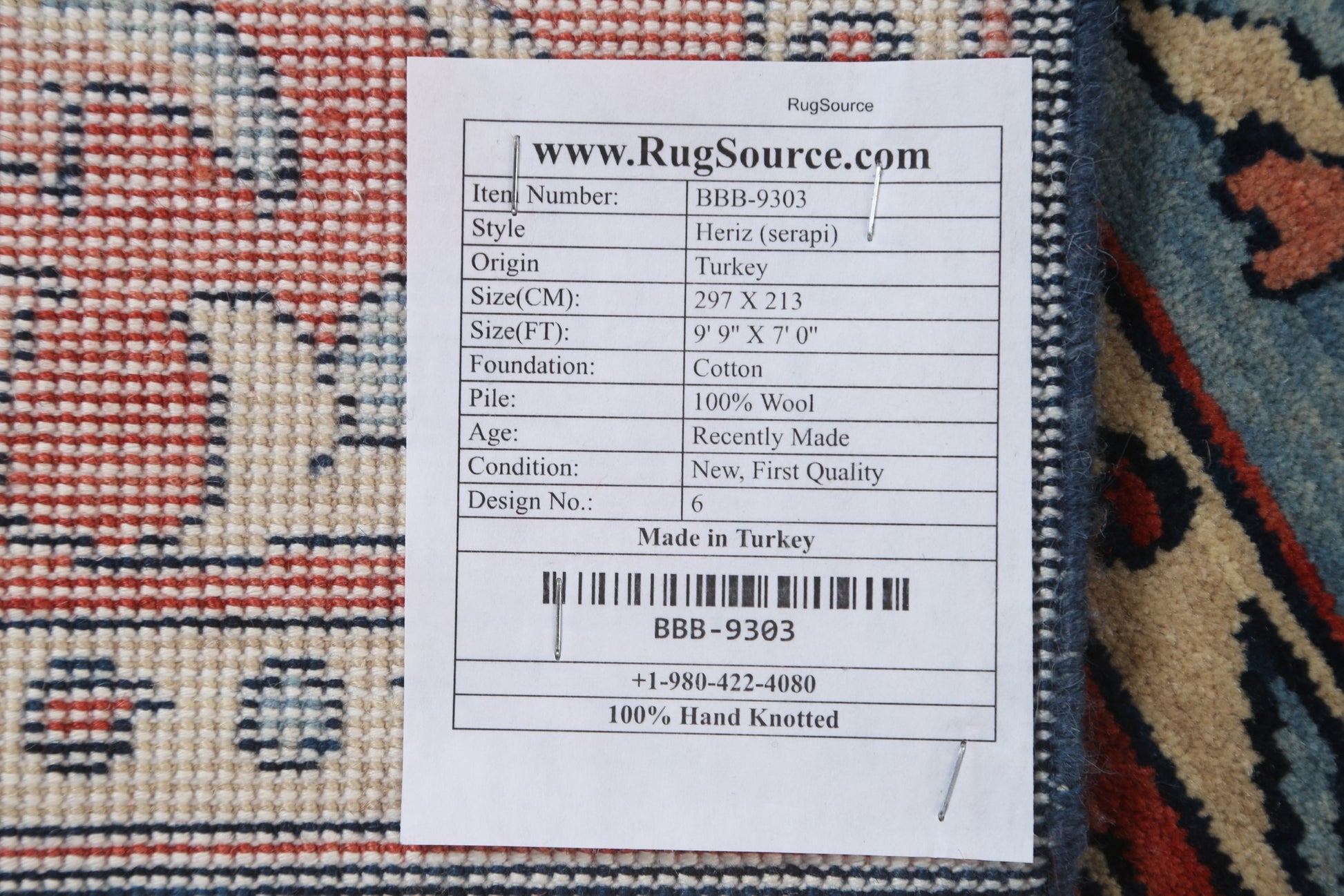 A Beautiful Genuine Turkey Heriz (serapi) rug is Hand Knotted by skillful weavers in Turkey with 100% Wool Material. This rug is in New, First Quality condition. dimensions are 9' 9'' X 7' 0'' in foot and 297 X 213 in centimeter. the primary color is Beige & Ivories.