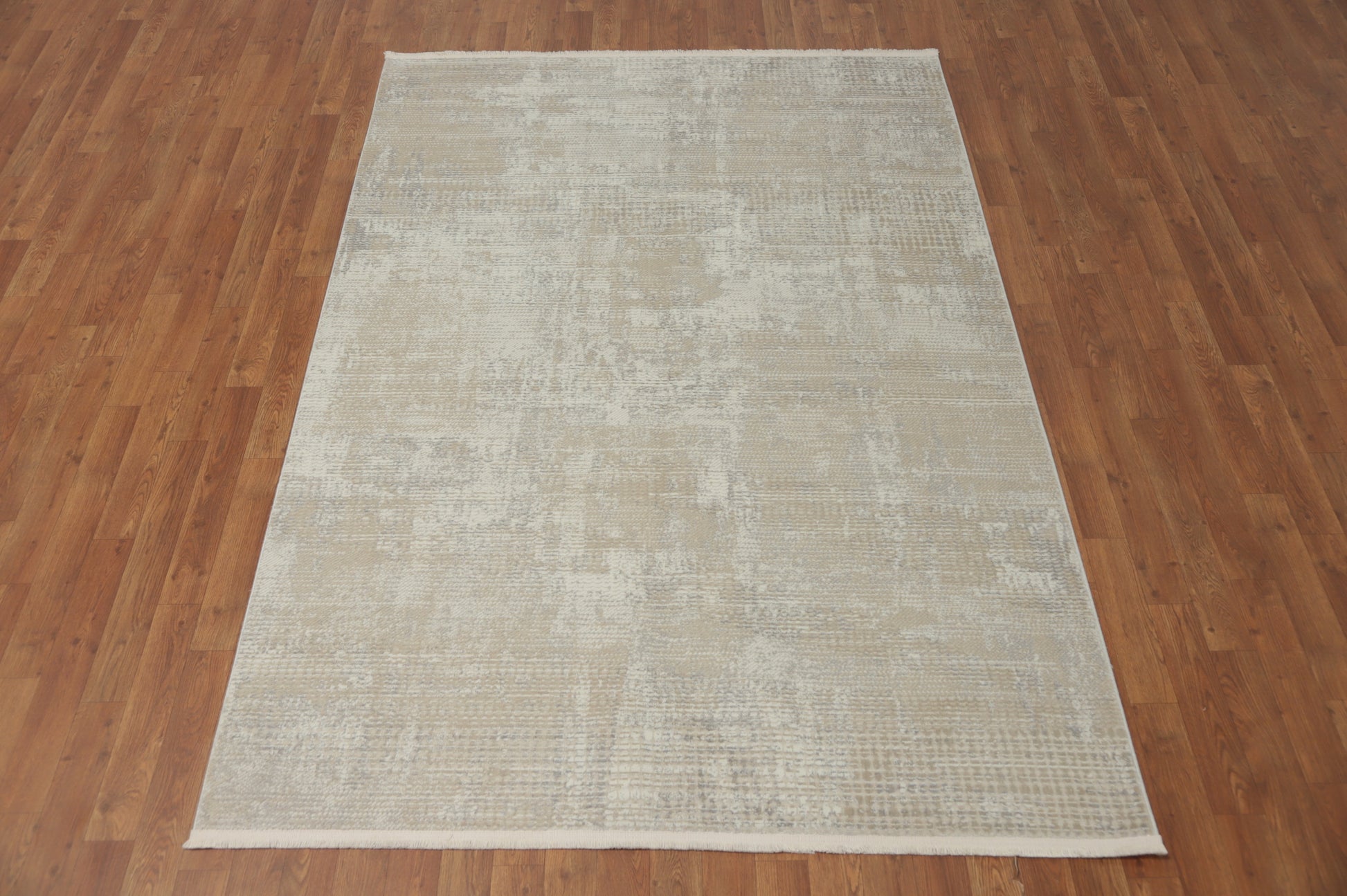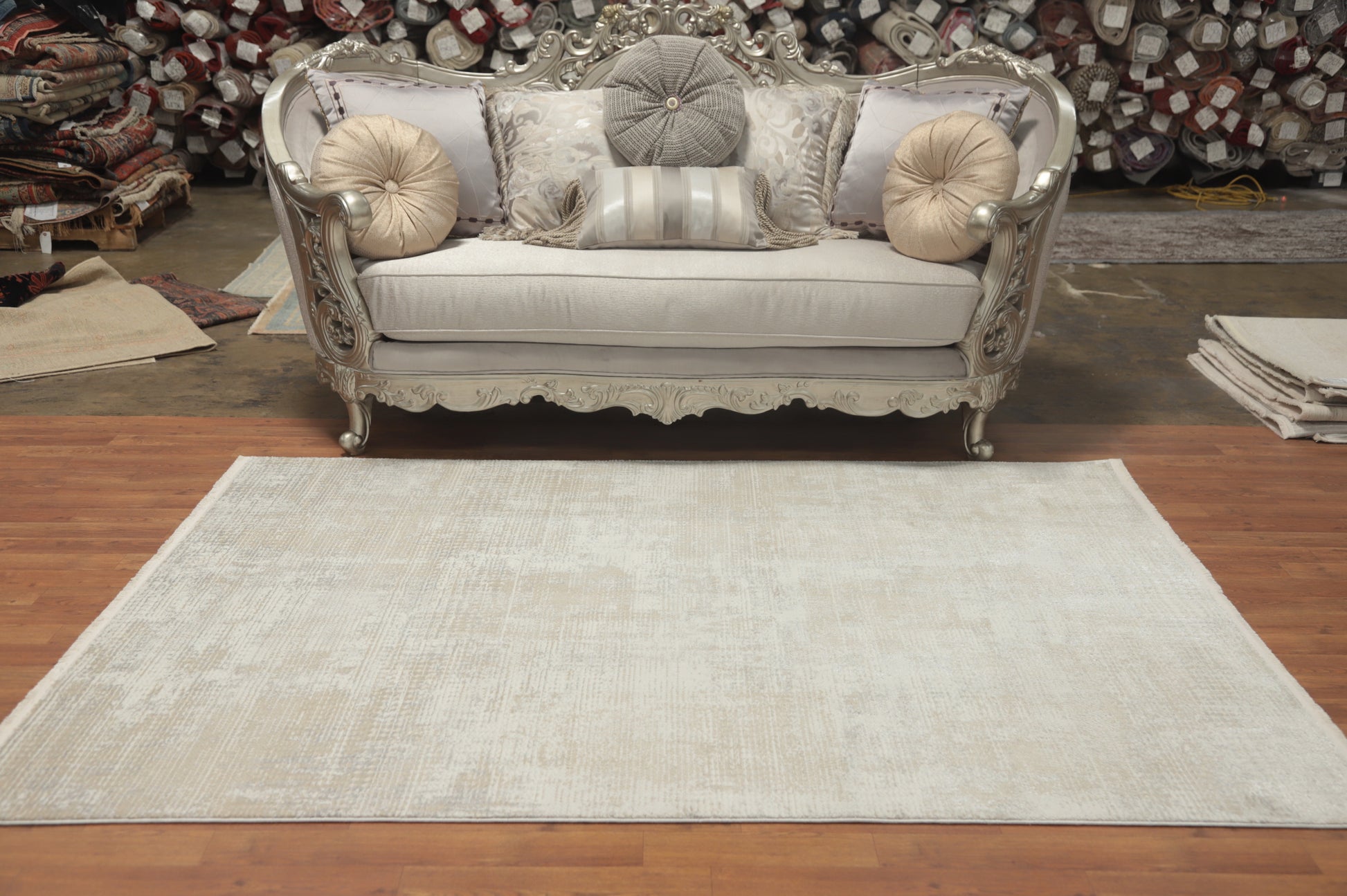 A Beautiful Genuine Turkey Modern rug is Machine Made by skillful weavers in Turkey with Polyester Material. This rug is in New, First Quality condition. dimensions are 7' 5'' X 5' 2'' in foot and 226 X 157 in centimeter. the primary color is Beige & Ivories.
