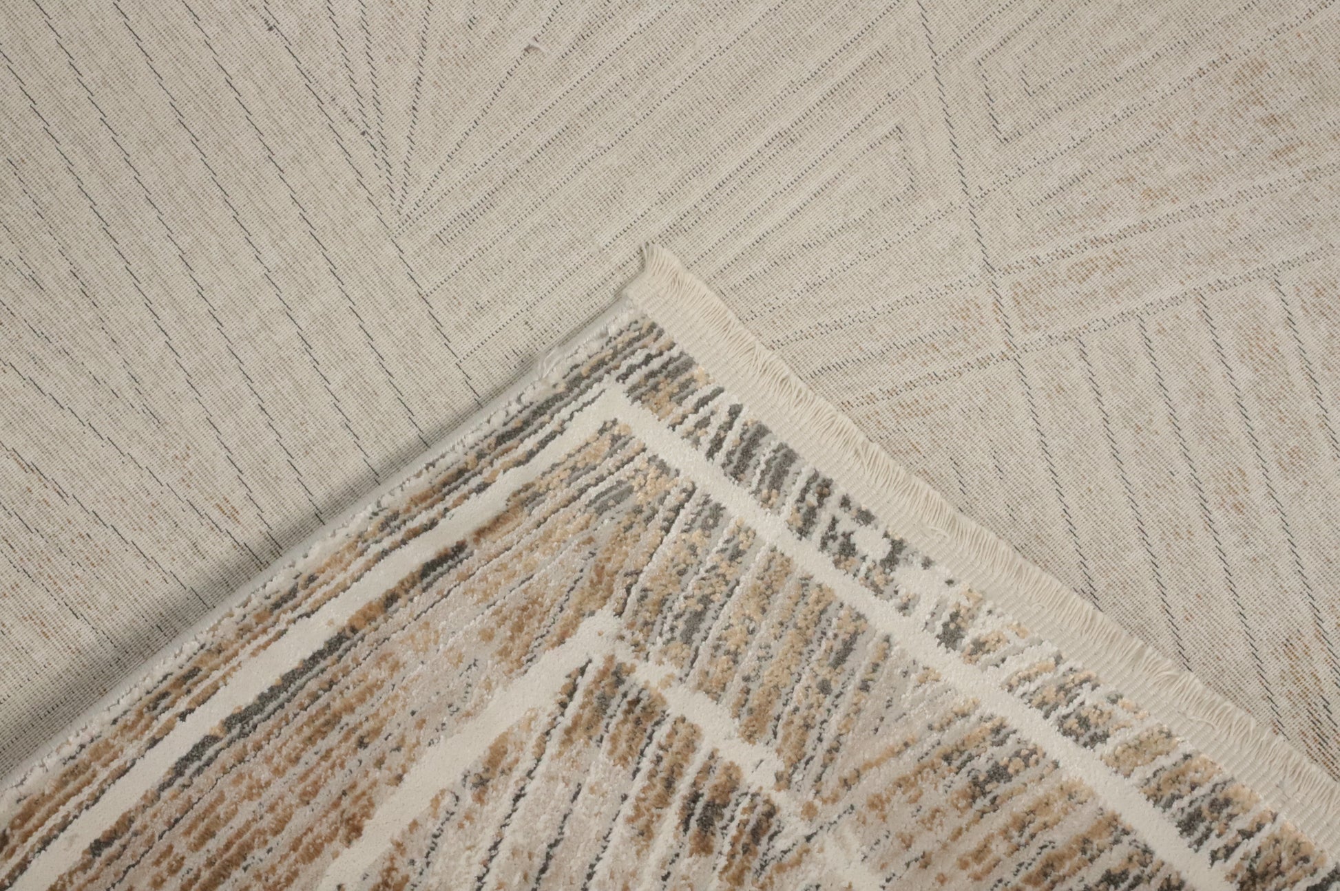 A Beautiful Genuine Turkey Modern rug is Machine Made by skillful weavers in Turkey with Polyester Material. This rug is in New, First Quality condition. dimensions are 7' 5'' X 5' 2'' in foot and 226 X 157 in centimeter. the primary color is Beige & Ivories.
