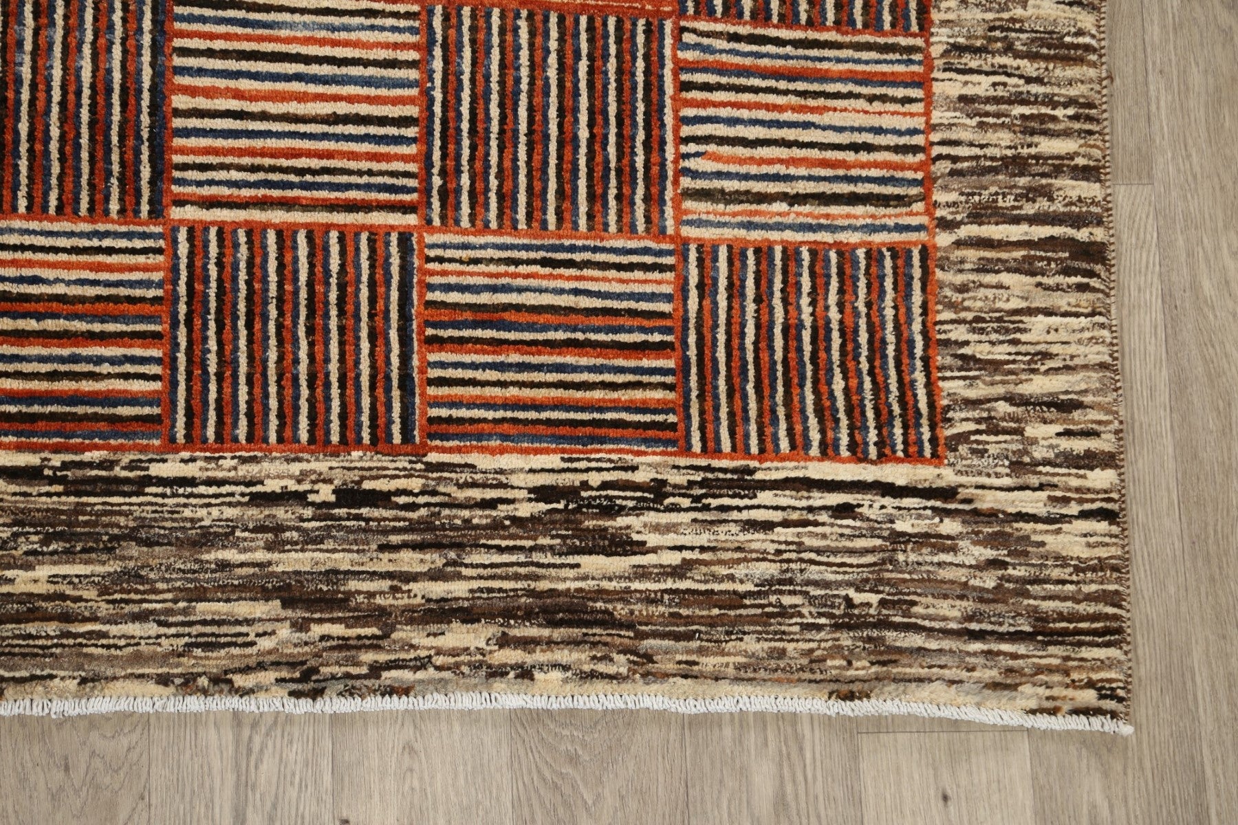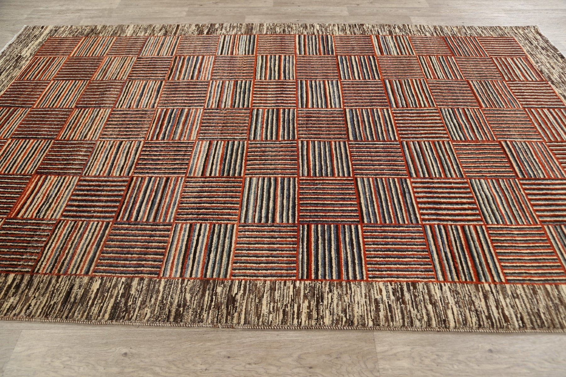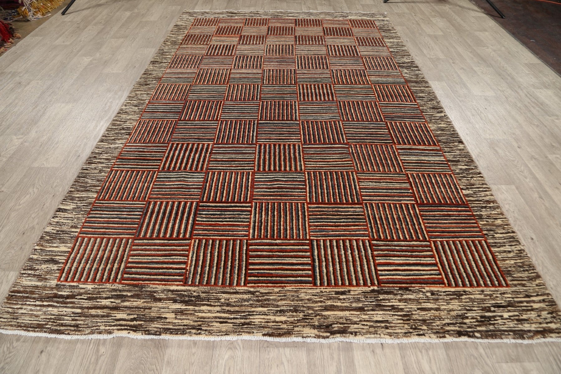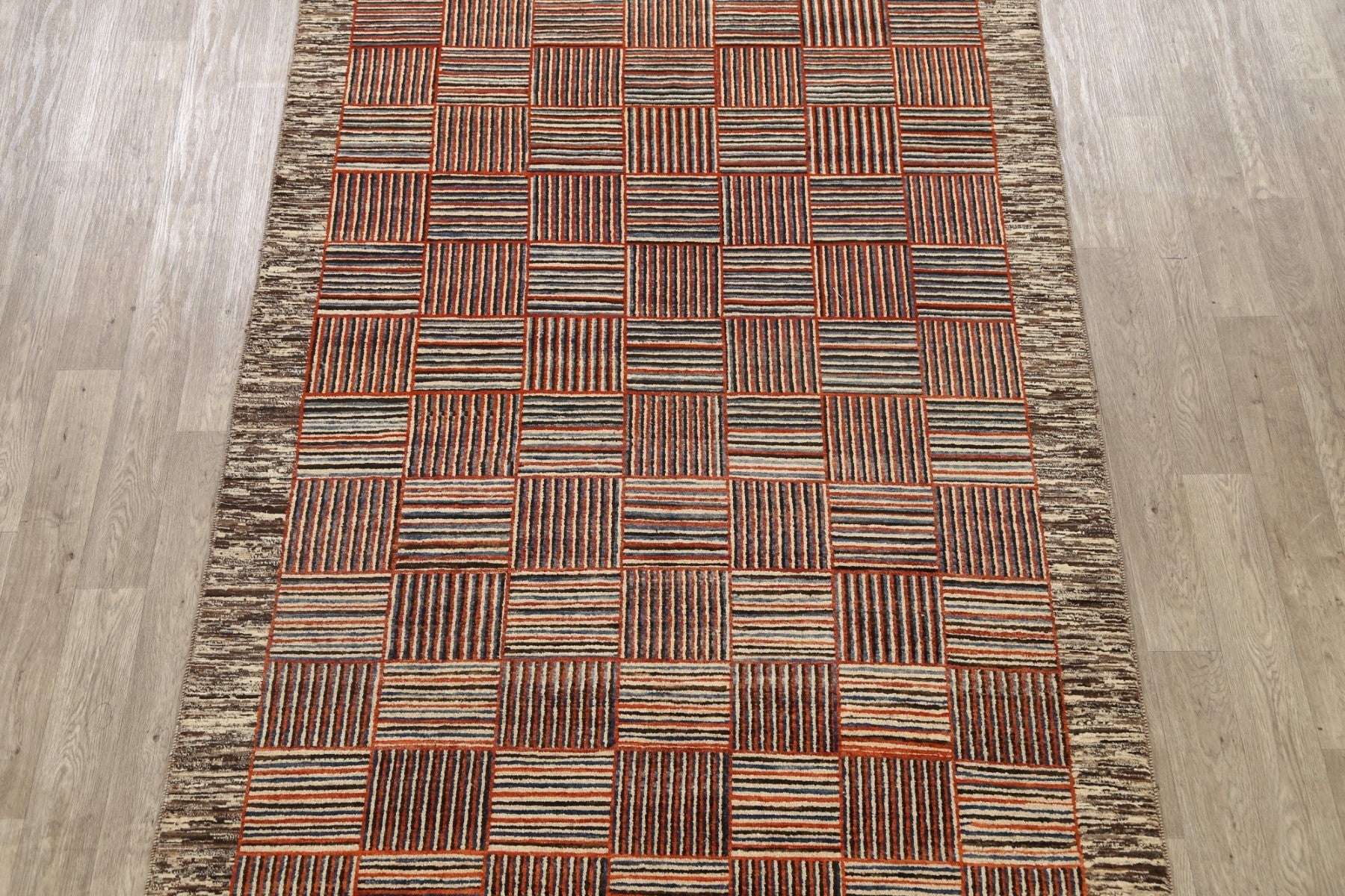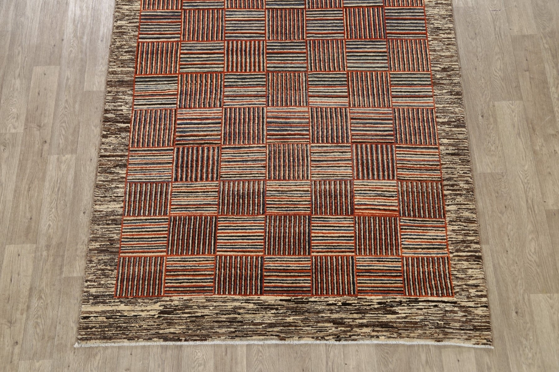 Modern Checkered Gabbeh Kashkoli Oriental Area Rug 6x10