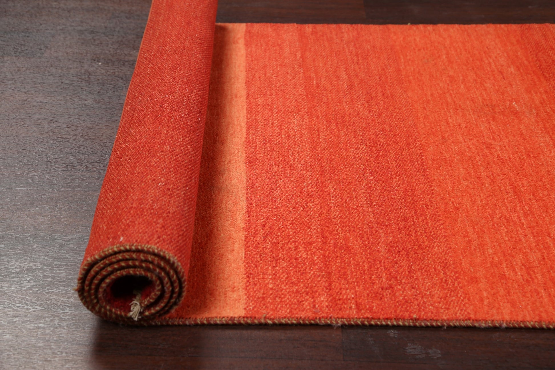 A Beautiful Genuine Pakistan Gabbeh (kashkoli) rug is Hand Knotted by skillful weavers in Pakistan with 100% Wool Material. This rug is in New, First Quality condition. dimensions are 15' 6'' X 3' 2'' in foot and 472 X 97 in centimeter. the primary color is Oranges & Rust.