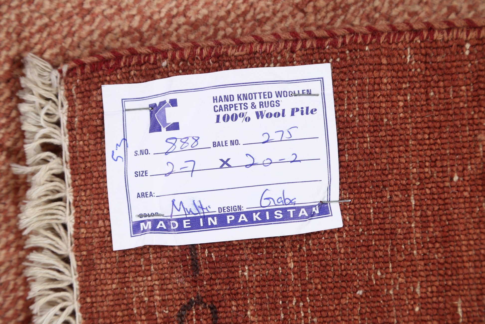 A Beautiful Genuine Pakistan Gabbeh (kashkoli) rug is Hand Knotted by skillful weavers in Pakistan with 100% Wool Material. This rug is in New, First Quality condition. dimensions are 20' 2'' X 2' 6'' in foot and 615 X 76 in centimeter. the primary color is Multi-Colored.