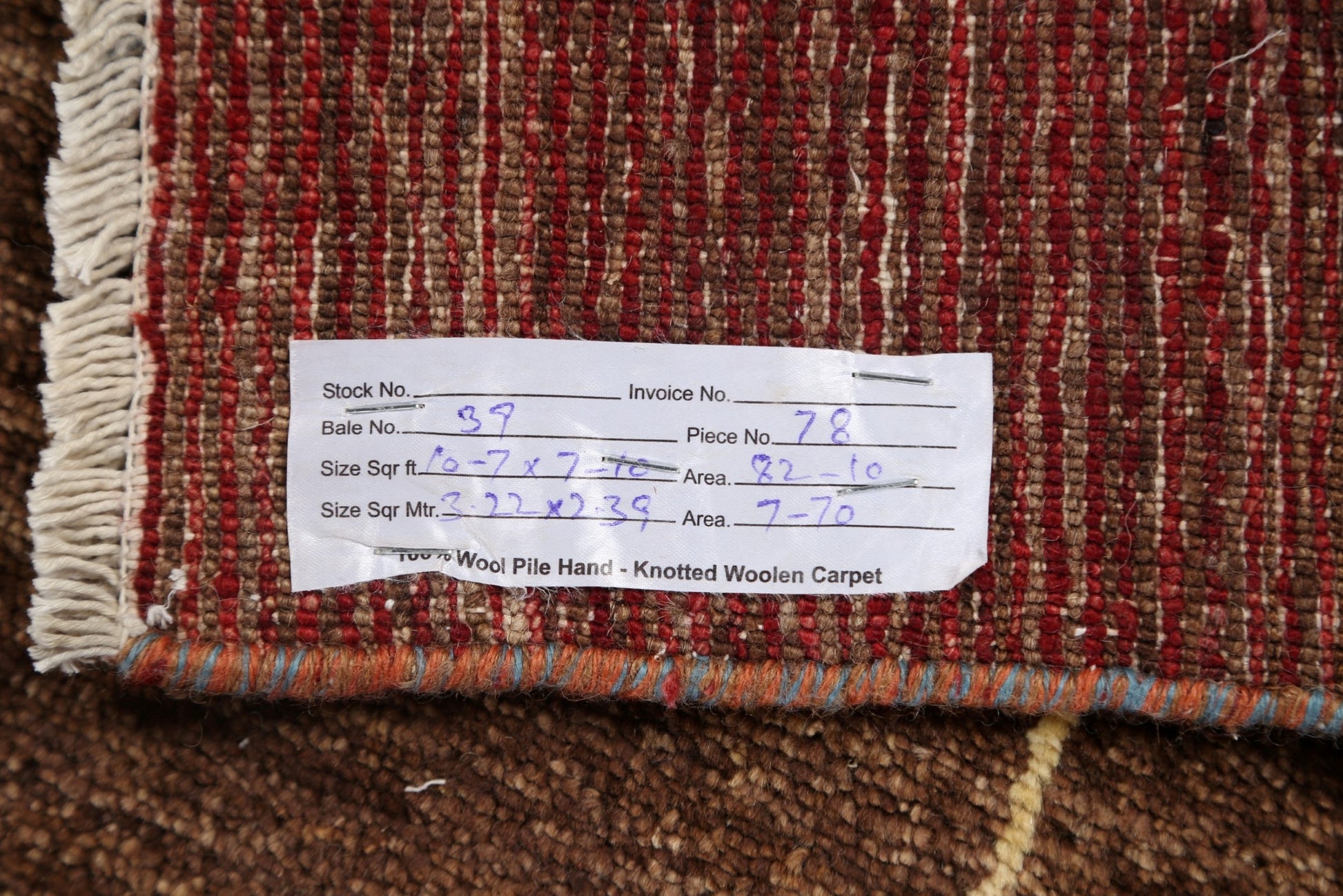 A Beautiful Genuine Pakistan Gabbeh (kashkoli) rug is Hand Knotted by skillful weavers in Pakistan with 100% Wool Material. This rug is in New, First Quality condition. dimensions are 10' 6'' X 7' 8'' in foot and 320 X 234 in centimeter. the primary color is Multi-Colored.