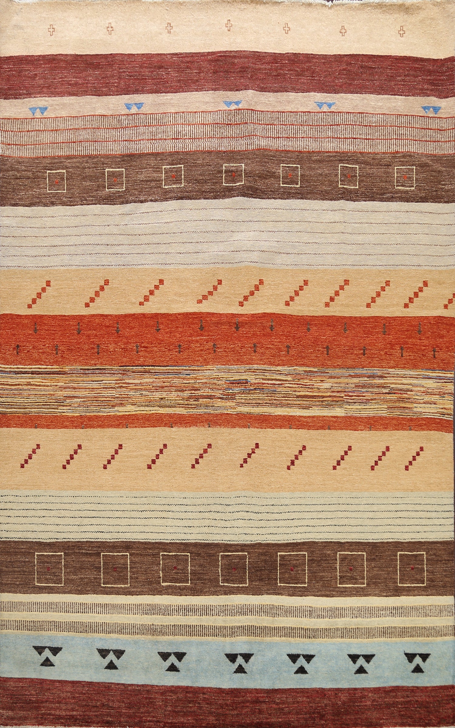 Modern Striped Gabbeh Kashkoli Oriental Area Rug 8x11