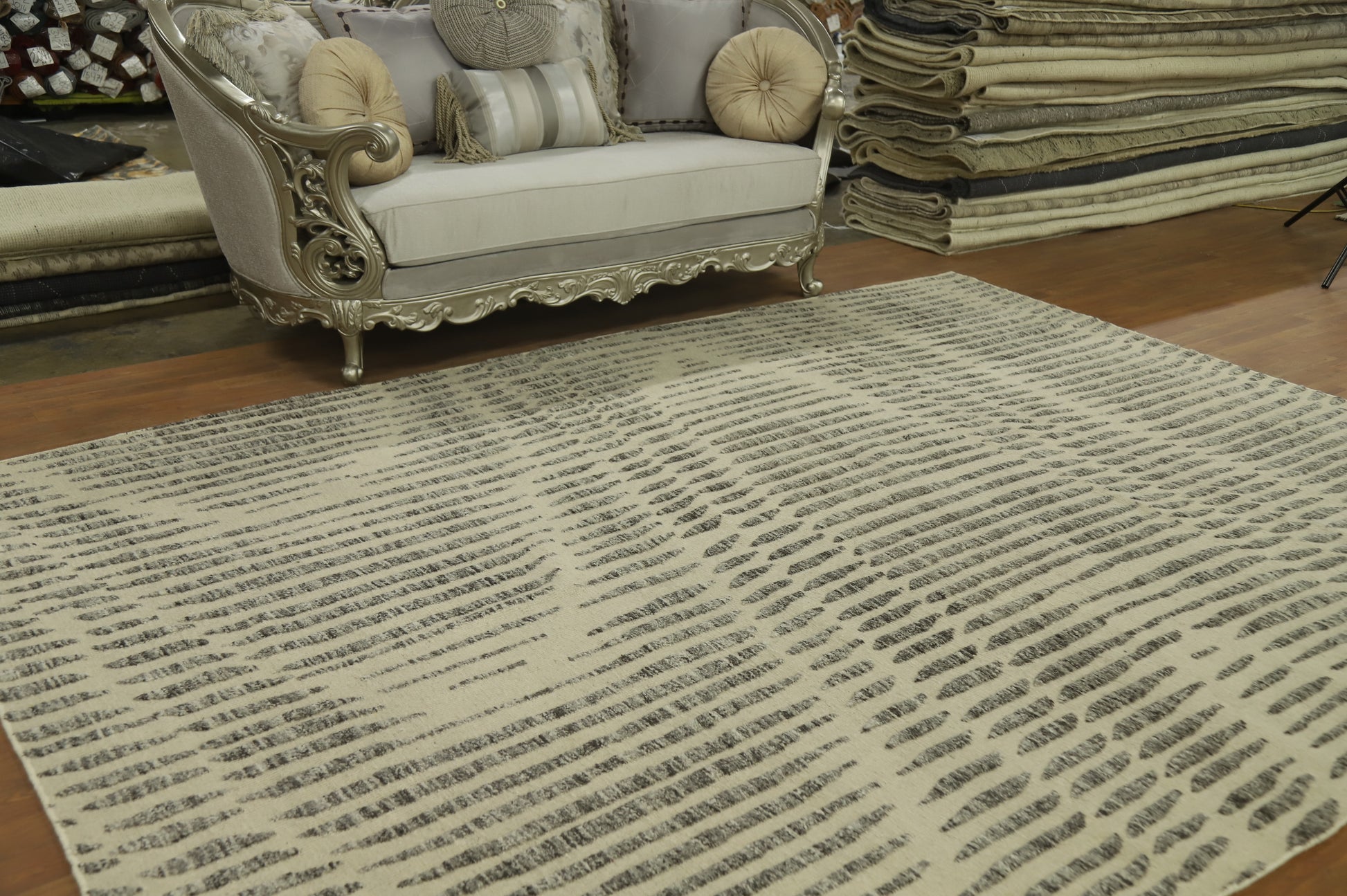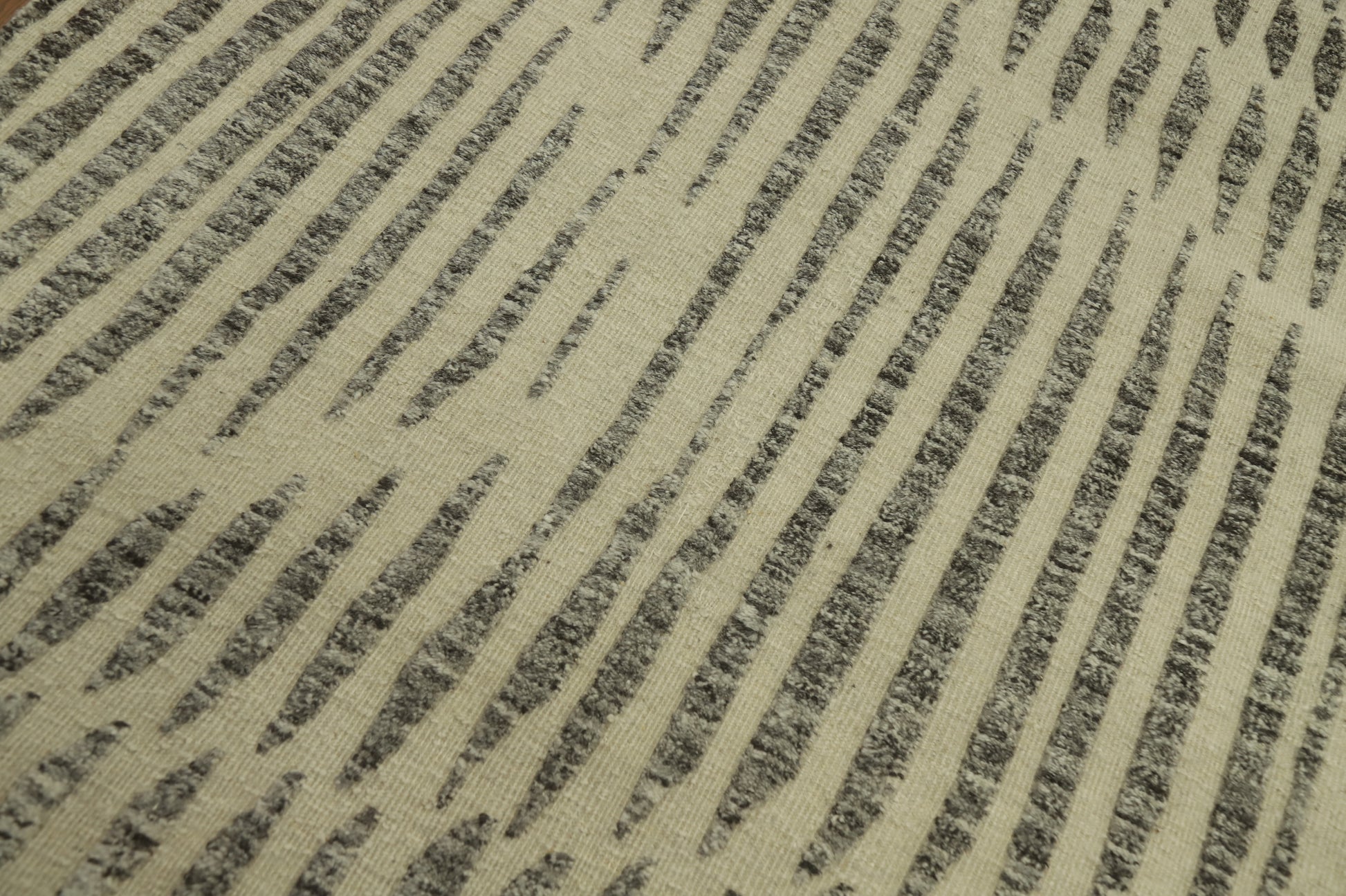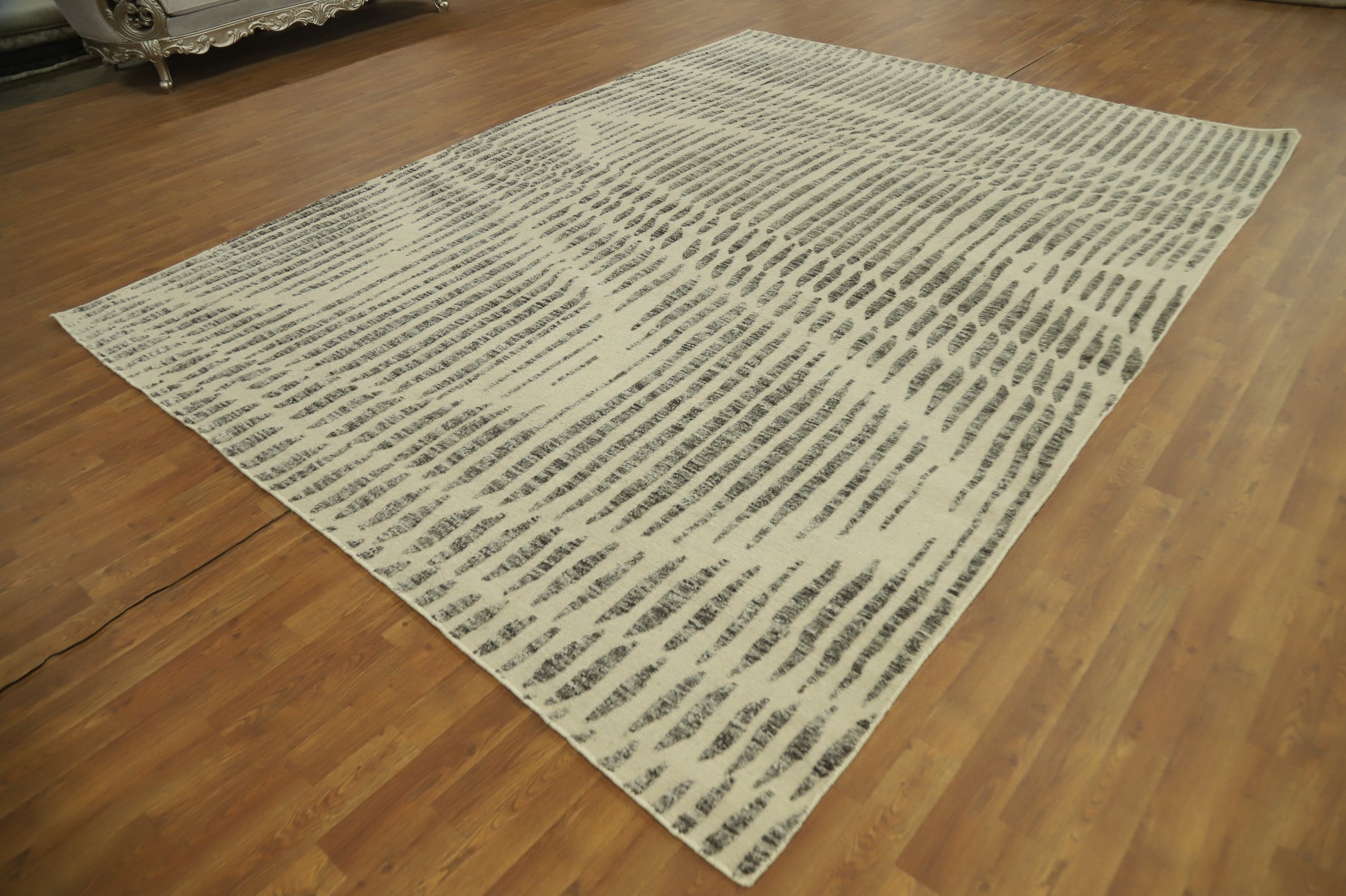 A Beautiful Genuine India Abstract rug is Hand Knotted by skillful weavers in India with 100% Wool Material. This rug is in New, First Quality condition. dimensions are 11' 1'' X 8' 5'' in foot and 338 X 257 in centimeter. the primary color is Beige & Ivories.