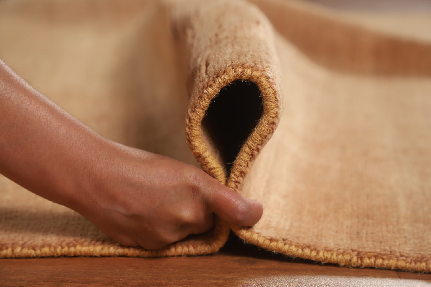 A Beautiful Genuine Pakistan Gabbeh rug is Hand Knotted by skillful weavers in Pakistan with 100% Wool Material. This rug is in New, First Quality condition. dimensions are 7' 11'' X 5' 7'' in foot and 241 X 170 in centimeter. the primary color is Peach.