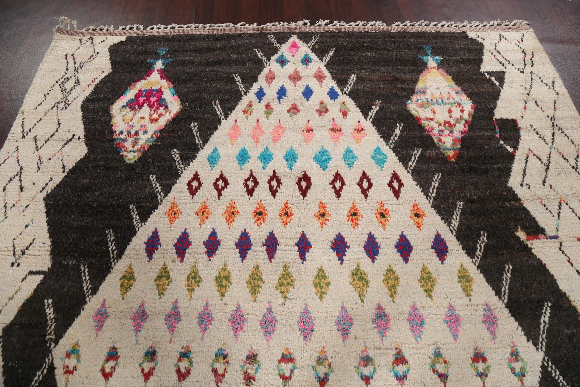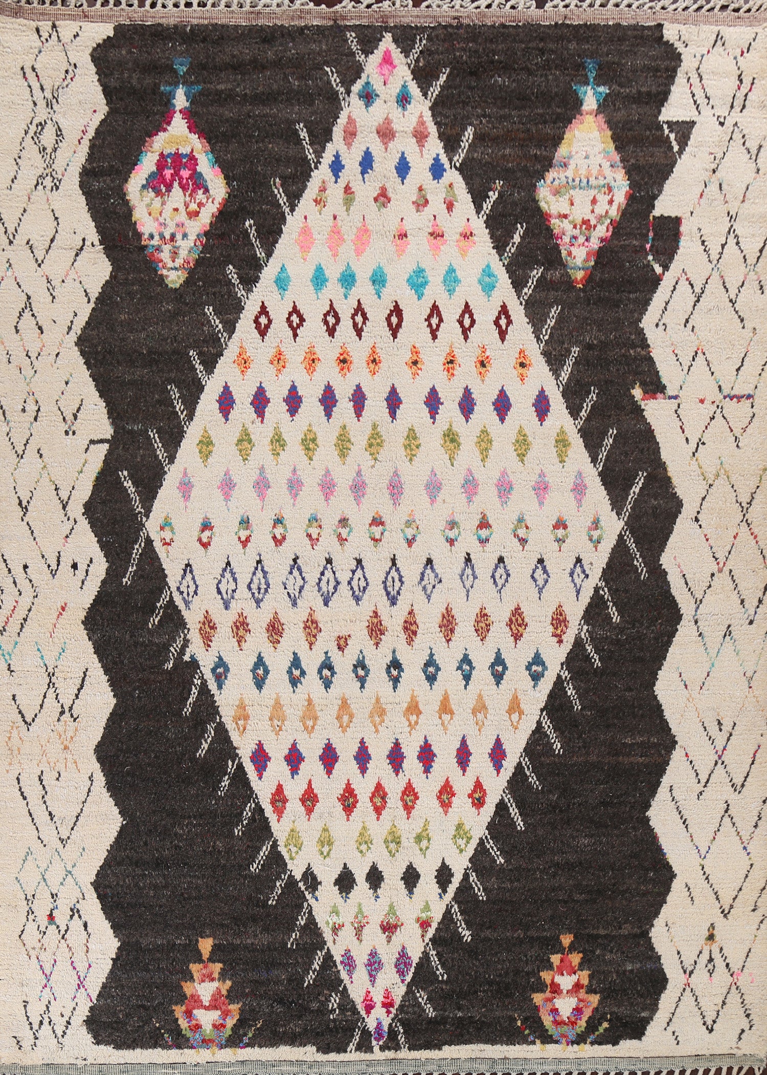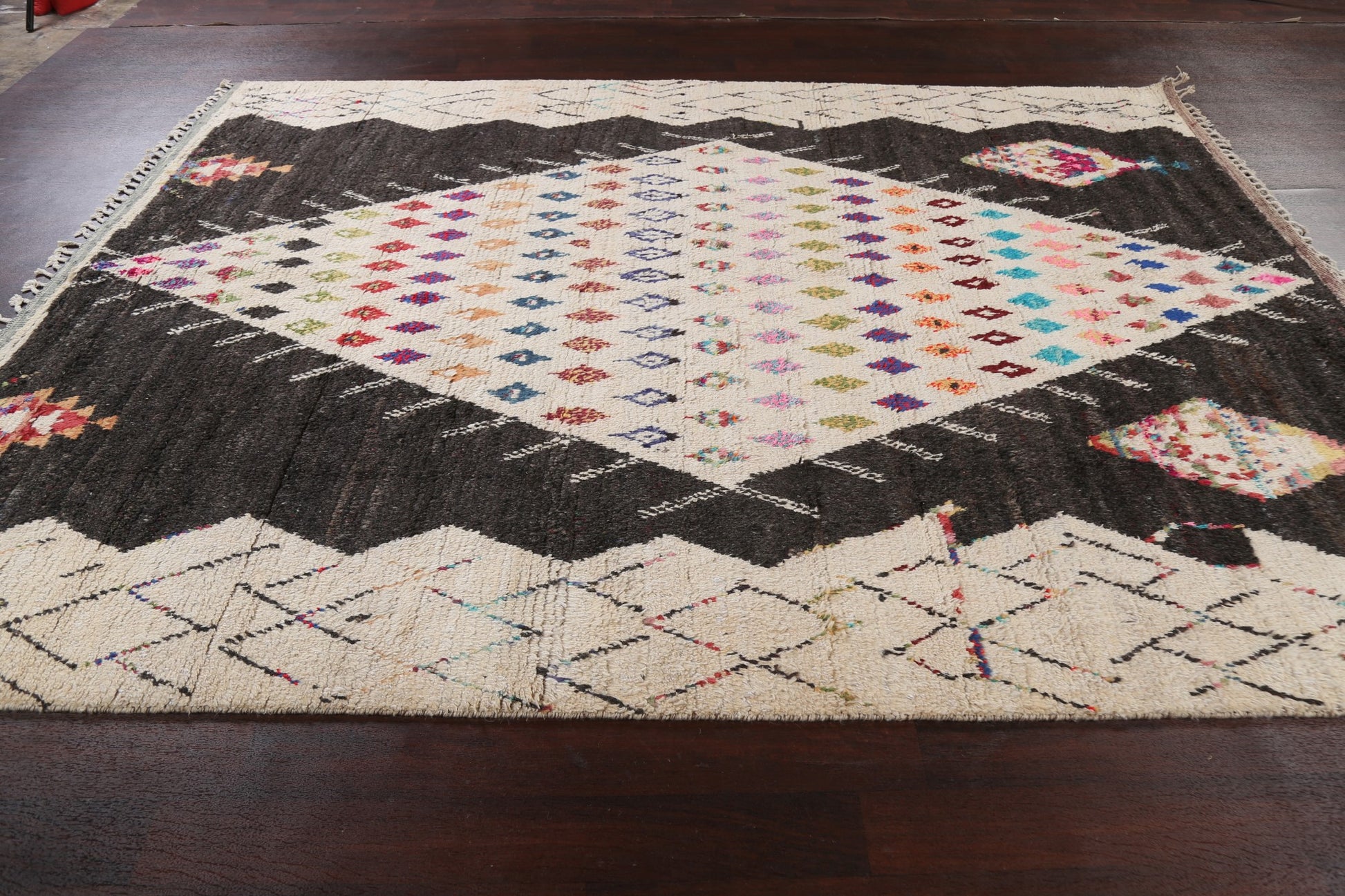 A Beautiful Genuine Morocco Moroccan rug is Hand Knotted by skillful weavers in Morocco with 100% Wool Material. This rug is in New, First Quality condition. dimensions are 10' 8'' X 8' 3'' in foot and 325 X 251 in centimeter. the primary color is Beige & Ivories.