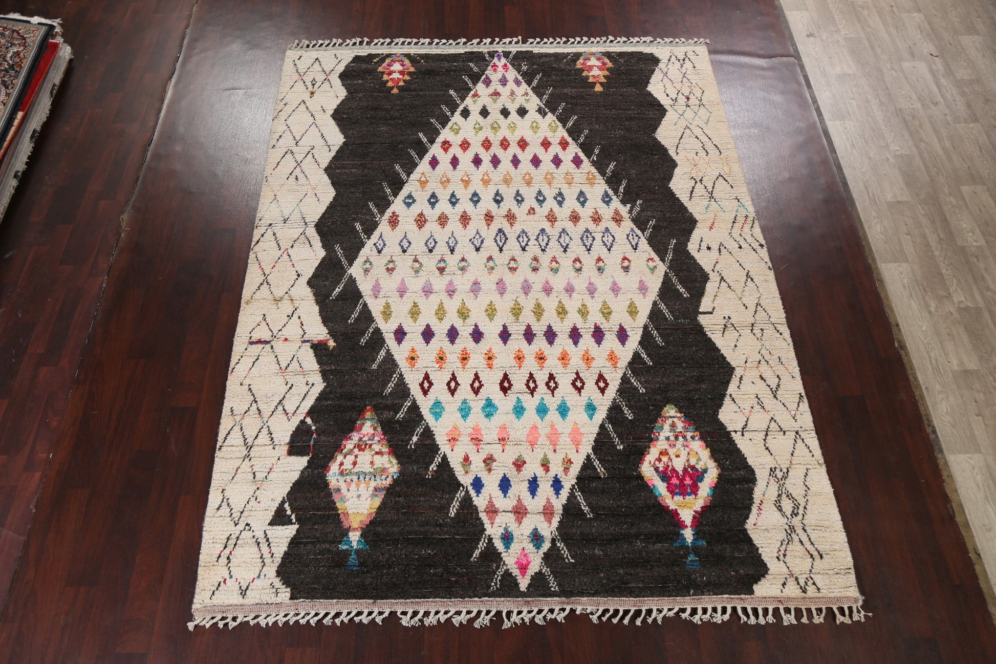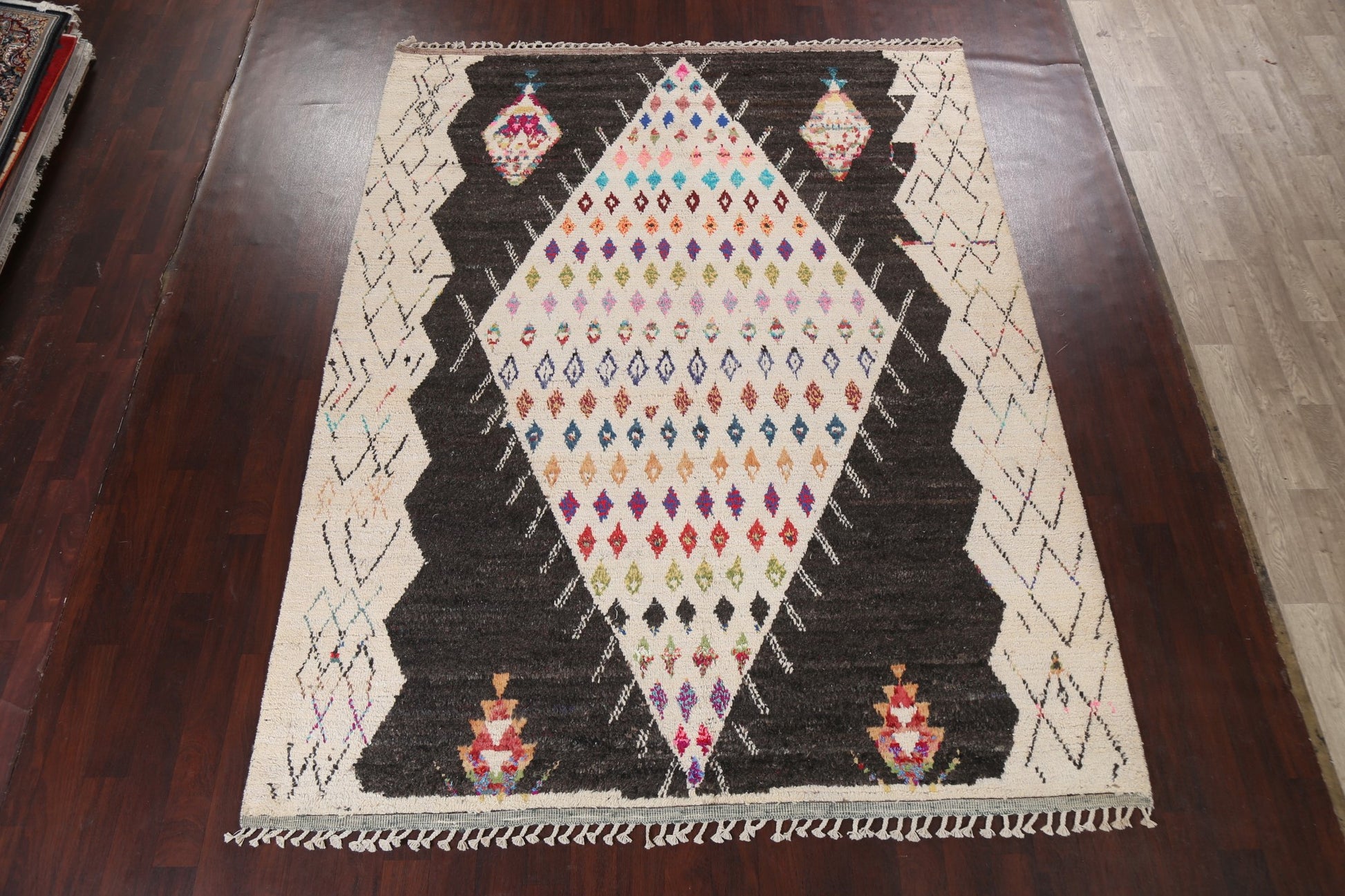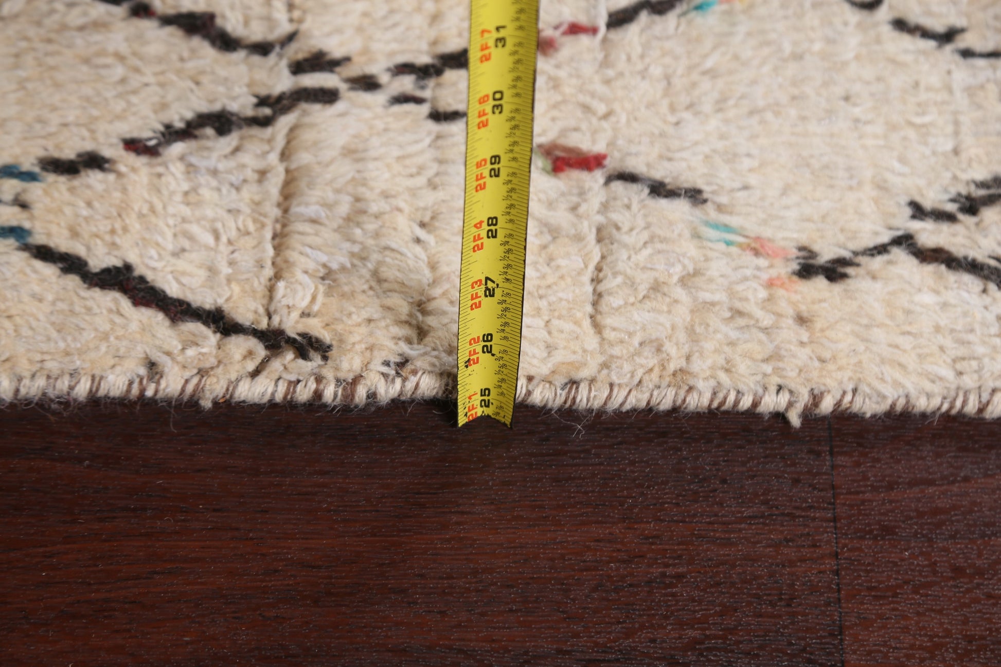 A Beautiful Genuine Morocco Moroccan rug is Hand Knotted by skillful weavers in Morocco with 100% Wool Material. This rug is in New, First Quality condition. dimensions are 10' 8'' X 8' 3'' in foot and 325 X 251 in centimeter. the primary color is Beige & Ivories.
