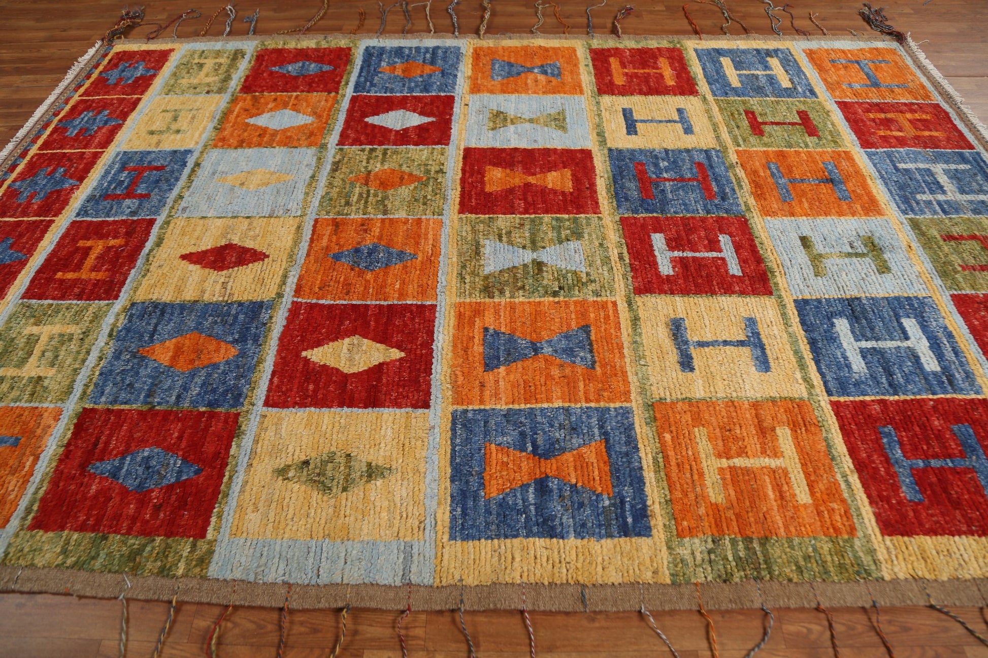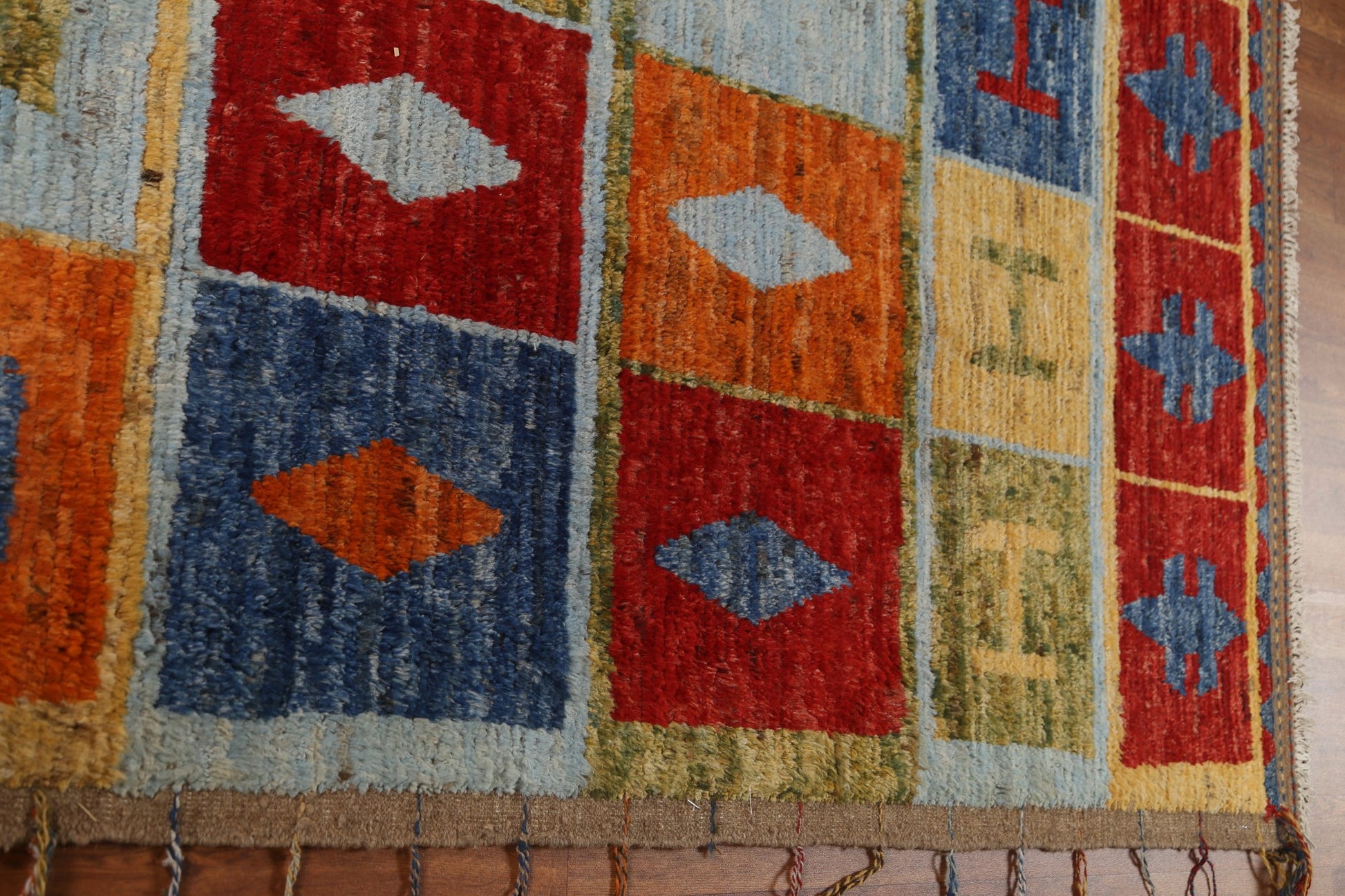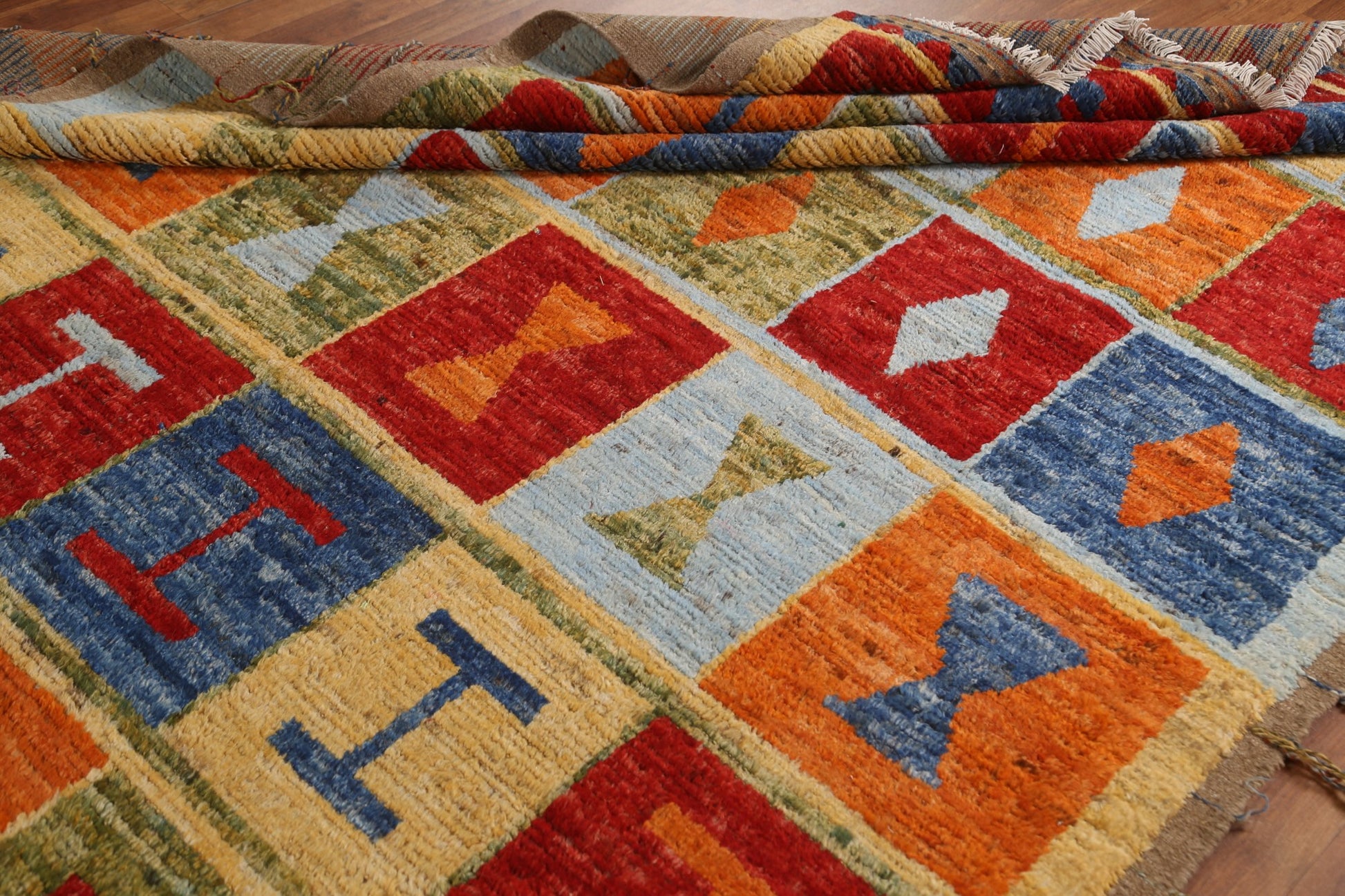 A Beautiful Genuine Pakistan Moroccan rug is Hand Knotted by skillful weavers in Pakistan with 100% Wool Material. This rug is in condition. dimensions are 10' 0'' X 6' 8'' in foot and 305 X 203 in centimeter. the primary color is Multi-Colored.