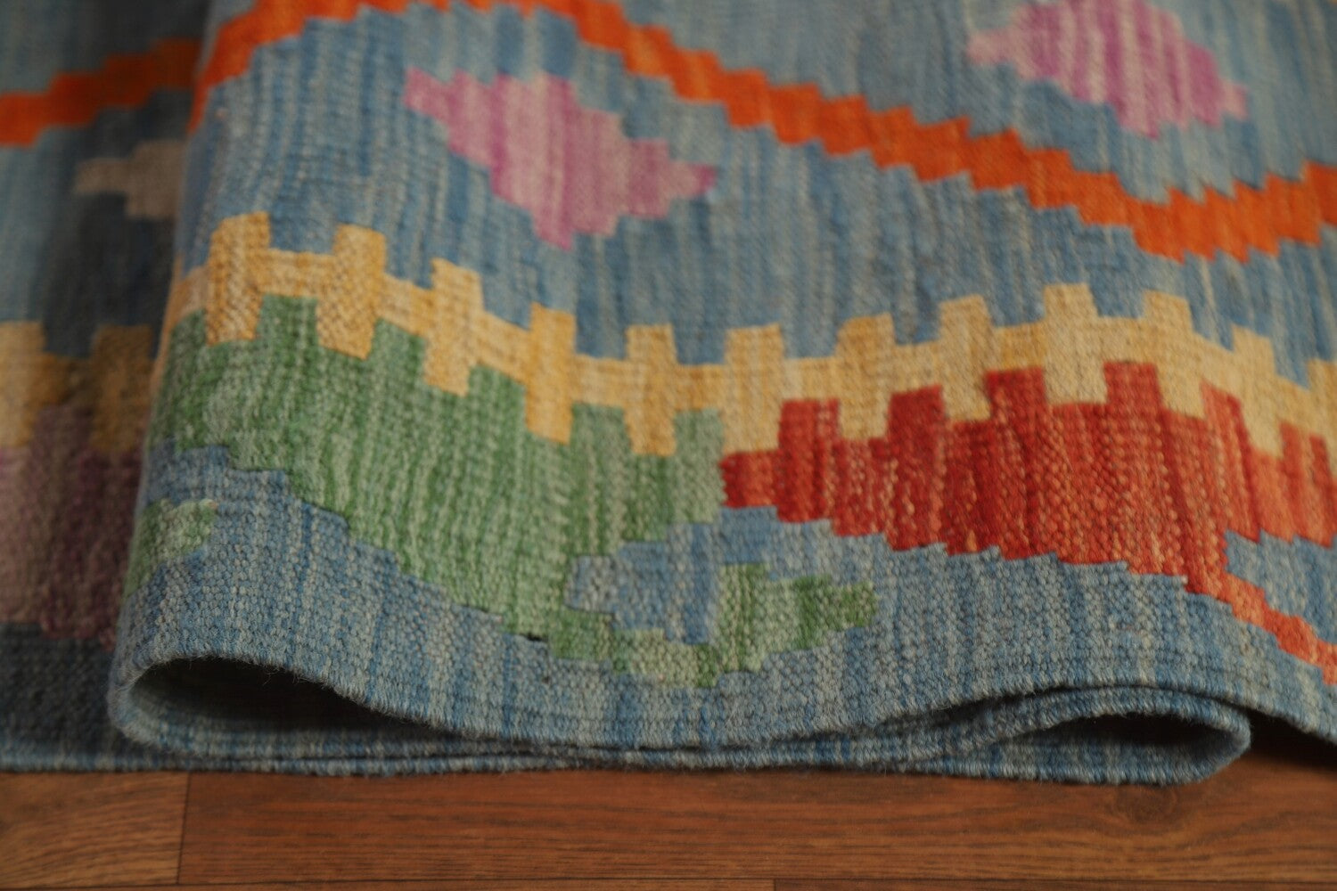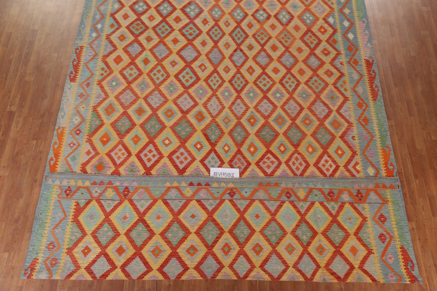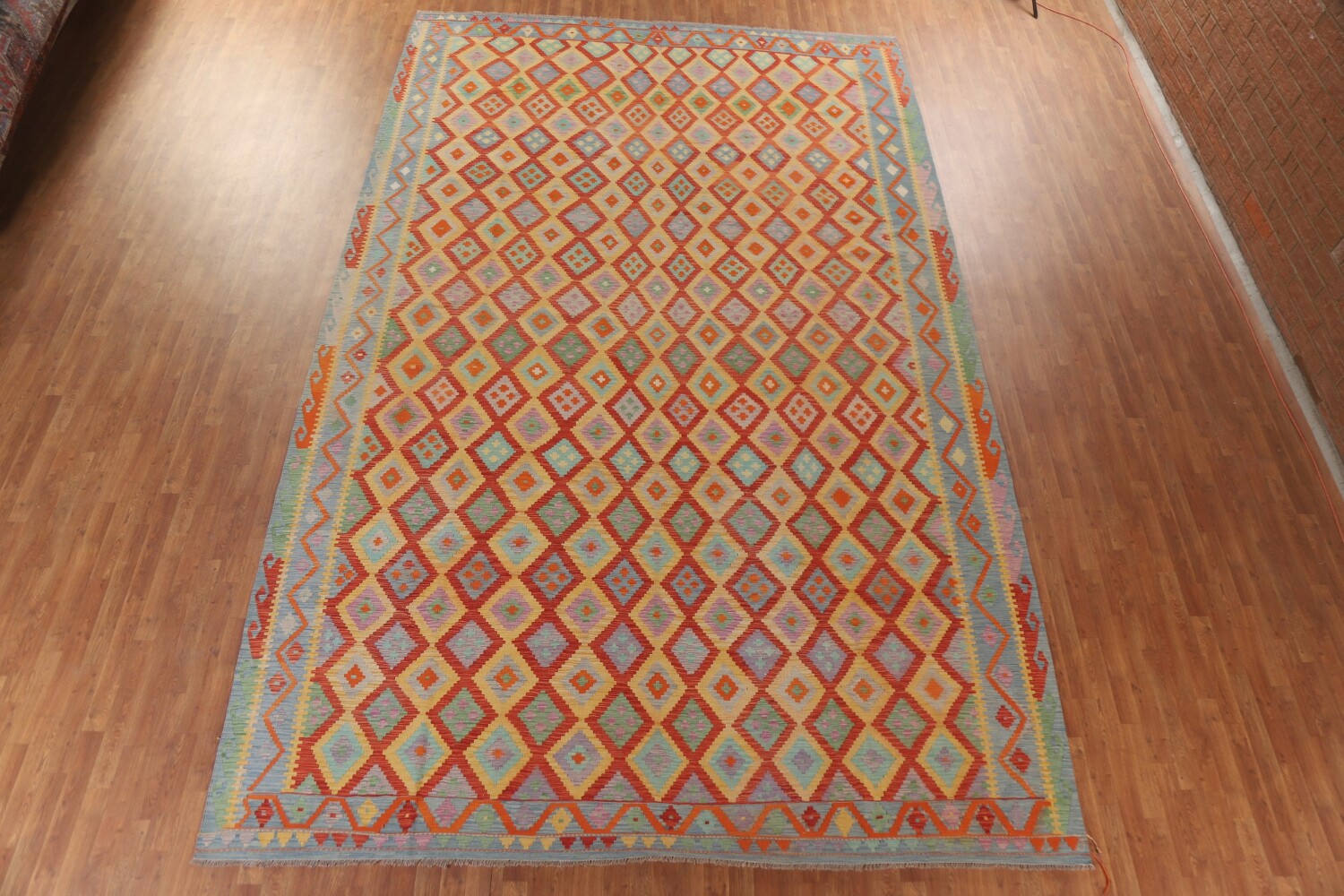 A Beautiful Genuine Pakistan Kilim rug is Hand Woven by skillful weavers in Pakistan with 100% Wool Material. This rug is in New, First Quality condition. dimensions are 16' 3'' X 10' 3'' in foot and 495 X 312 in centimeter. the primary color is Multi-Colored.