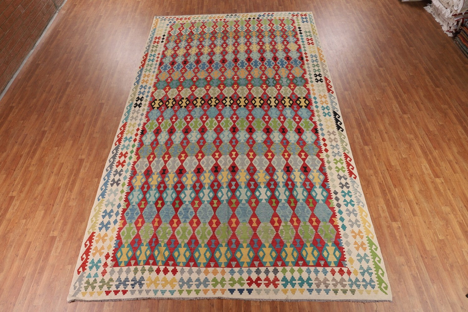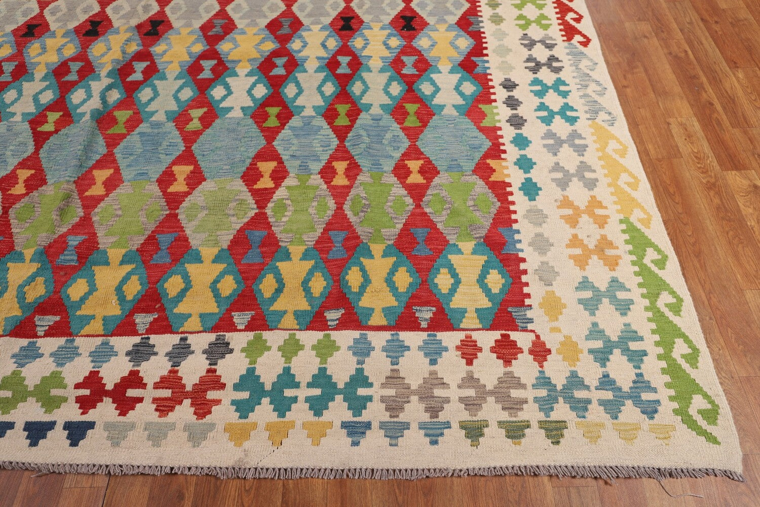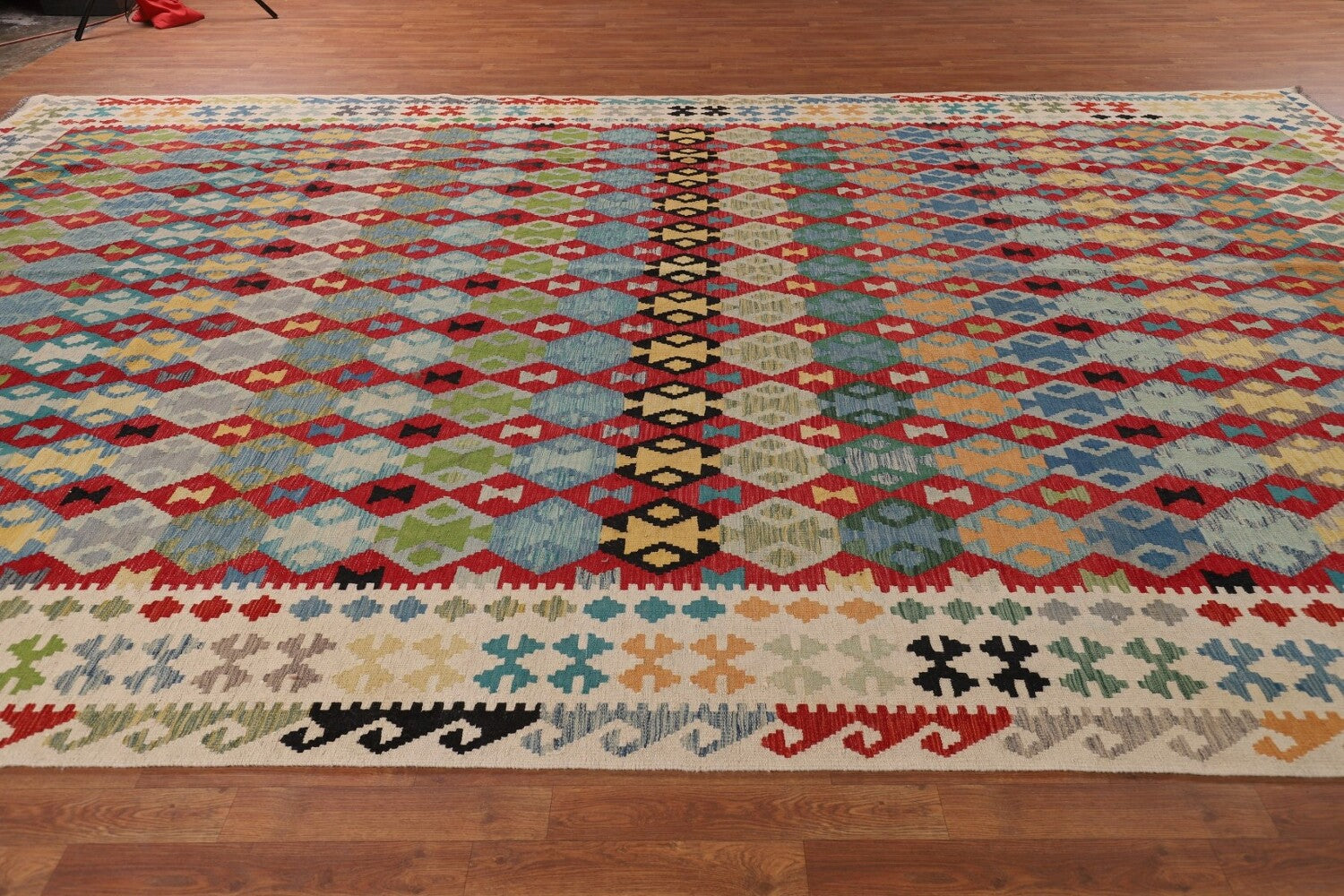 A Beautiful Genuine Pakistan Kilim rug is Hand Woven by skillful weavers in Pakistan with 100% Wool Material. This rug is in New, First Quality condition. dimensions are 16' 4'' X 10' 2'' in foot and 498 X 310 in centimeter. the primary color is Multi-Colored.