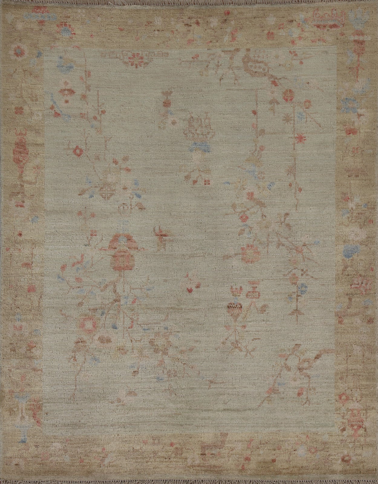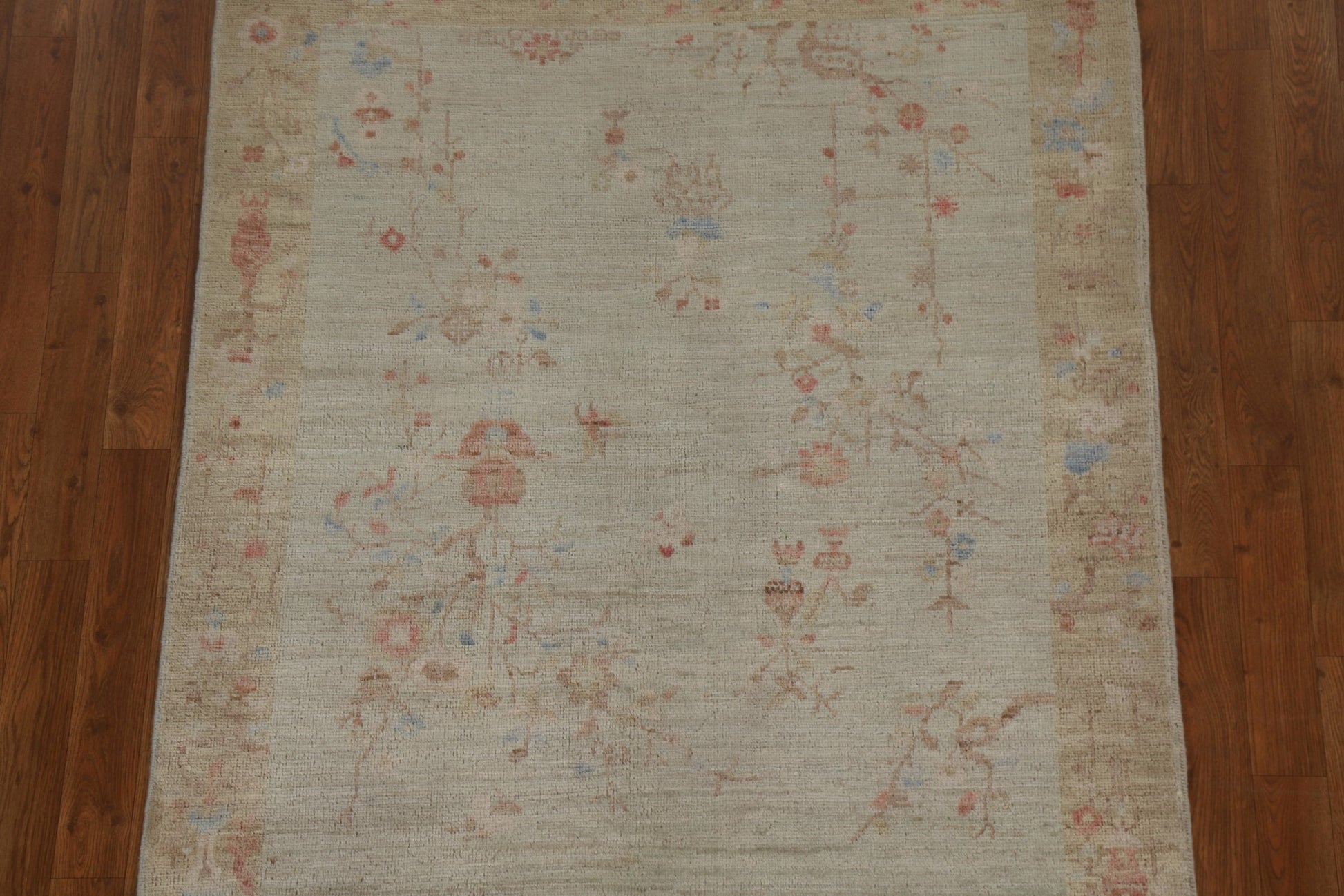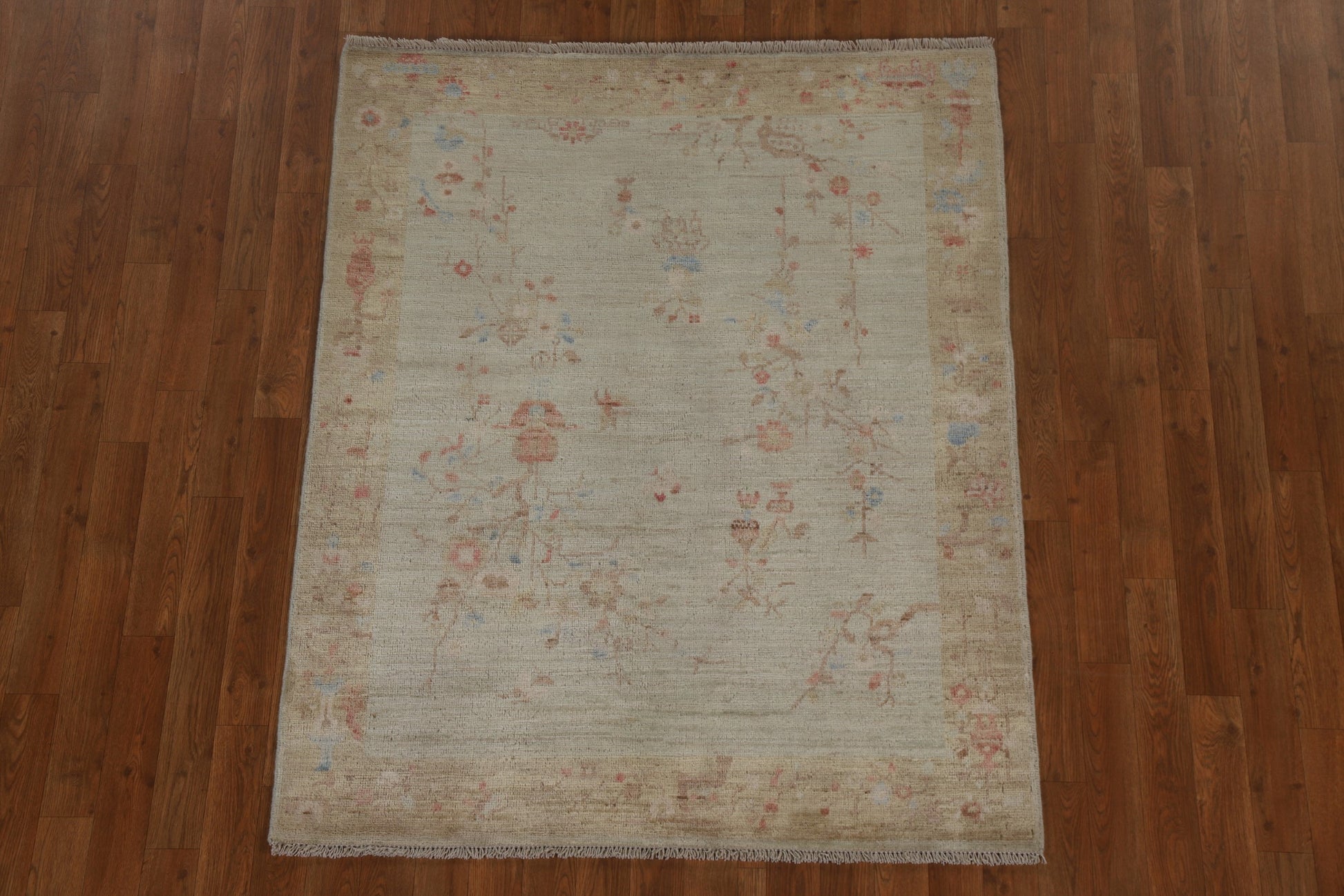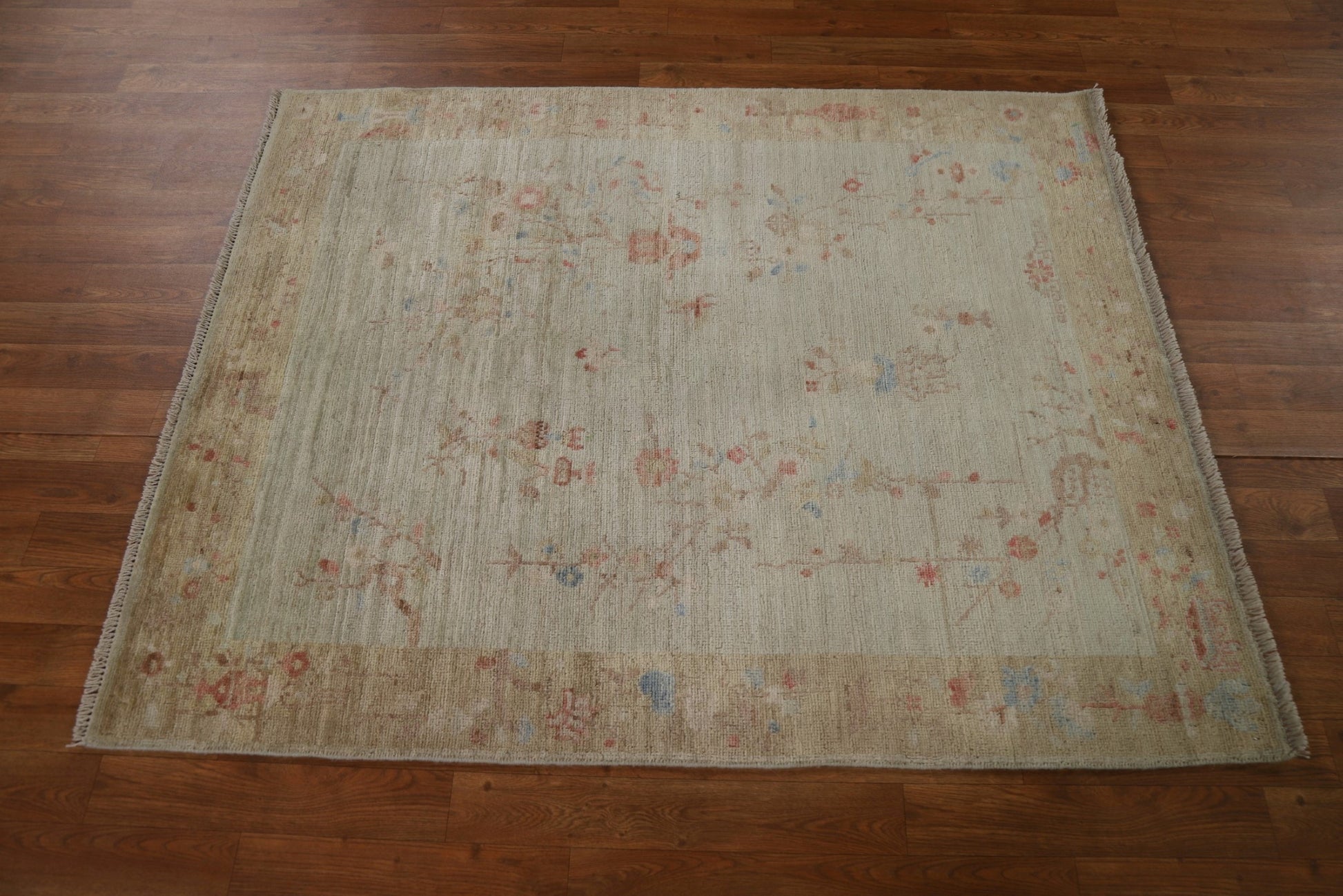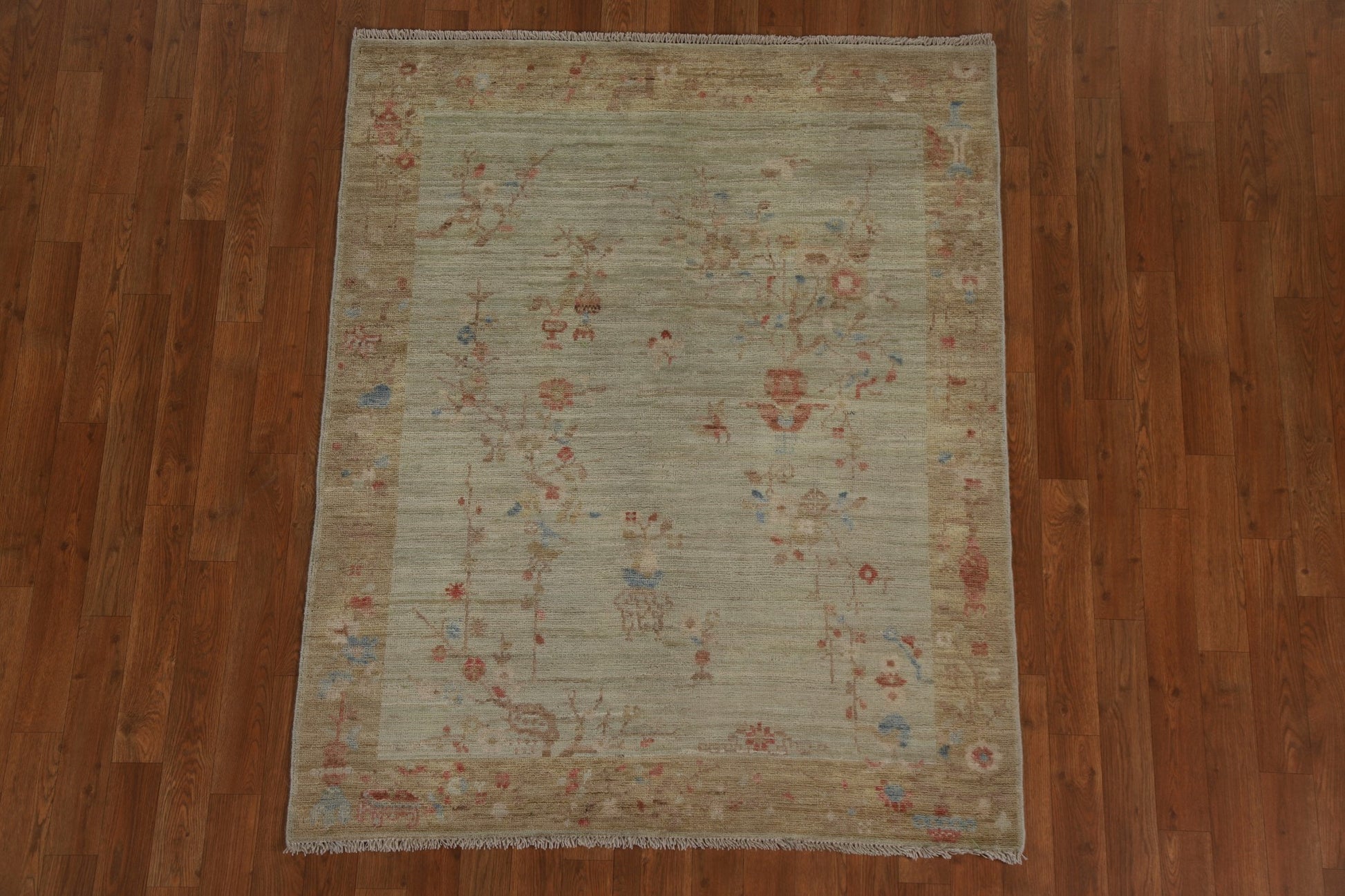 Muted Art Deco Oriental Area Rug Wool 4x5