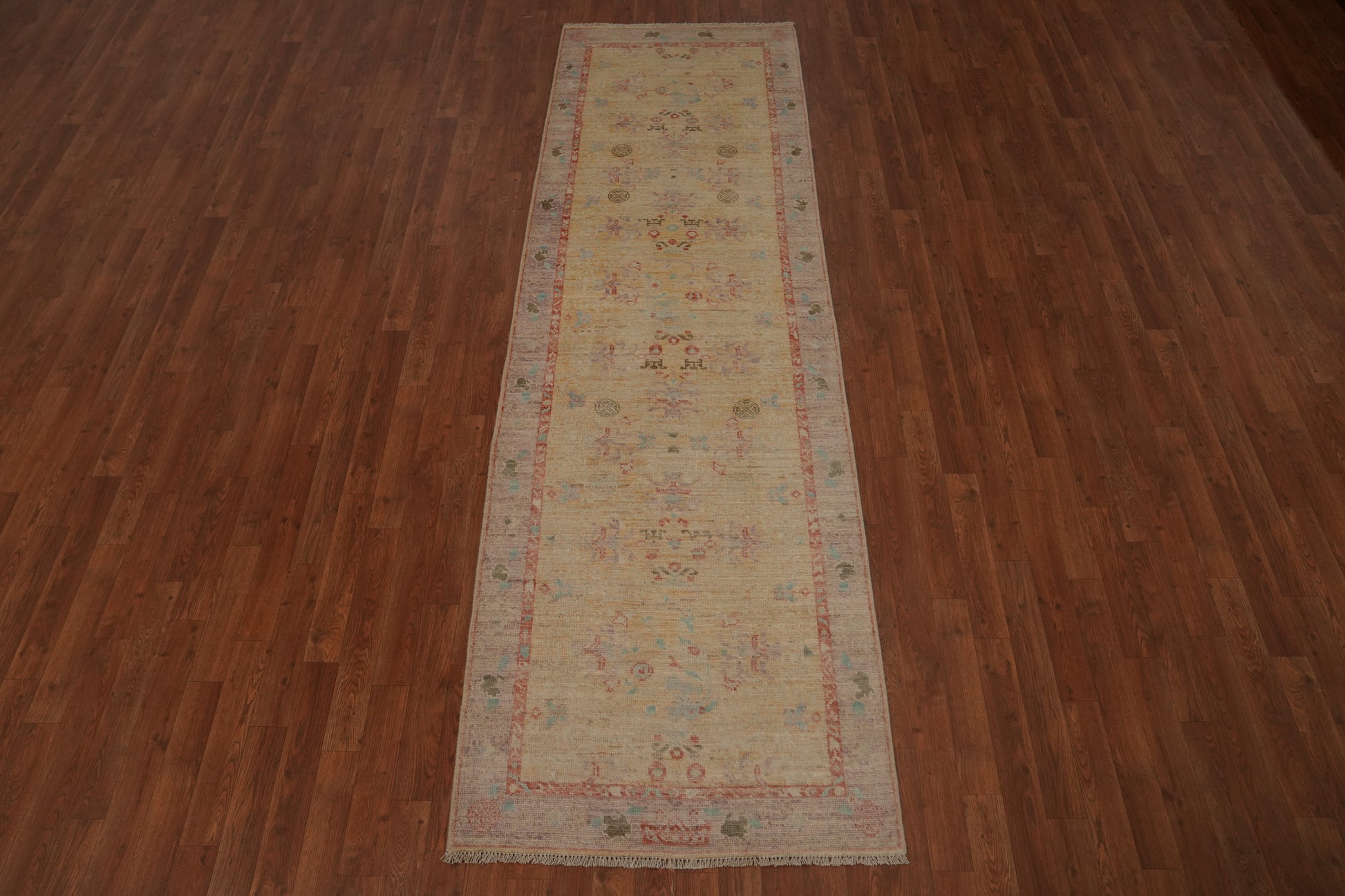 A Beautiful Genuine Pakistan Ziegler rug is Hand Knotted by skillful weavers in Pakistan with 100% Wool Material. This rug is in New, First Quality condition. dimensions are 9' 9'' X 3' 0'' in foot and 297 X 91 in centimeter. the primary color is Yellow & Gold.