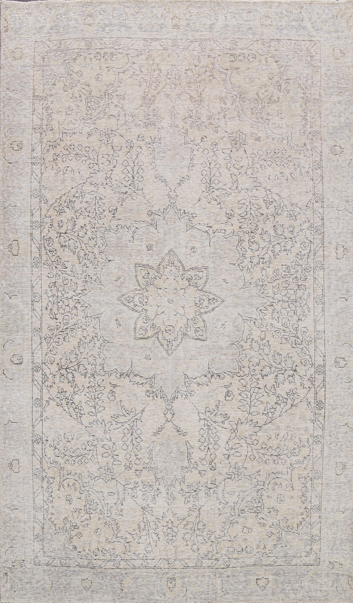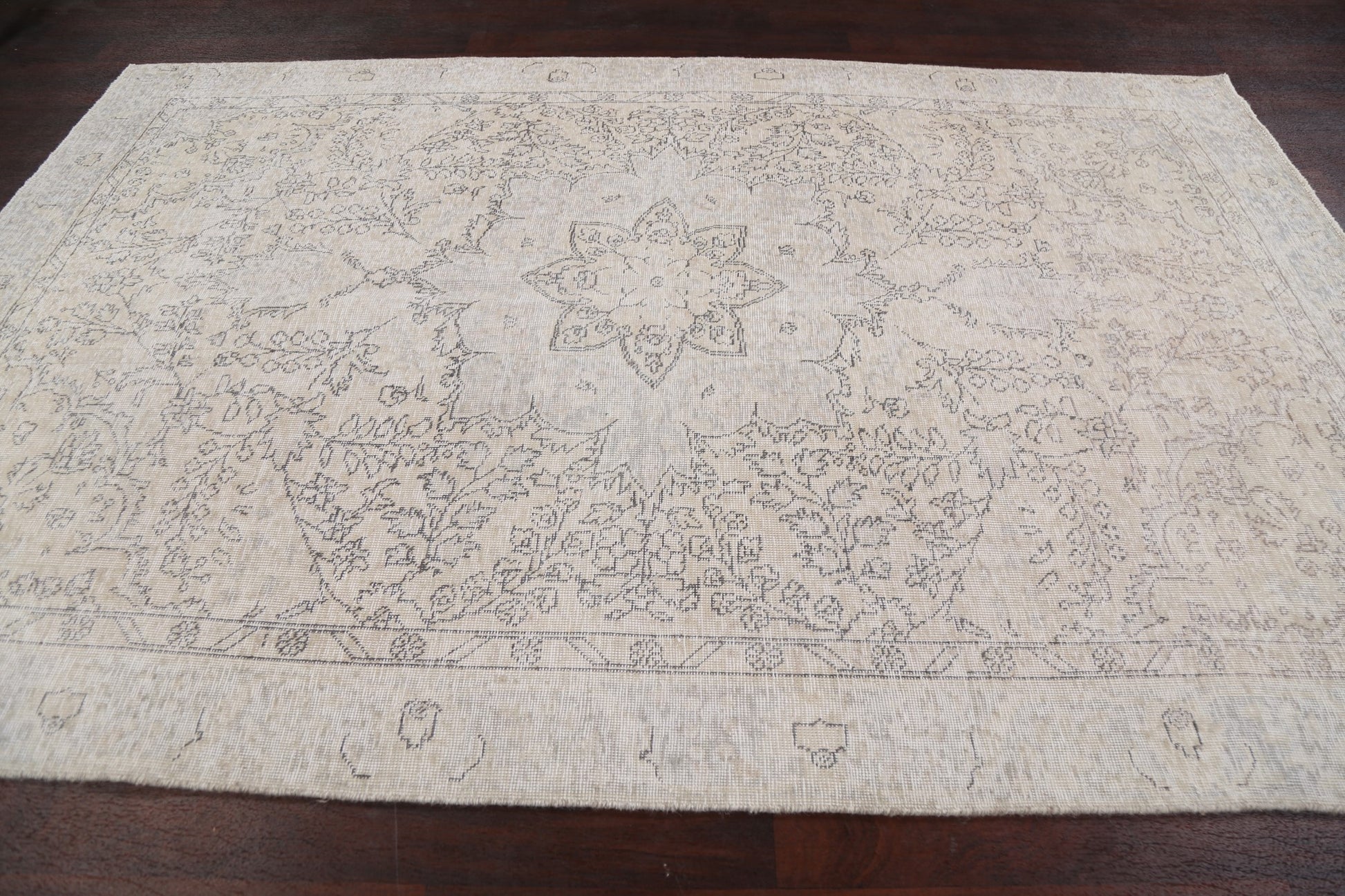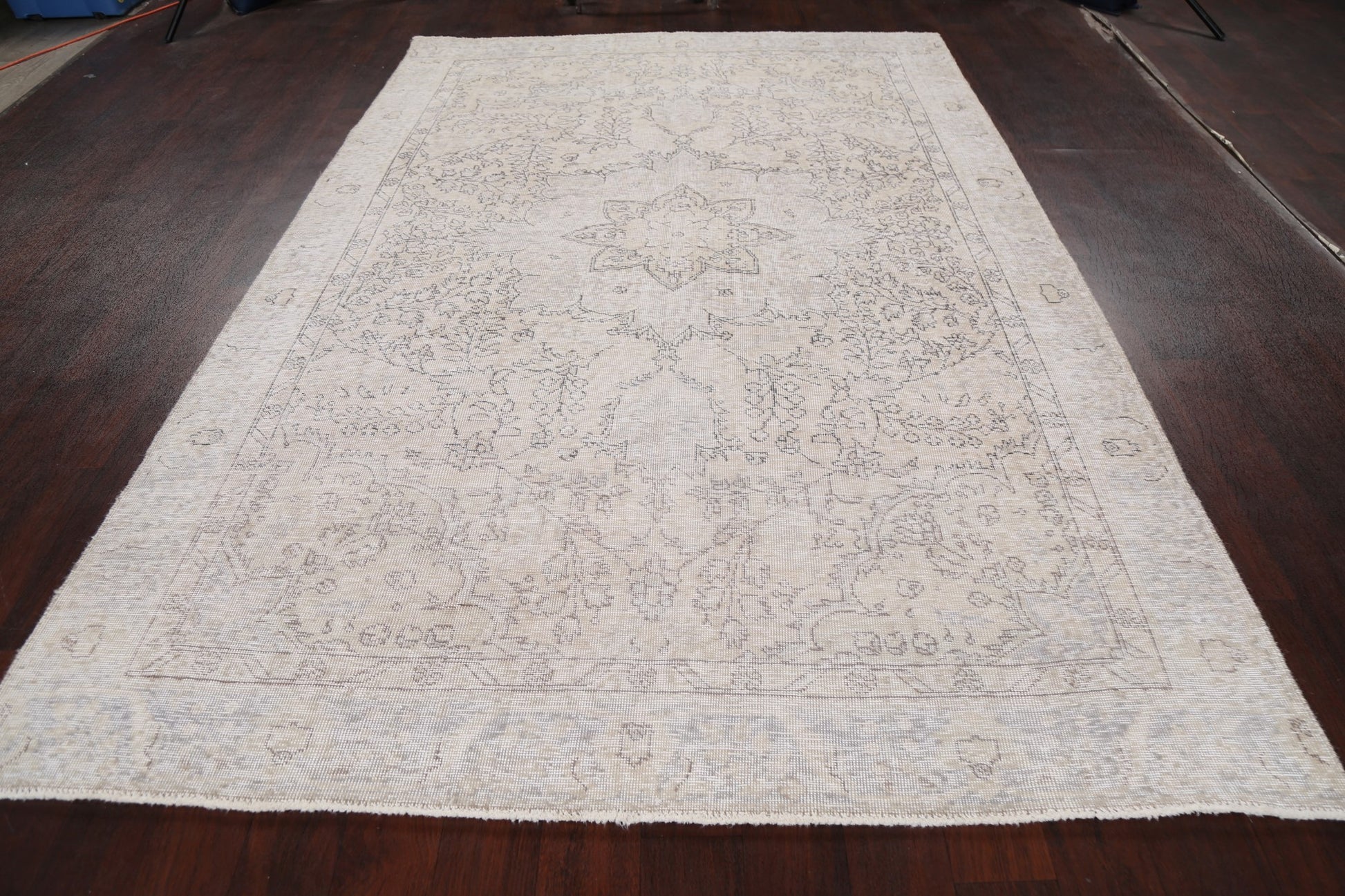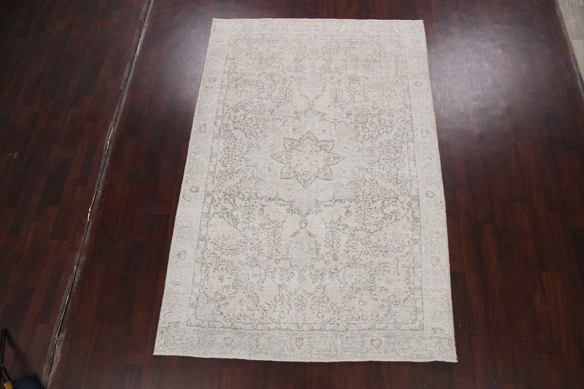 Muted Distressed Floral Tabriz Persian Area Rug 6x9