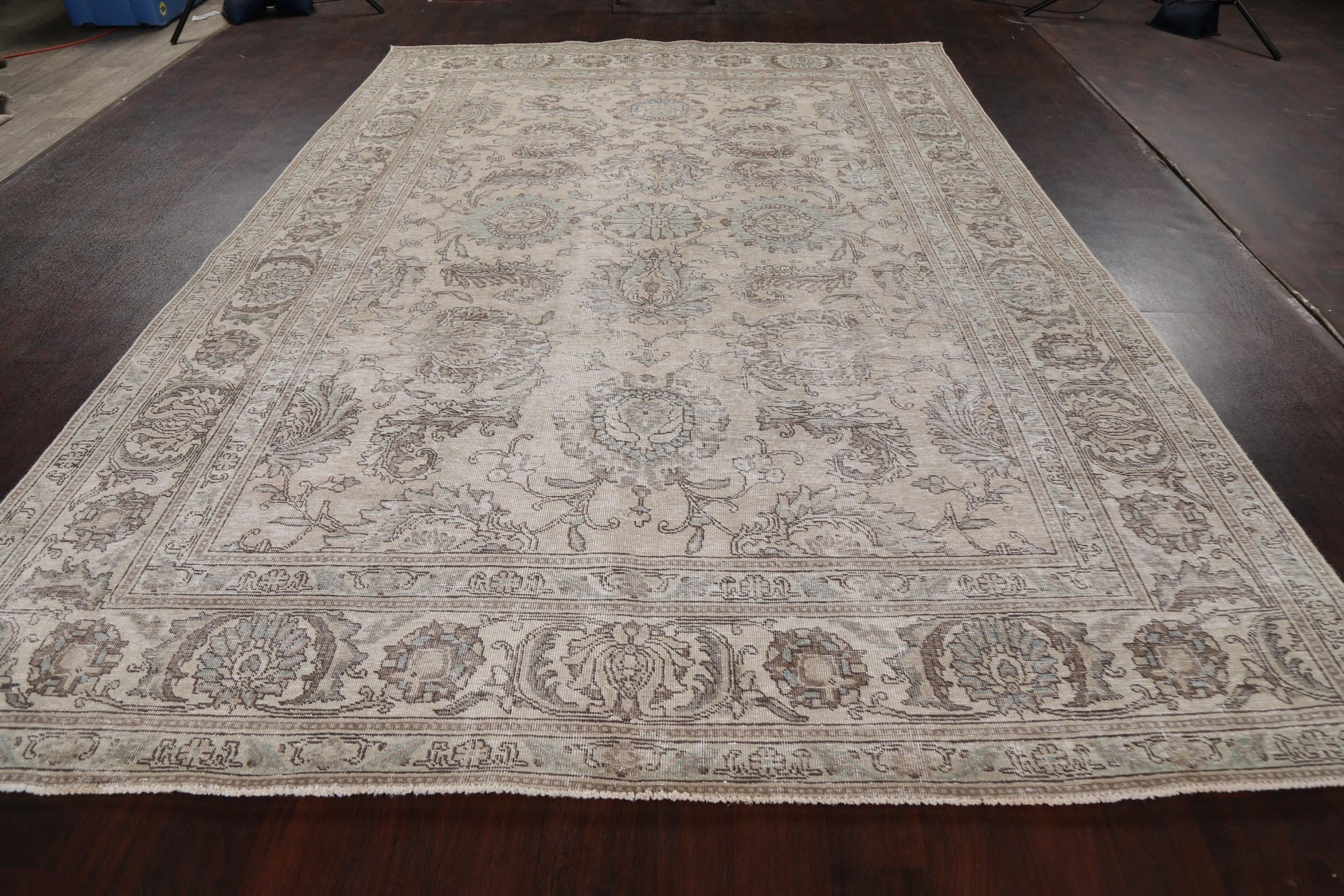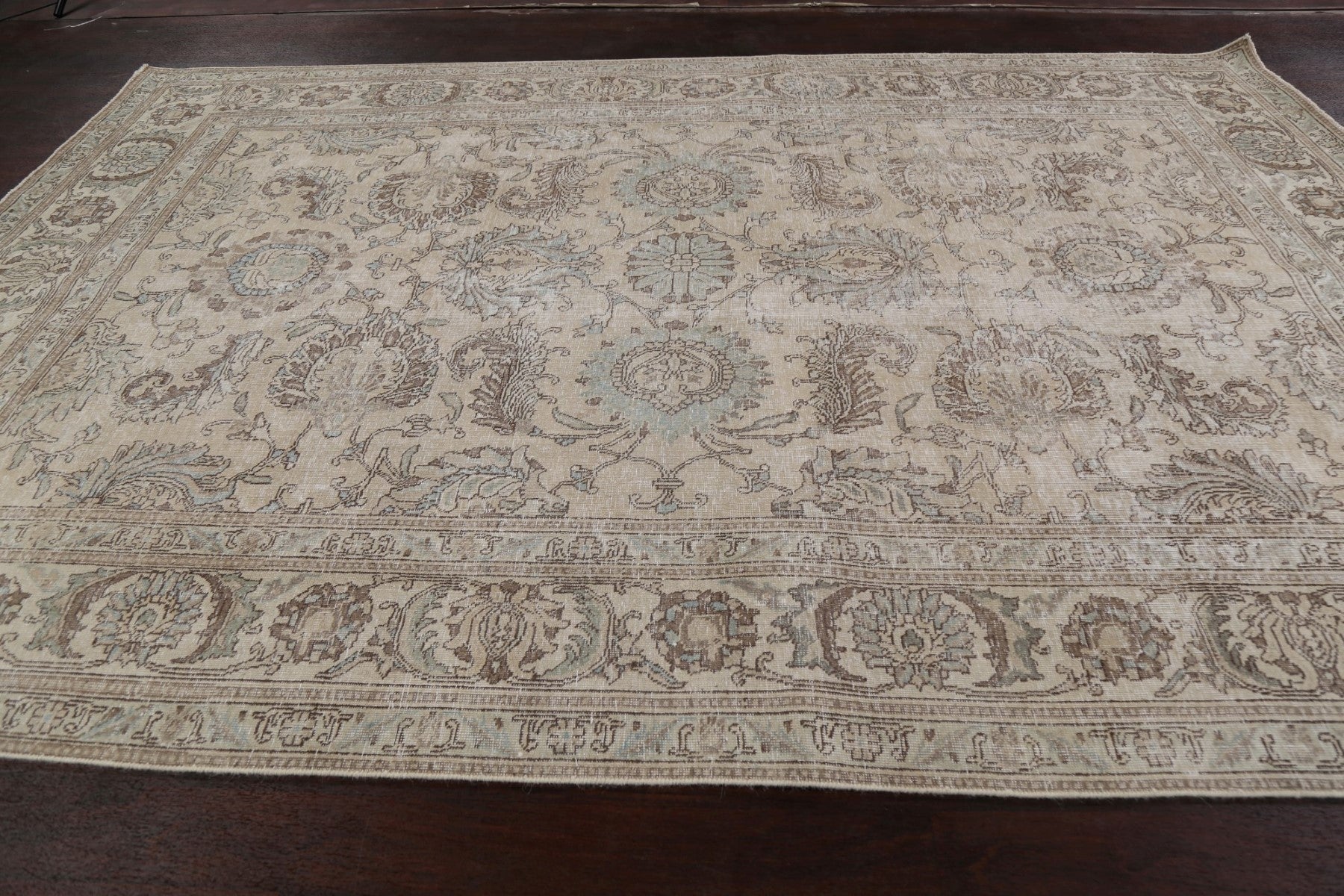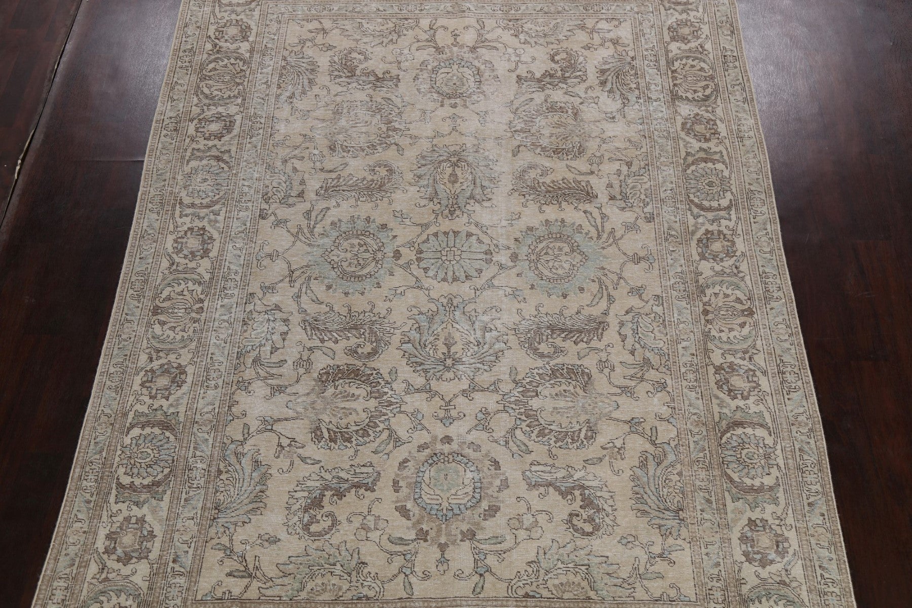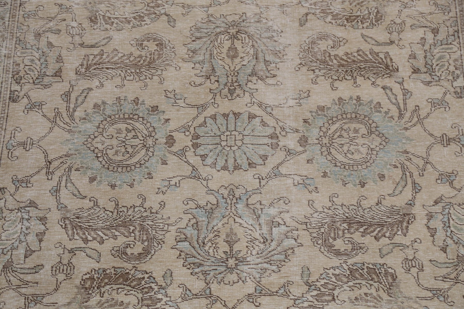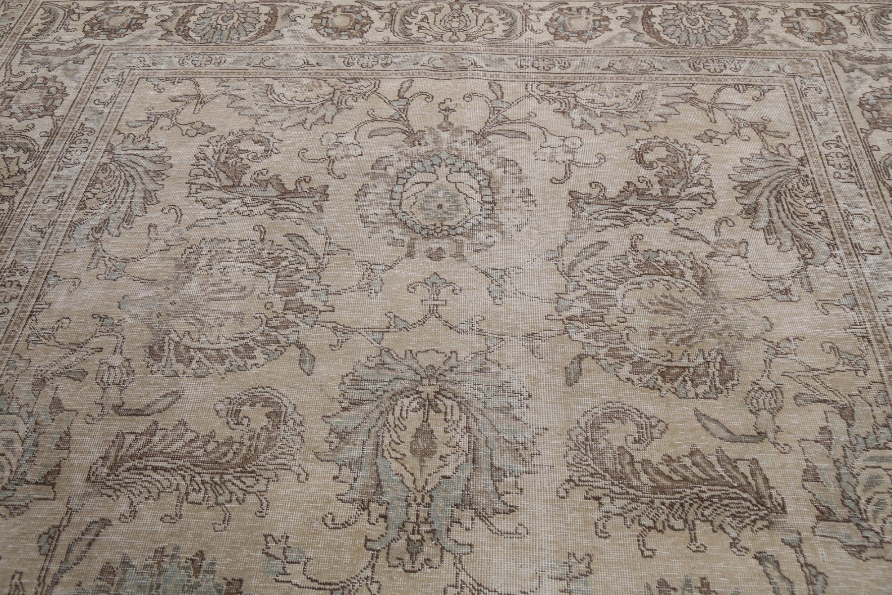 Muted Distressed Floral Tabriz Persian Area Rug 8x11