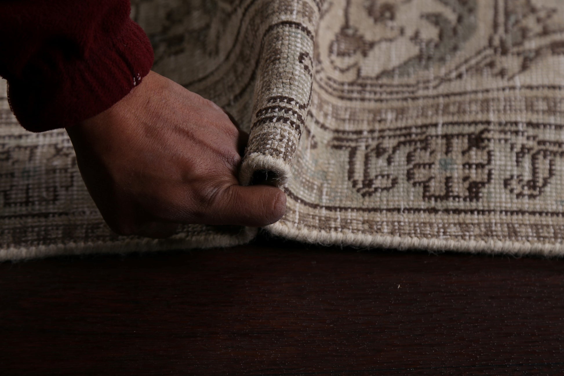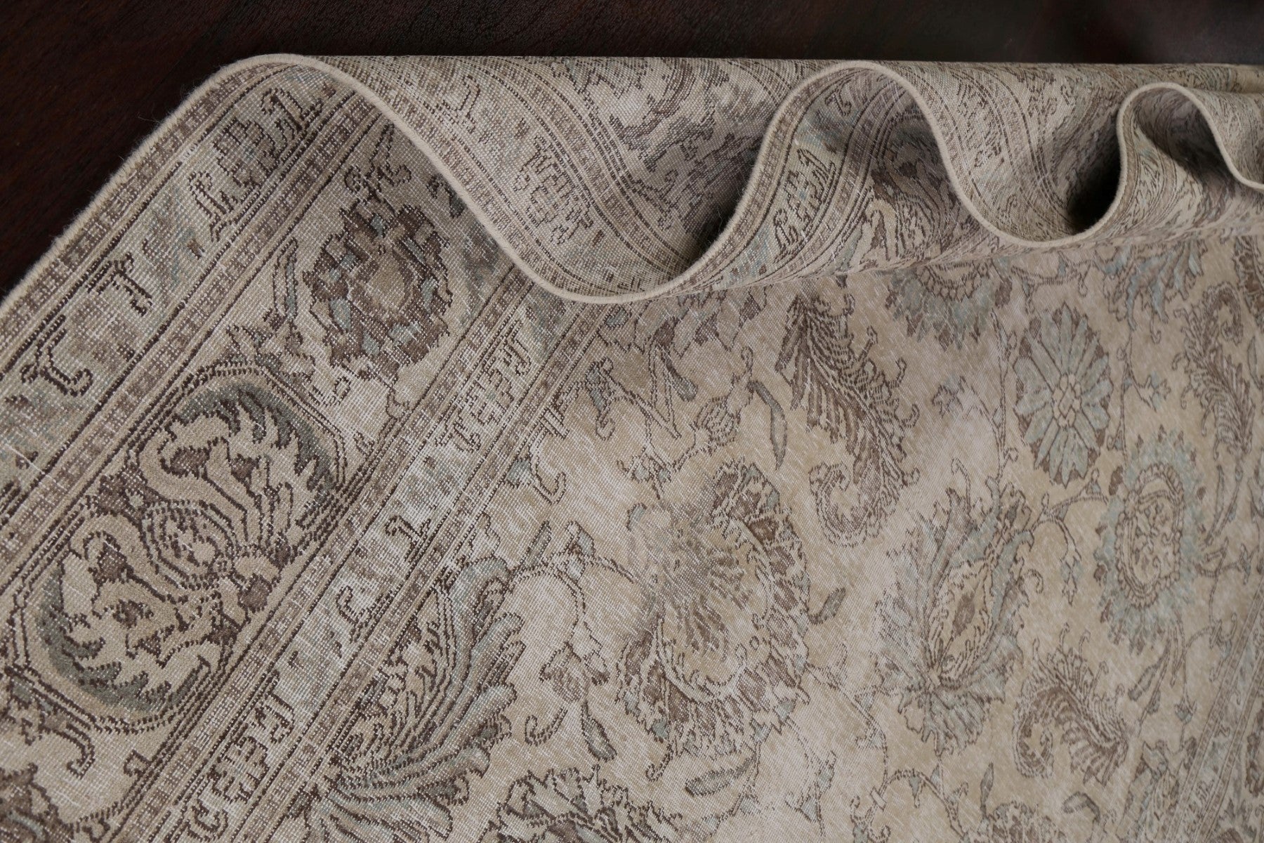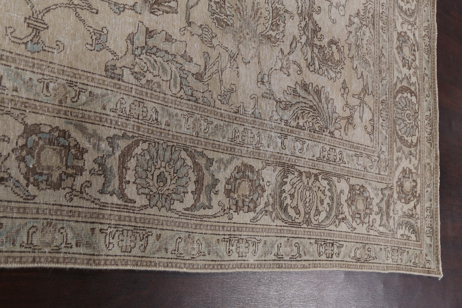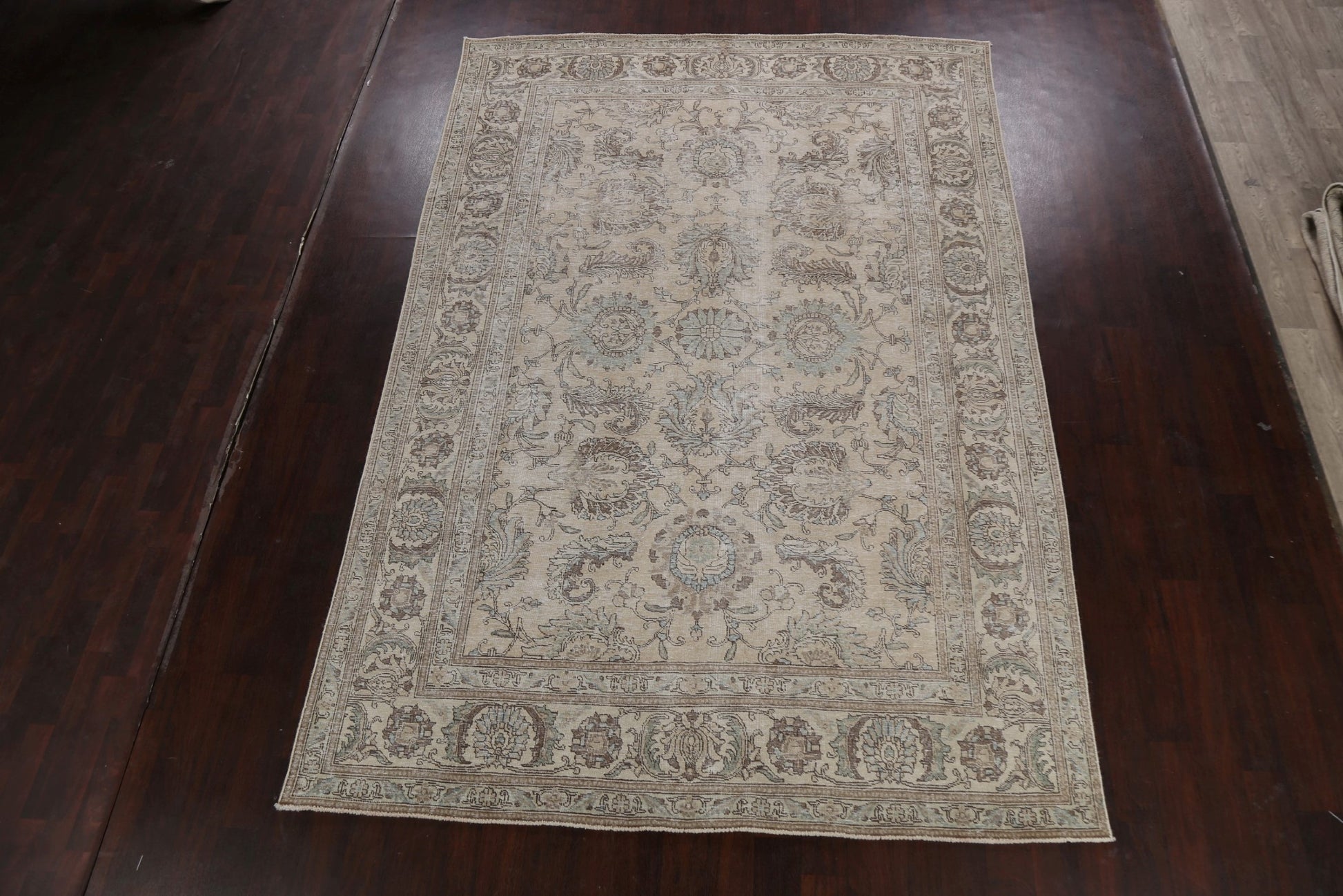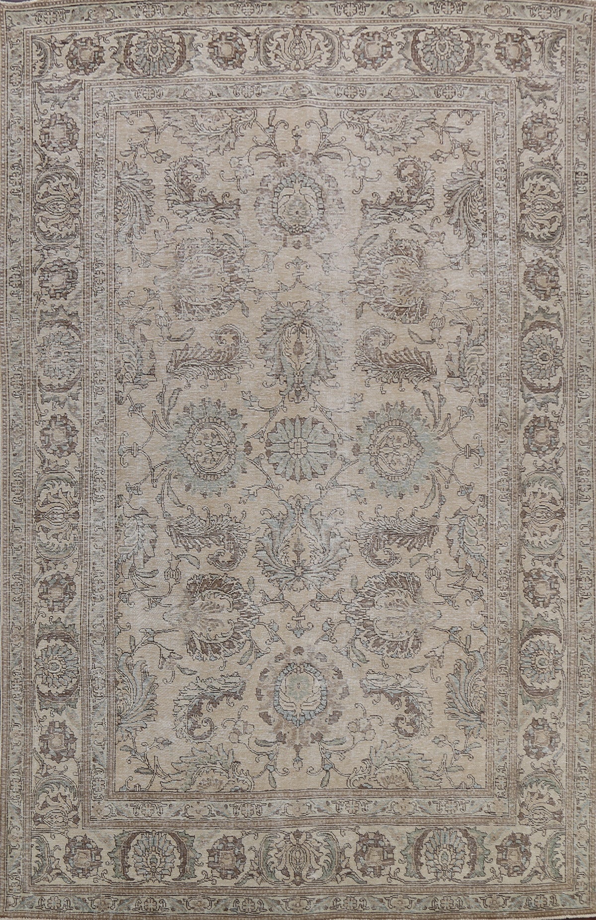 Muted Distressed Floral Tabriz Persian Area Rug 8x11