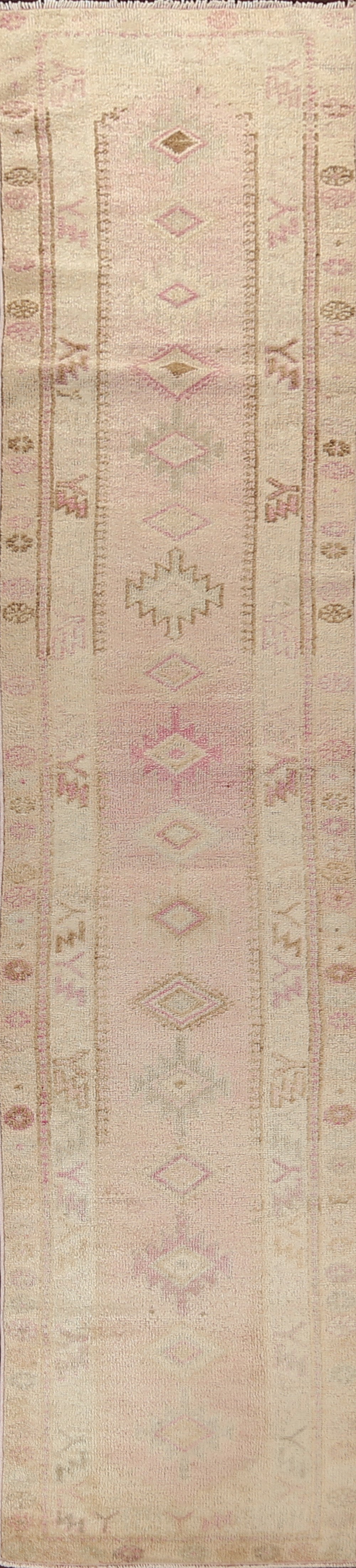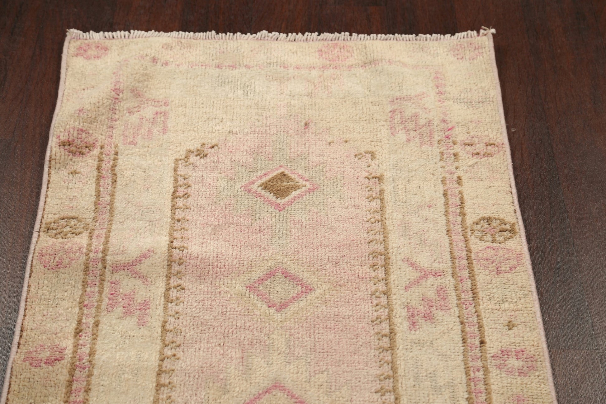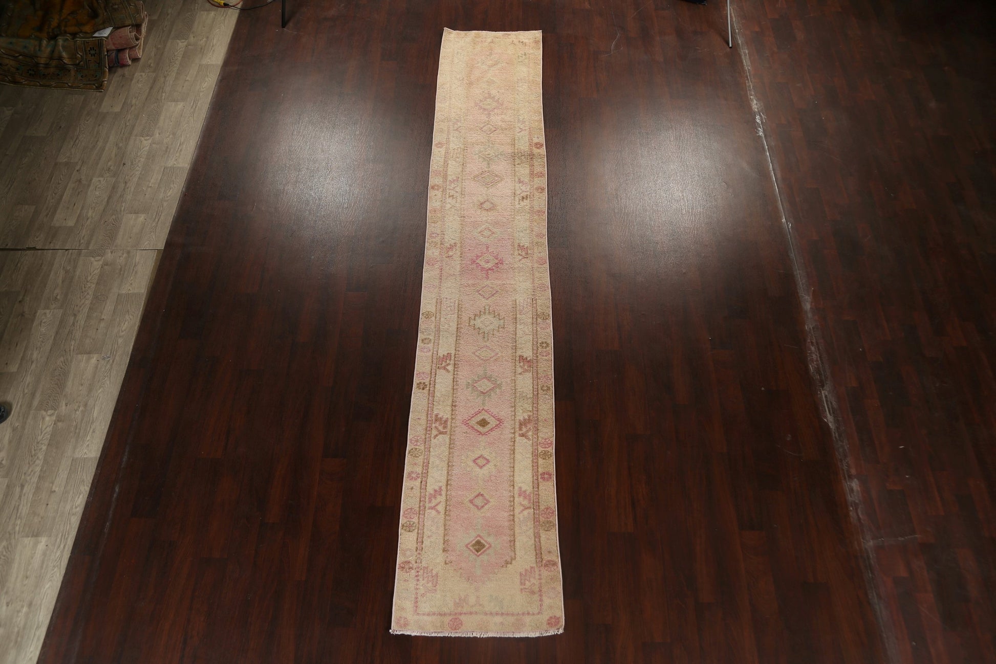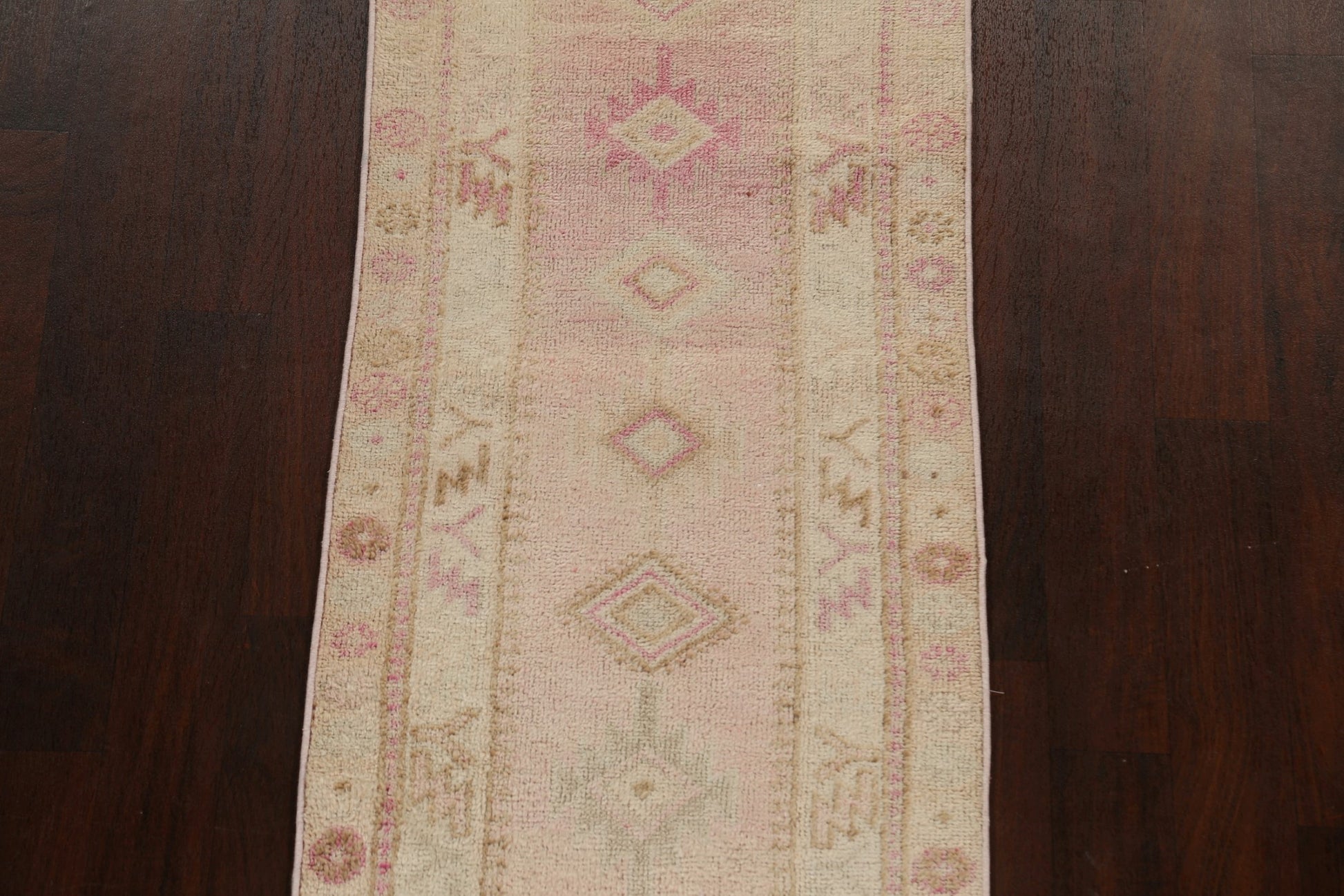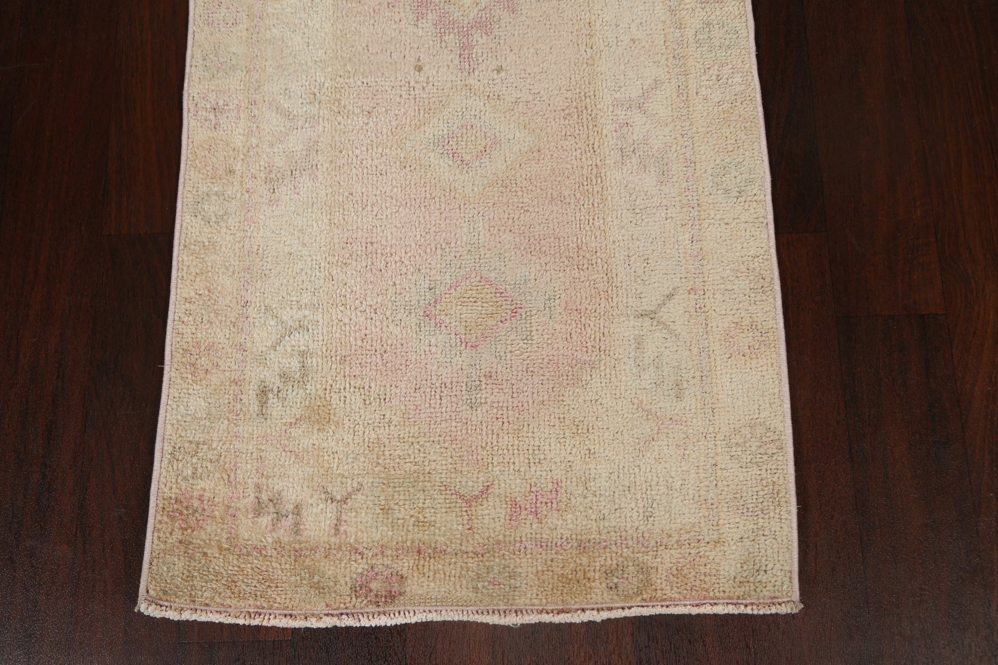 Muted Distressed Geometric Oushak Oriental Runner Rug 2x14