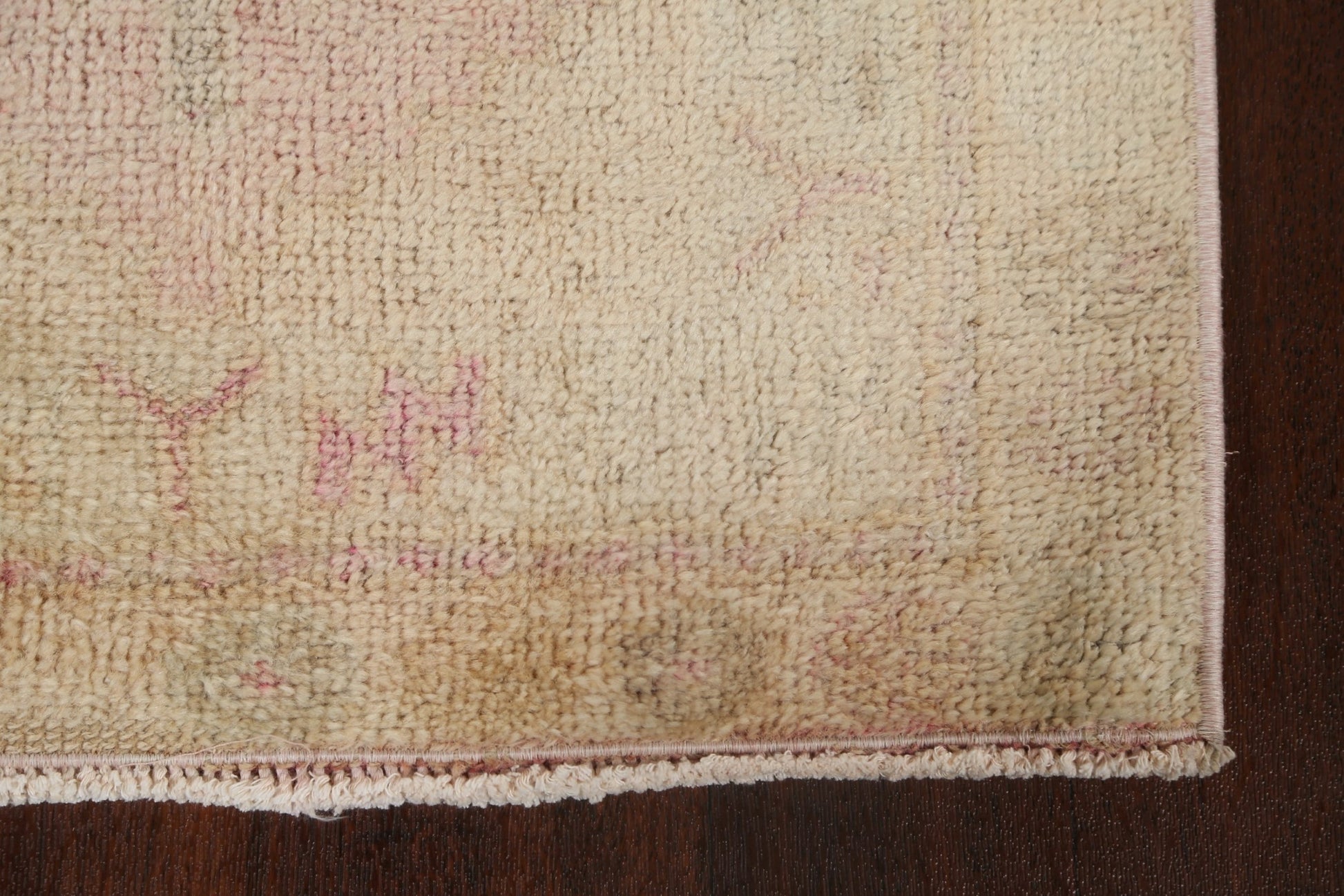 A Beautiful Genuine Turkey Oushak rug is Hand Knotted by skillful weavers in Turkey with 100% Wool Material. This rug is in New, First Quality condition. dimensions are 13' 7'' X 2' 4'' in foot and 414 X 71 in centimeter. the primary color is Pink.