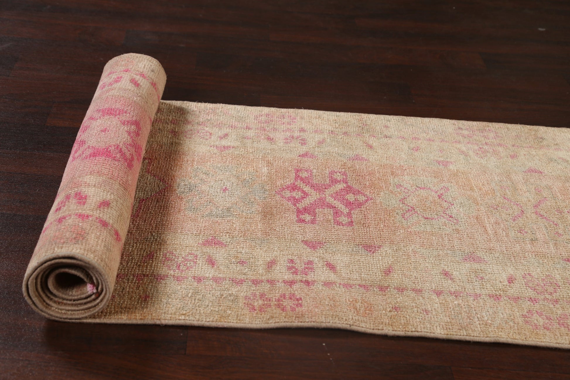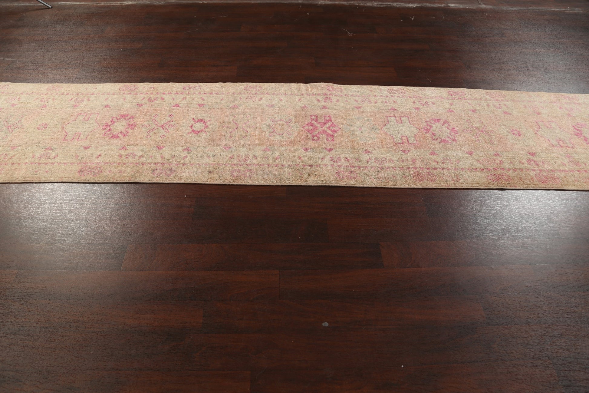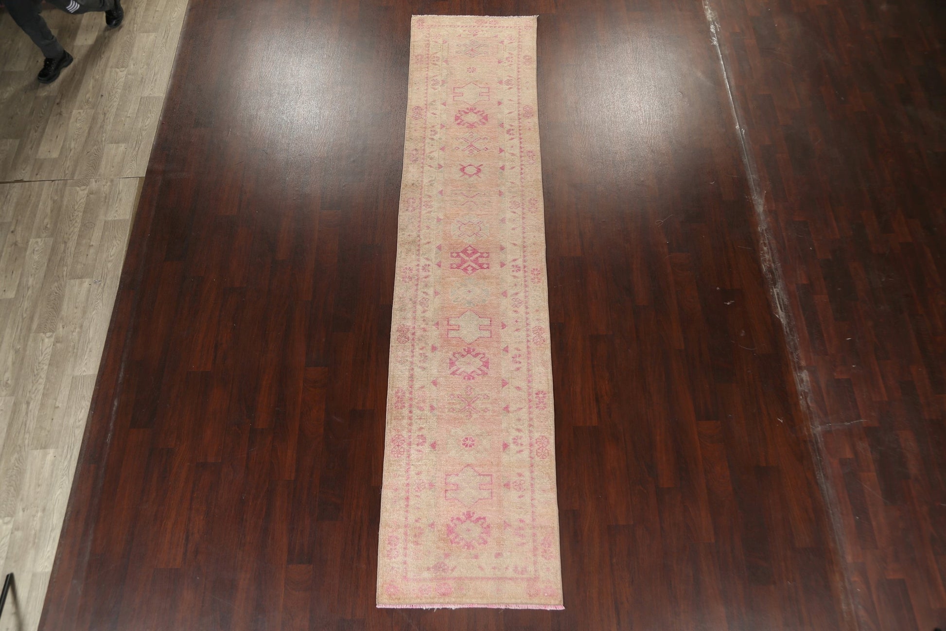 Muted Distressed Geometric Oushak Oriental Runner Rug 3x13