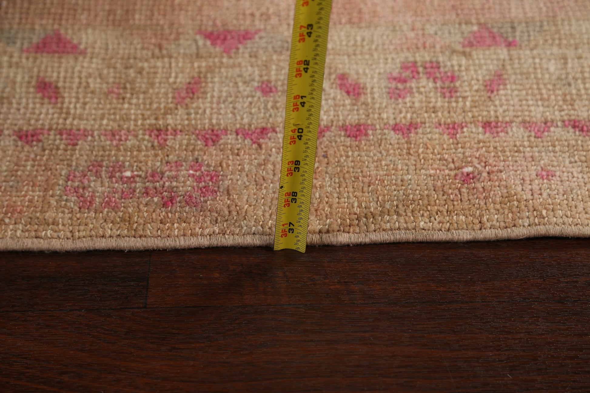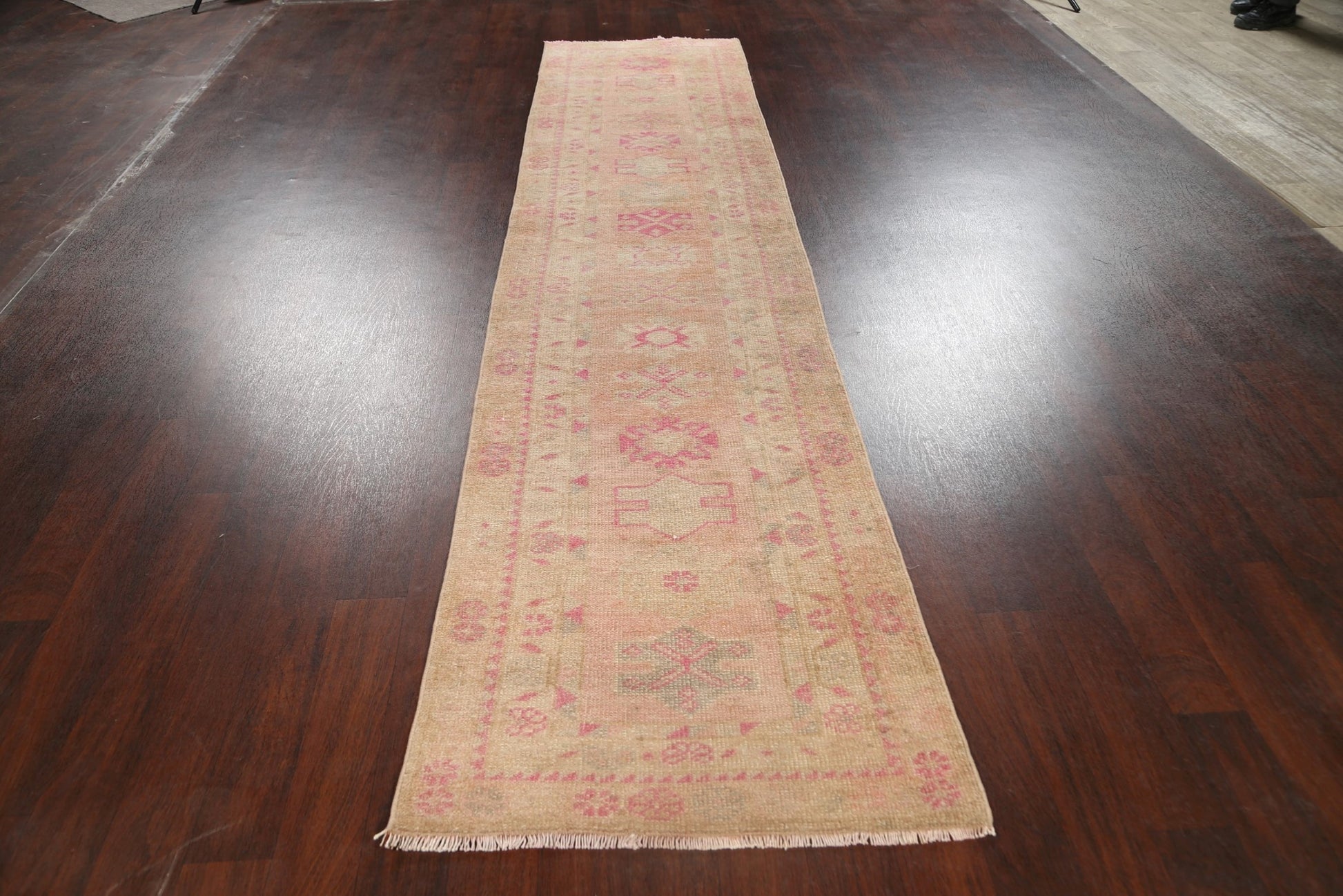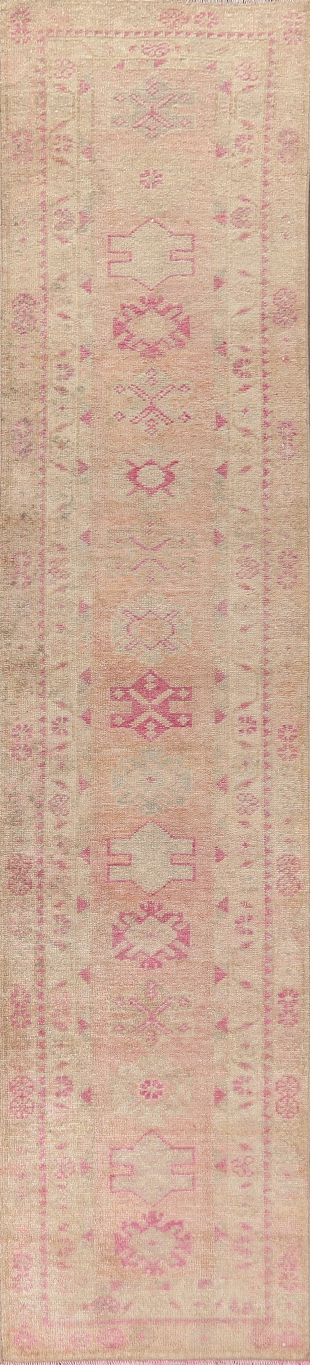 Muted Distressed Geometric Oushak Oriental Runner Rug 3x13