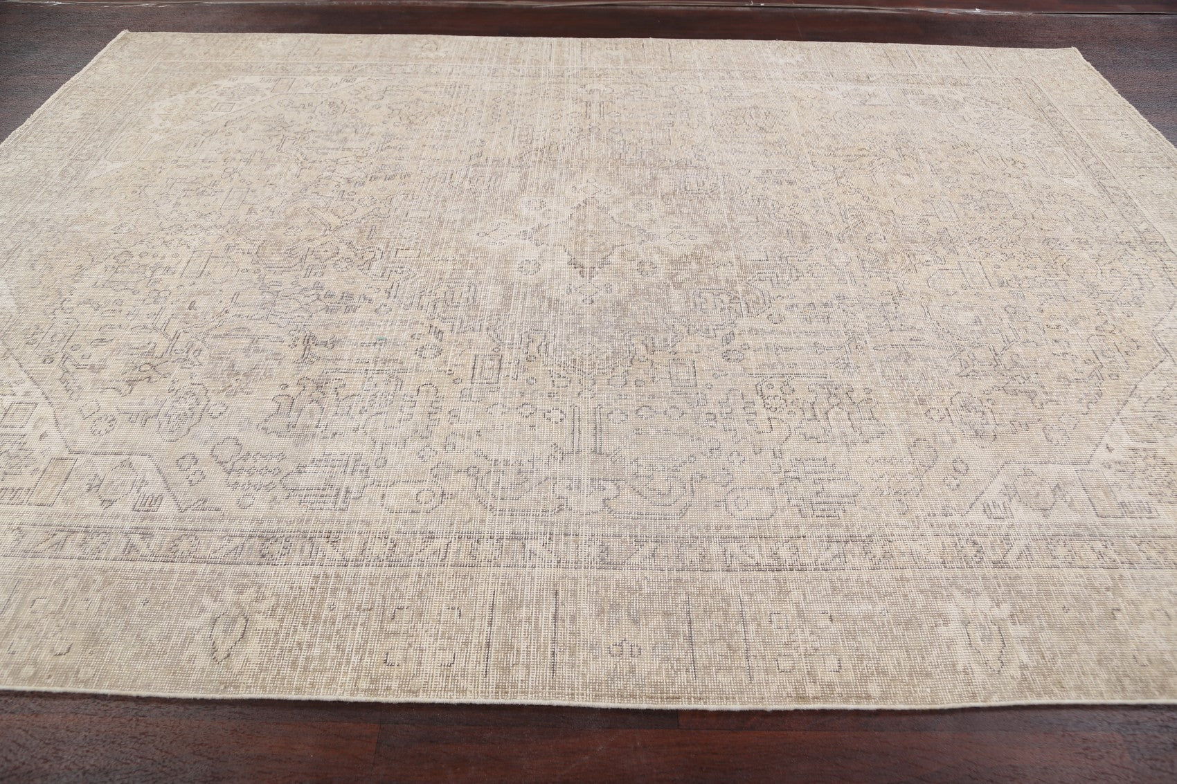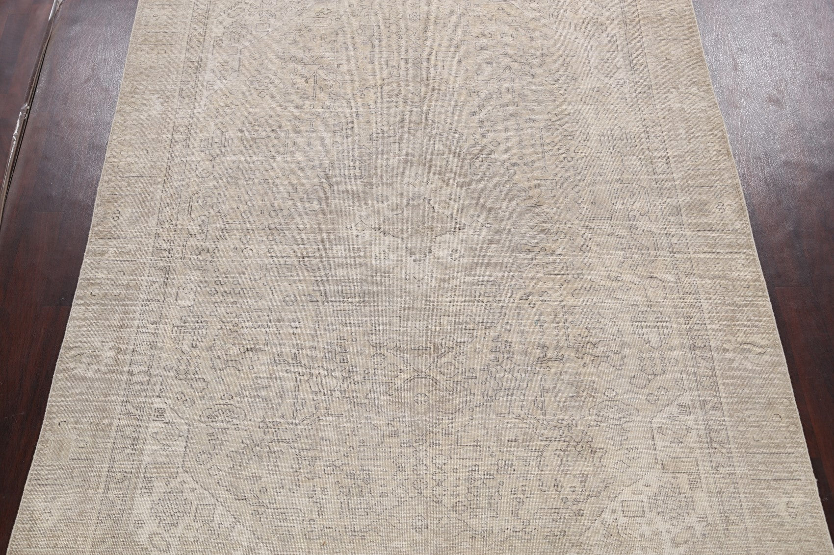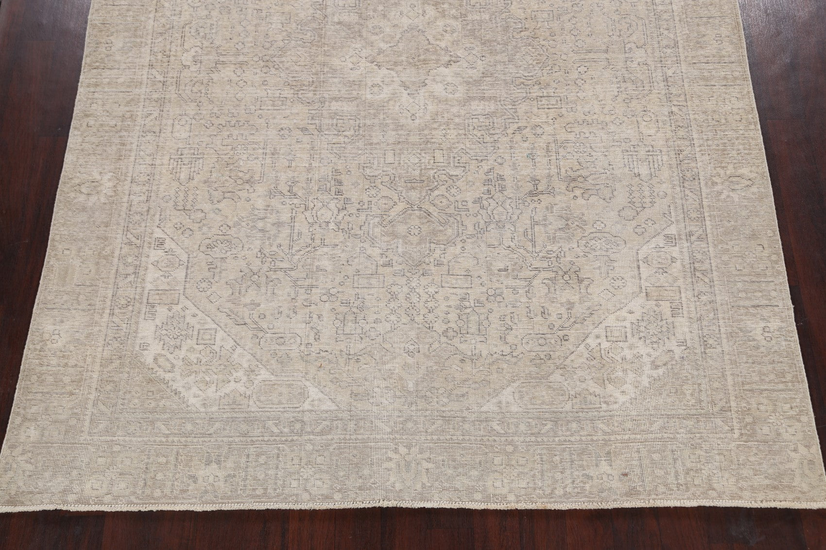 Muted Distressed Geometric Tabriz Persian Area Rug 7x10