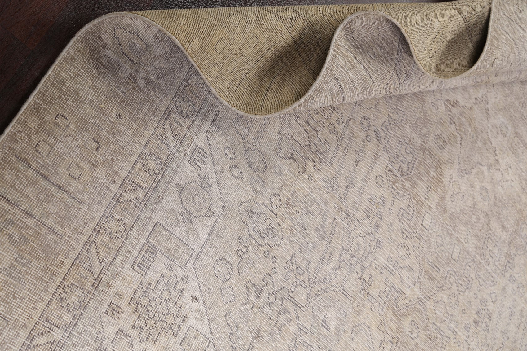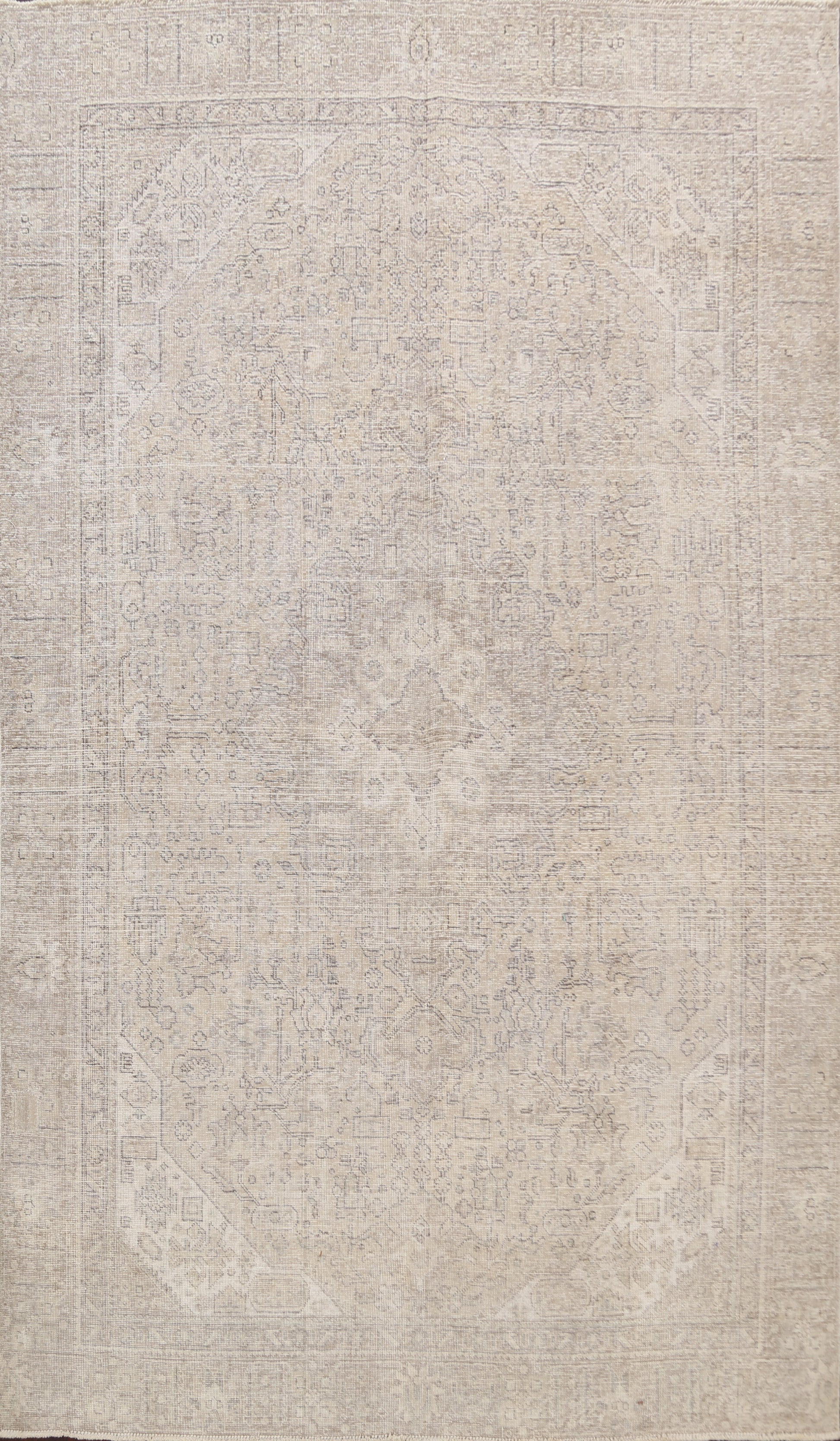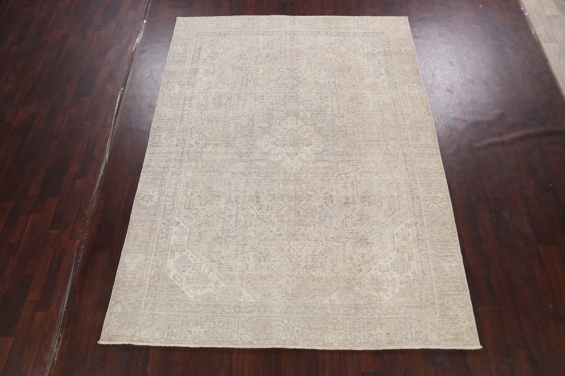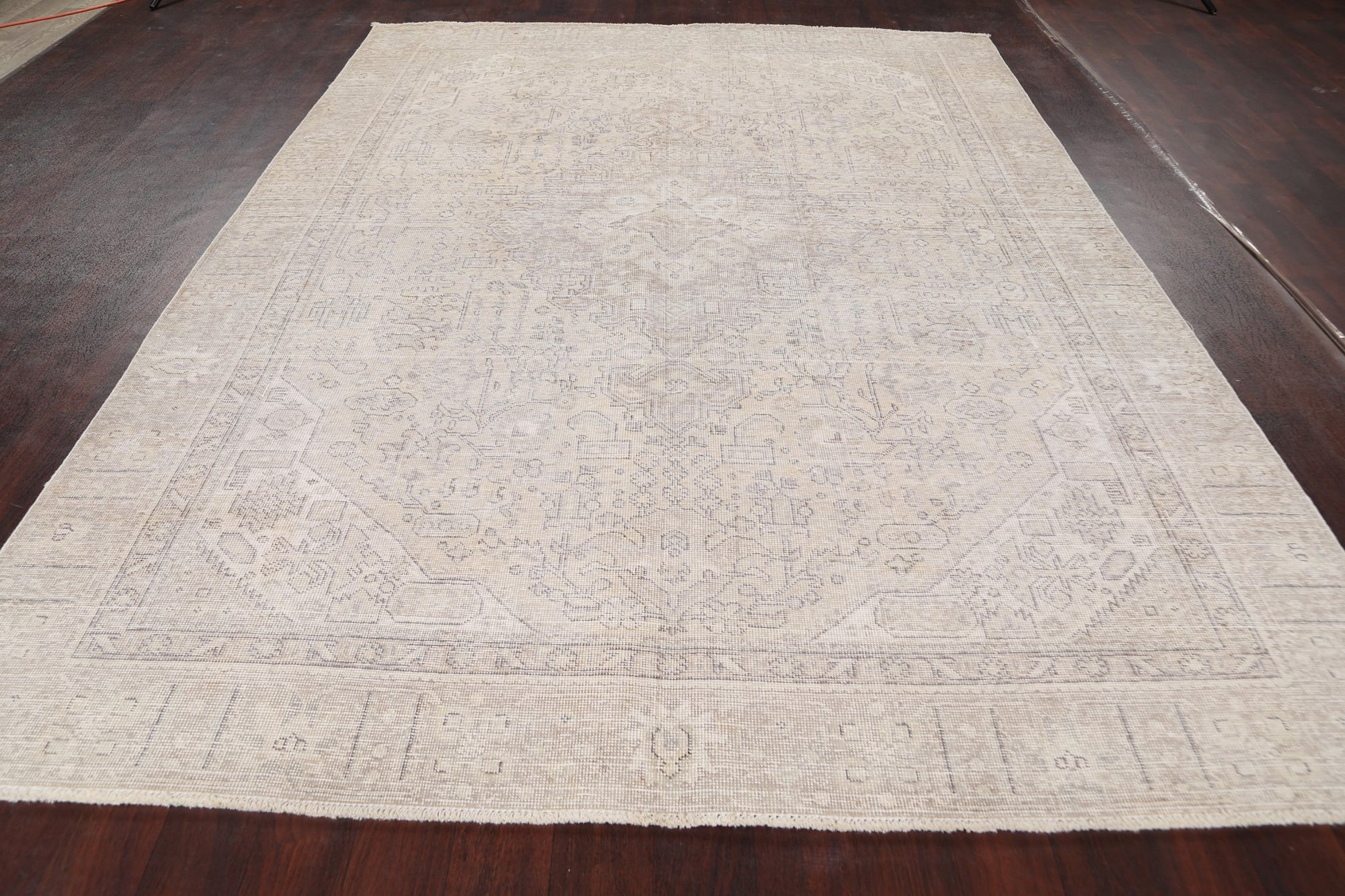 Muted Distressed Geometric Tabriz Persian Area Rug 7x10