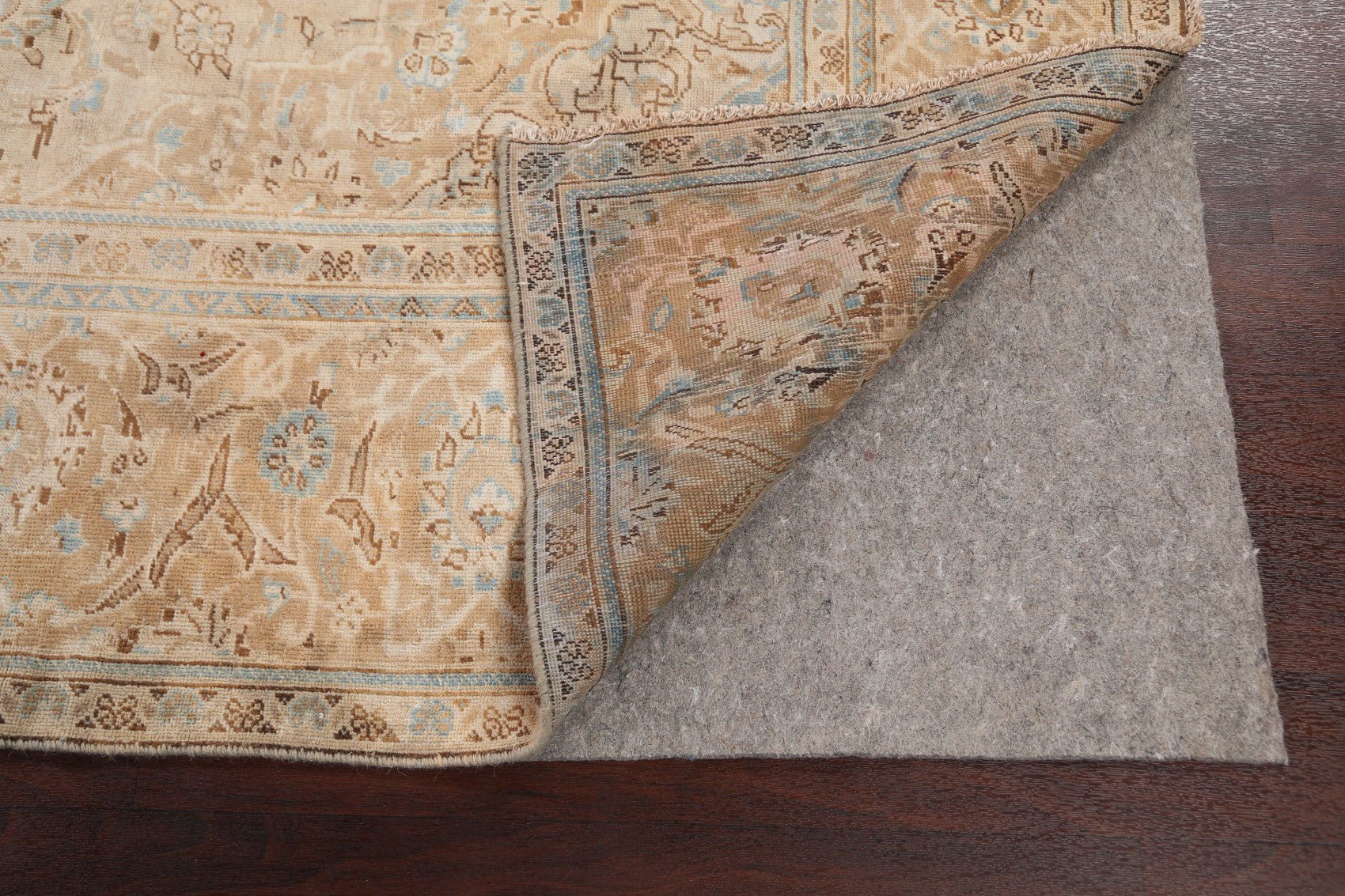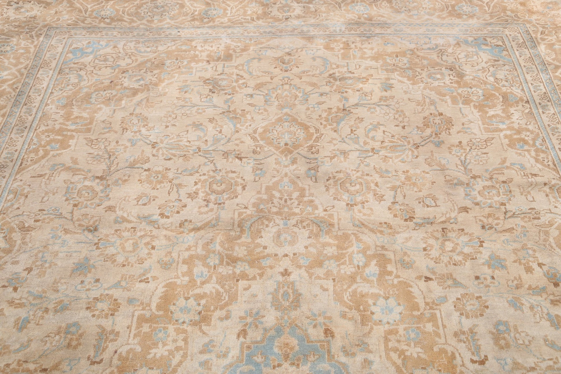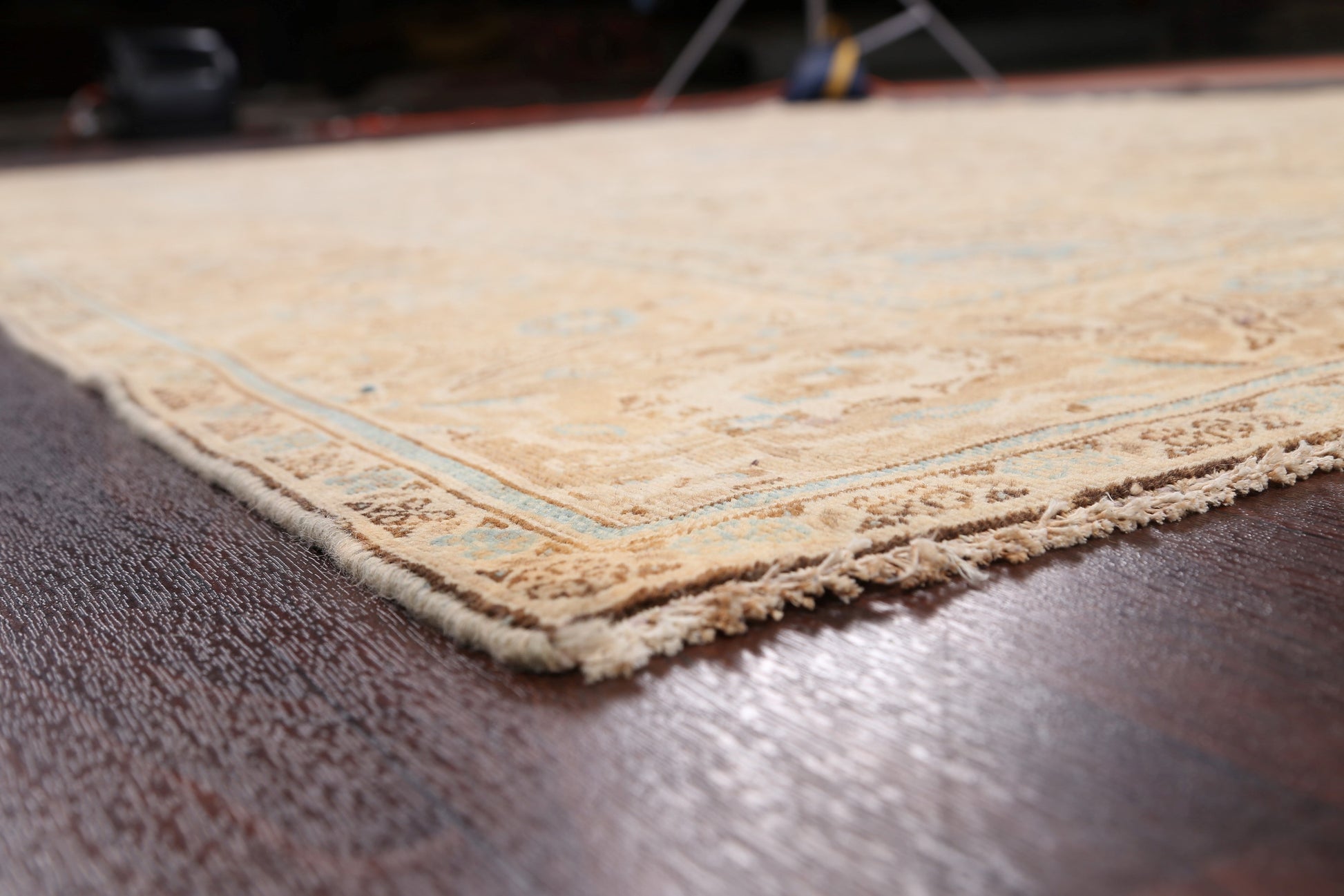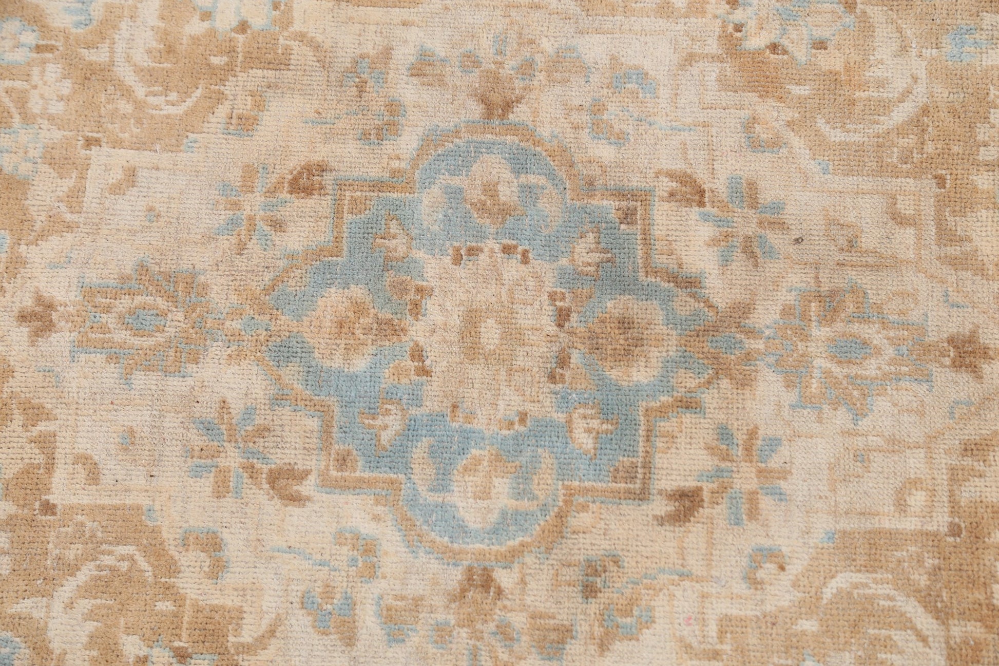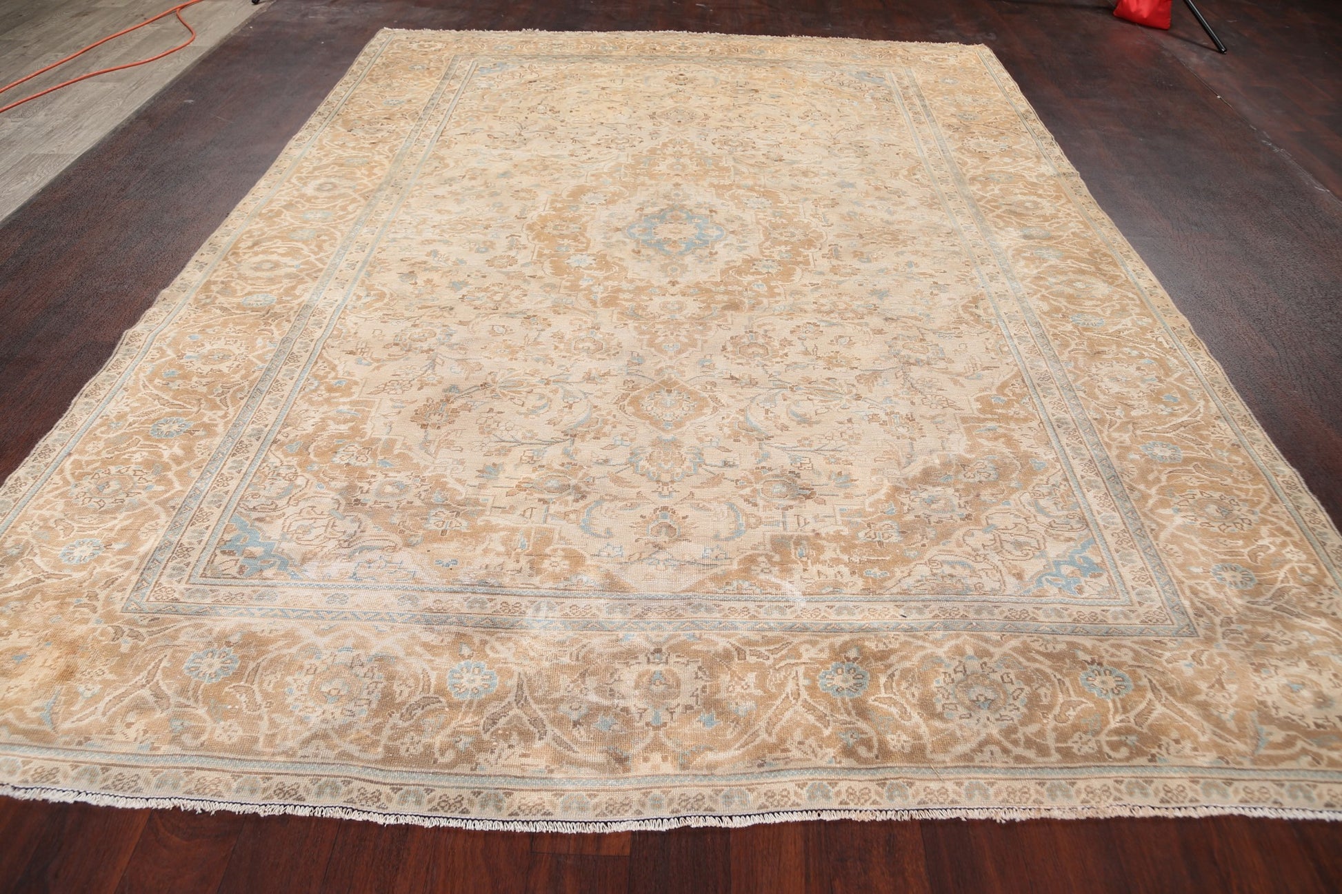 A Beautiful Genuine Persia ( Persia ) Kashan rug is Hand Knotted by skillful weavers in Persia ( Persia ) with 100% Wool Material. This rug is in Very Good (Evenly Low Pile) condition. dimensions are 10' 6'' X 7' 9'' in foot and 320 X 236 in centimeter. the primary color is Beige & Ivories.