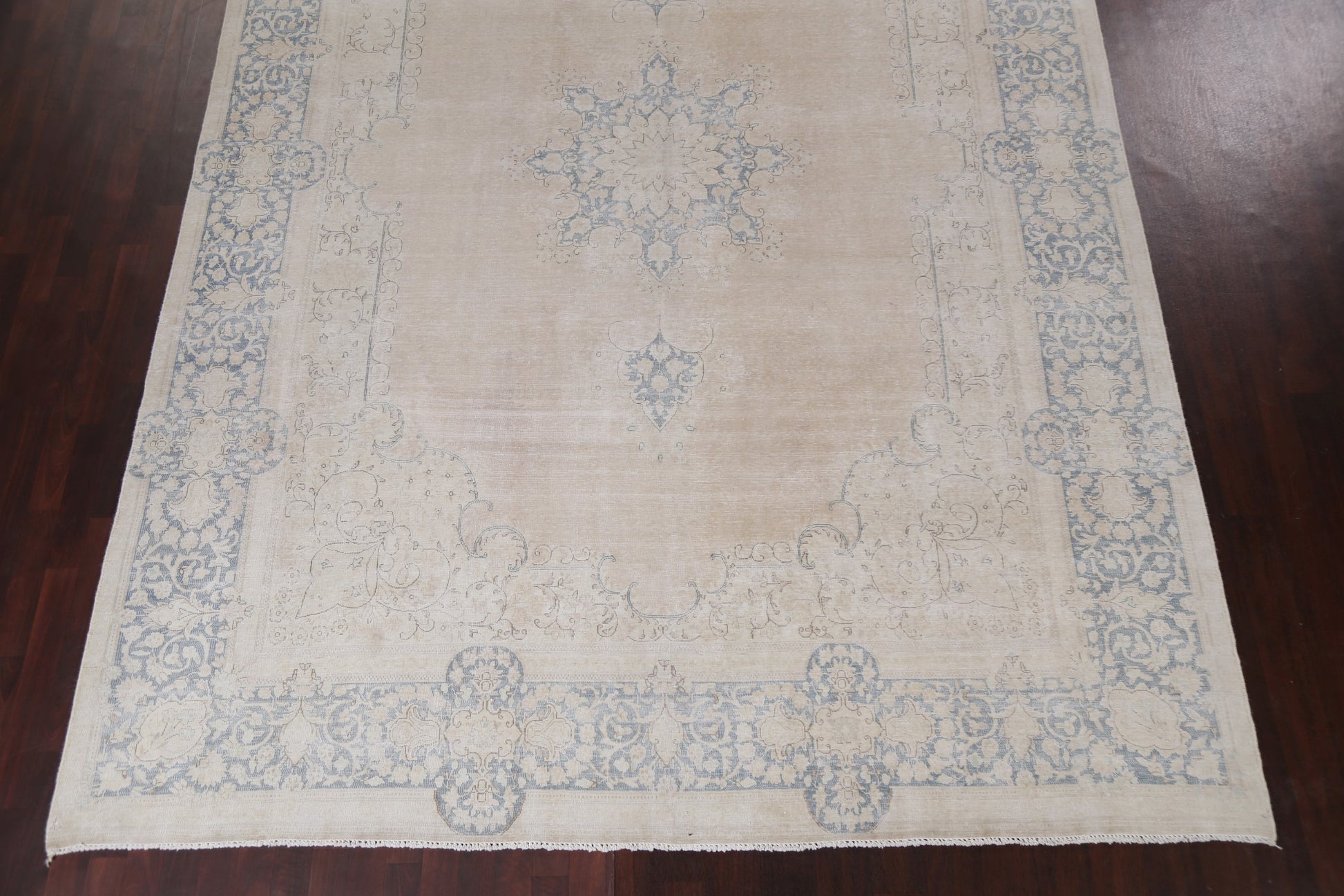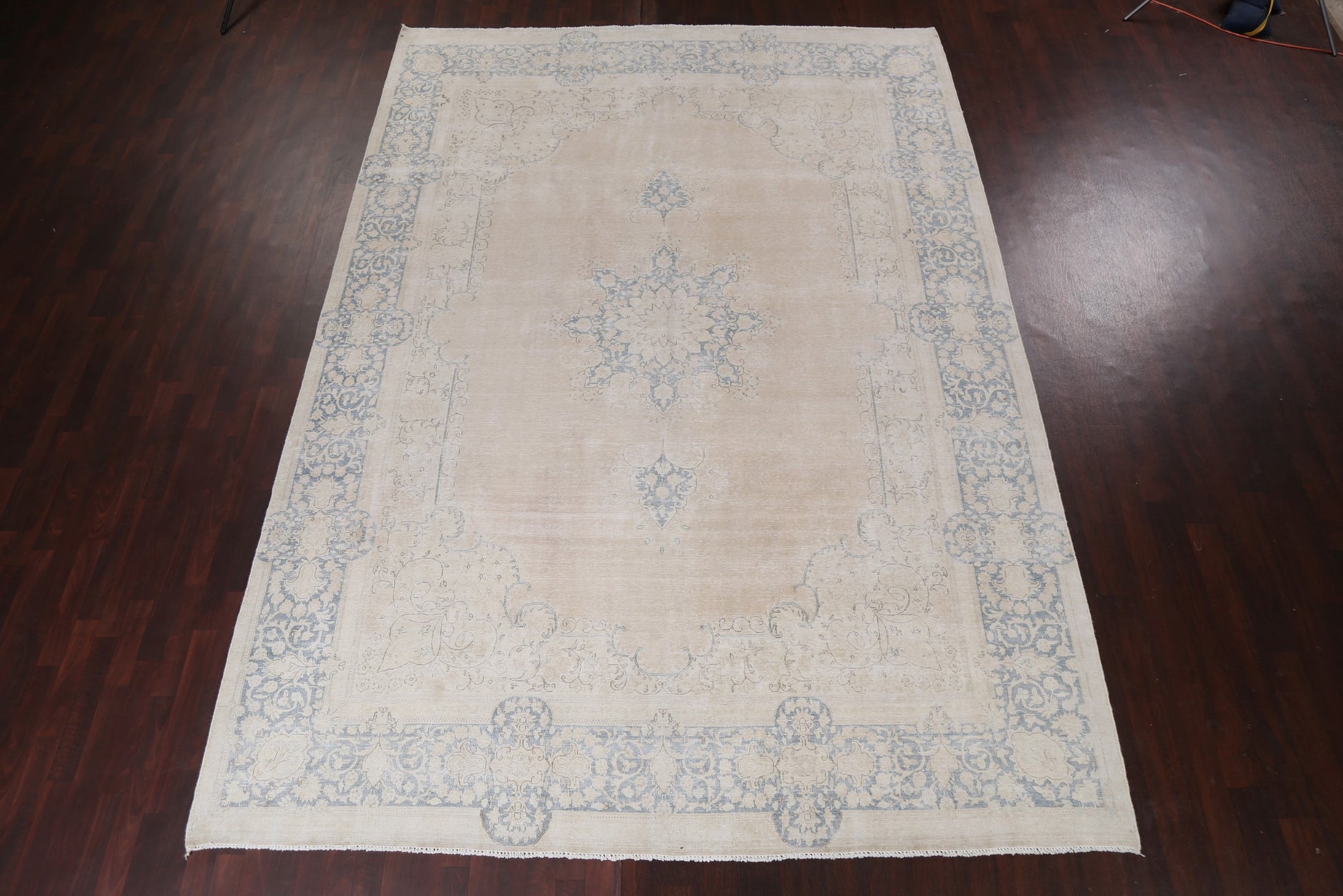 Muted Distressed Kashan Persian Area Rug 9x13