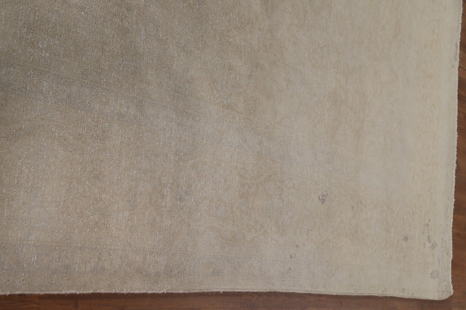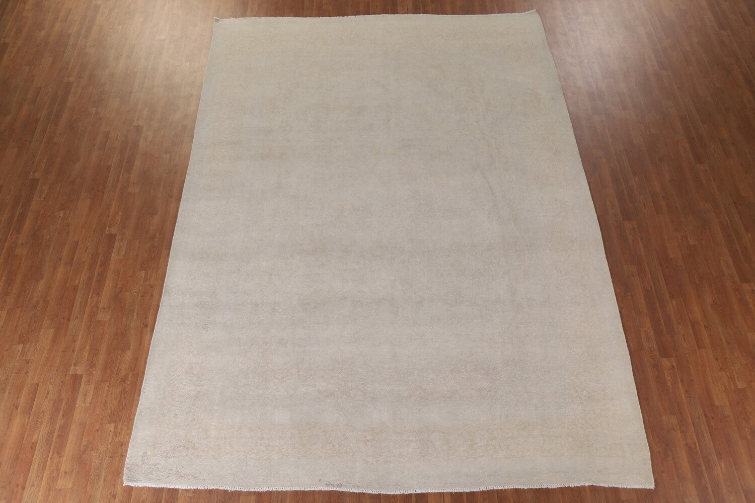 A Beautiful Genuine Persia ( Persia ) Kashan rug is Hand Knotted by skillful weavers in Persia ( Persia ) with 100% Wool Material. This rug is in Very Good (Low Pile-Abrash) condition. dimensions are 13' 0'' X 9' 4'' in foot and 396 X 284 in centimeter. the primary color is Beige & Ivories.