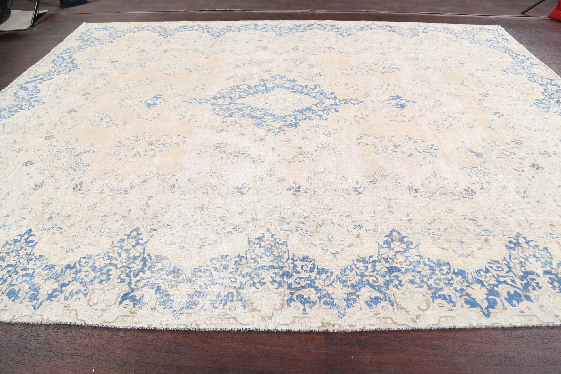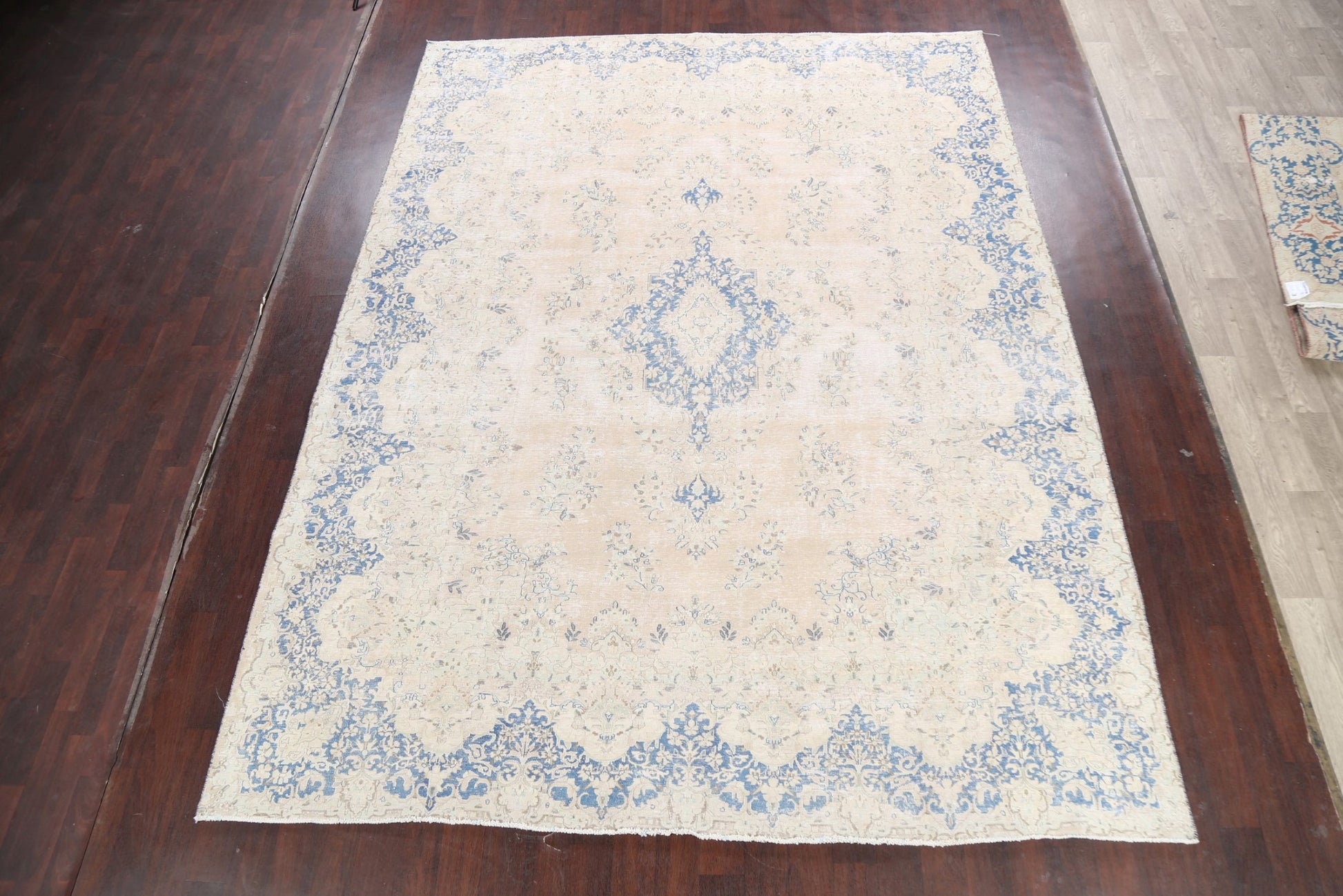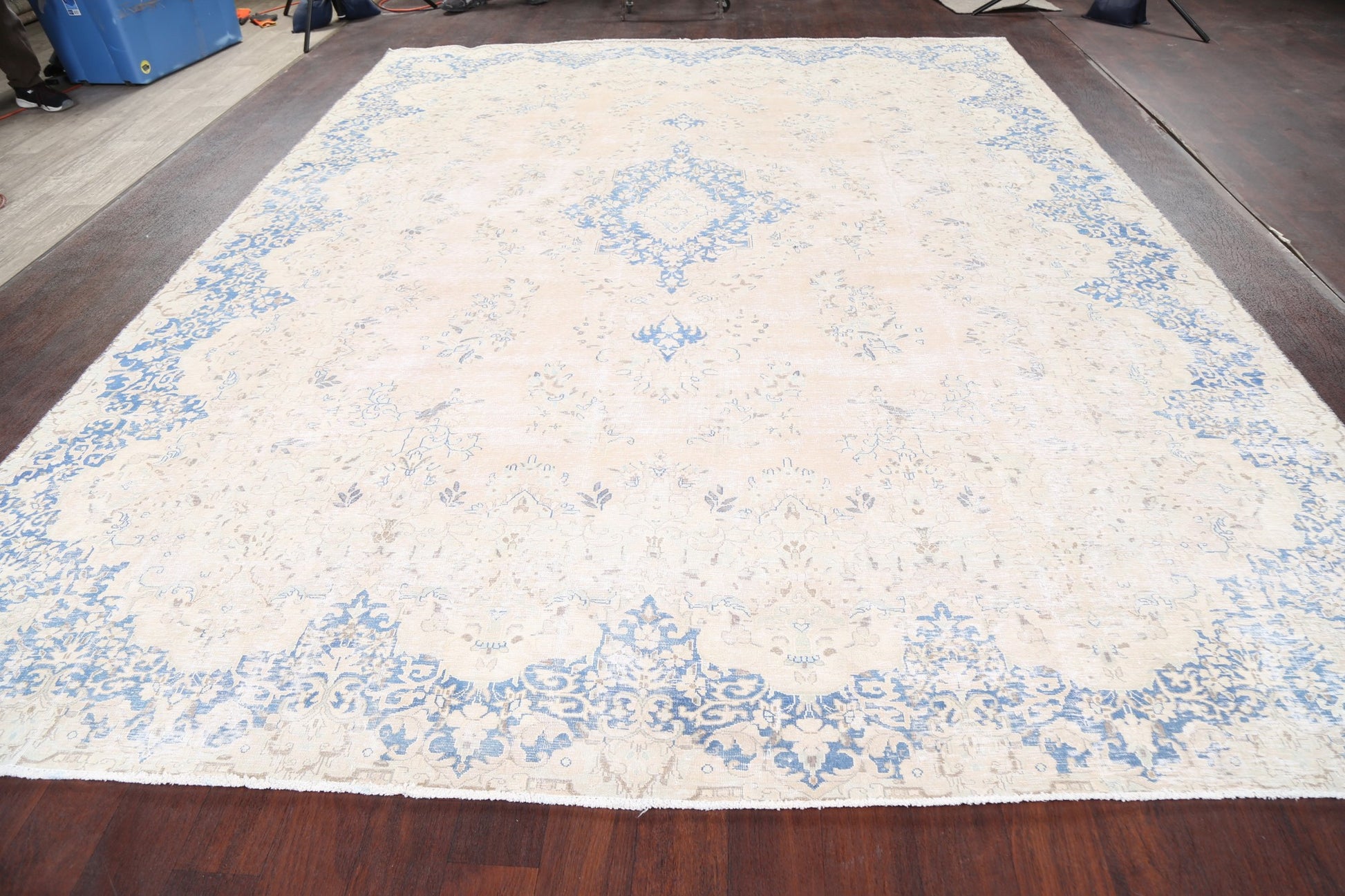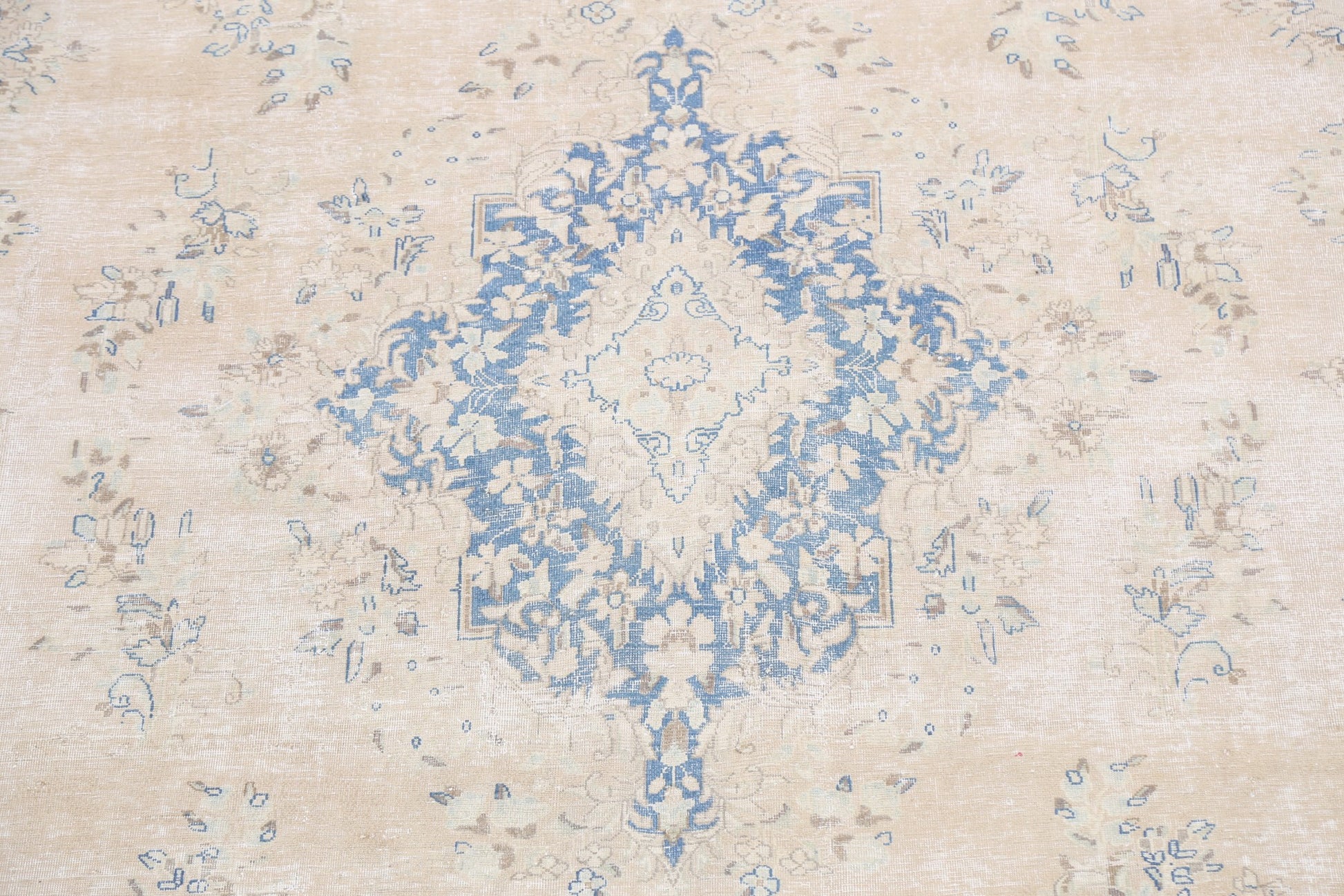 A Beautiful Genuine Persia ( Persia ) Kerman rug is Hand Knotted by skillful weavers in Persia ( Persia ) with 100% Wool Material. This rug is in Very Good (Evenly Low Pile) condition. dimensions are 12' 4'' X 9' 7'' in foot and 376 X 292 in centimeter. the primary color is Peach.