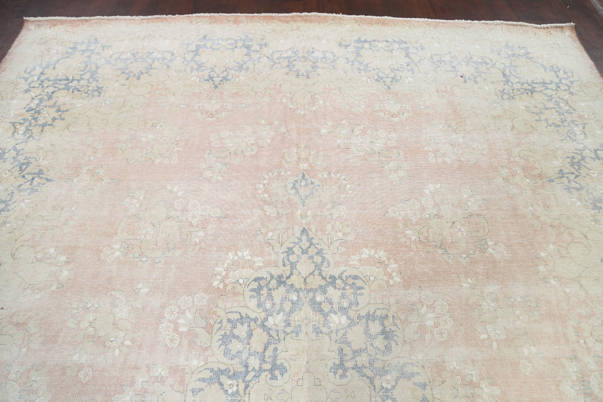 A Beautiful Genuine Persia ( Persia ) Kerman rug is Hand Knotted by skillful weavers in Persia ( Persia ) with 100% Wool Material. This rug is in Very Good (Evenly Low Pile) condition. dimensions are 12' 5'' X 10' 0'' in foot and 378 X 305 in centimeter. the primary color is Pink.