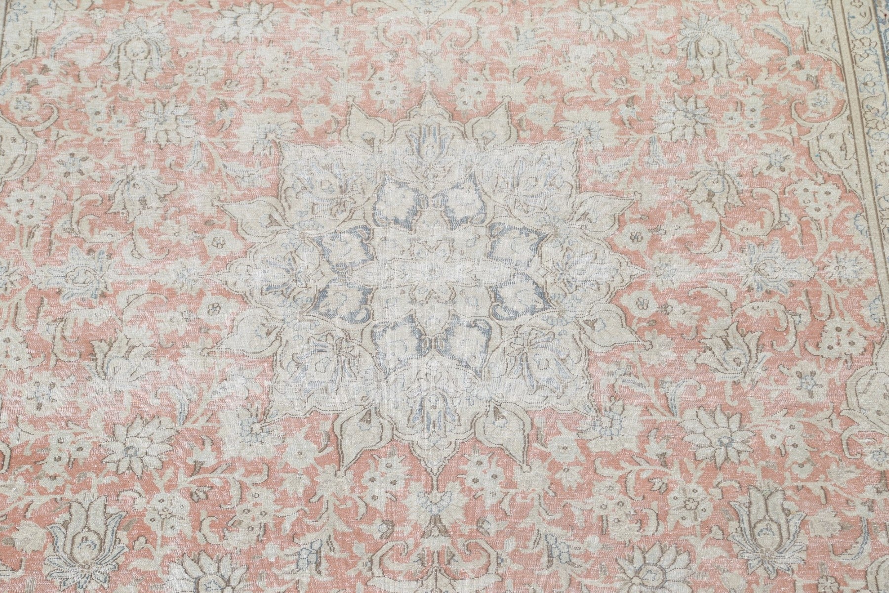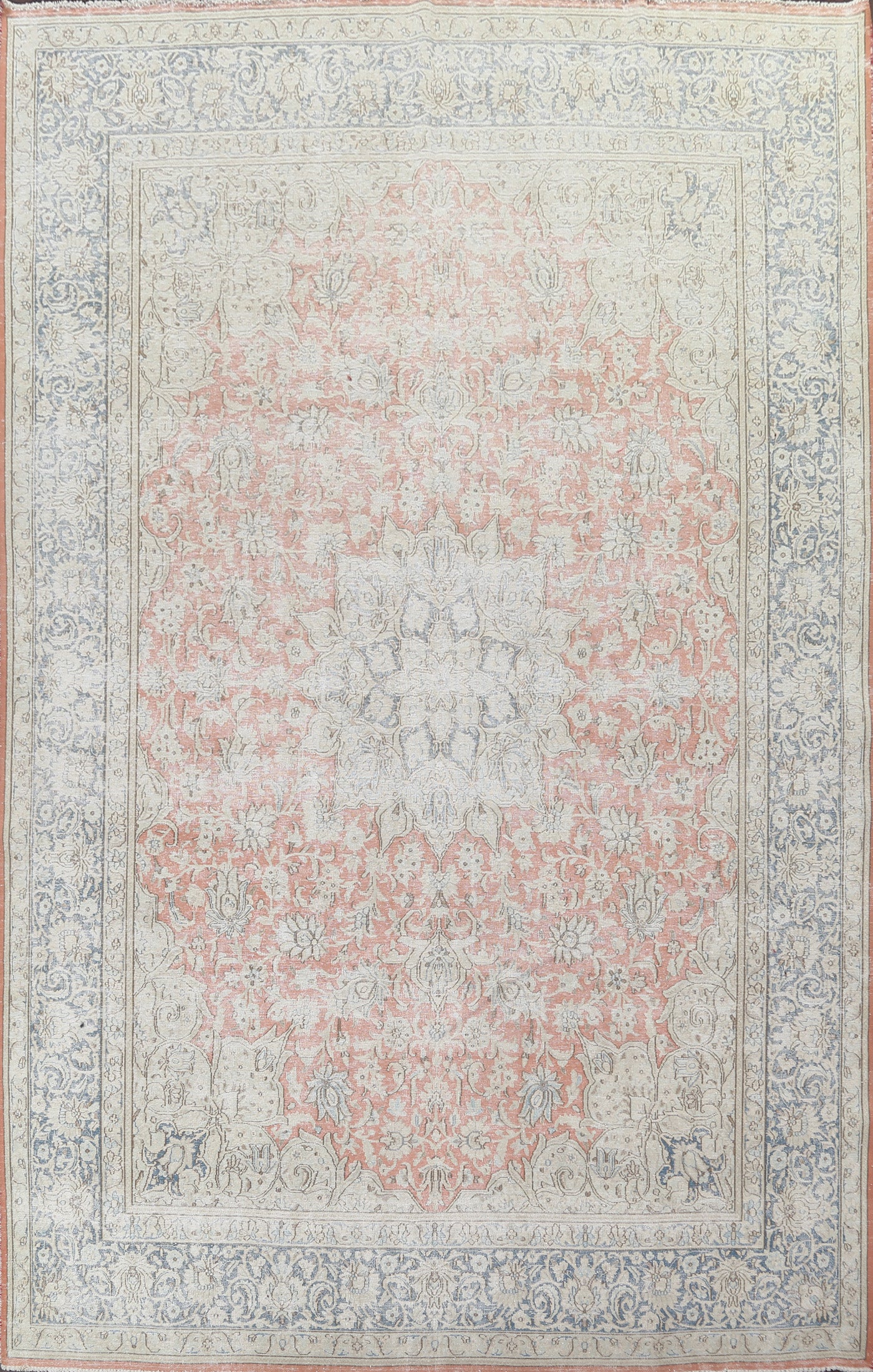 A Beautiful Genuine Persia ( Persia ) Kerman rug is Hand Knotted by skillful weavers in Persia ( Persia ) with 100% Wool Material. This rug is in Very Good (Evenly Low Pile) condition. dimensions are 12' 4'' X 9' 7'' in foot and 376 X 292 in centimeter. the primary color is Coral.