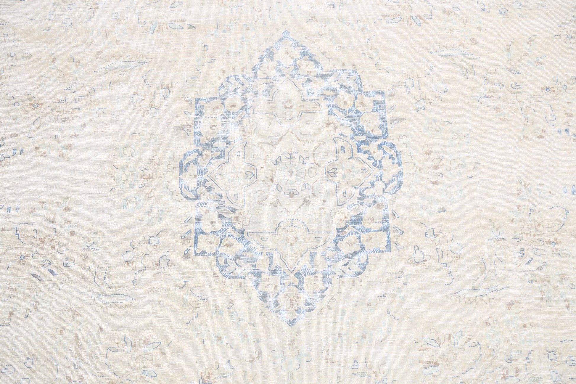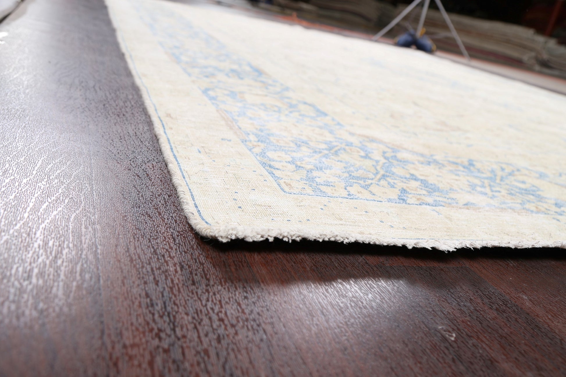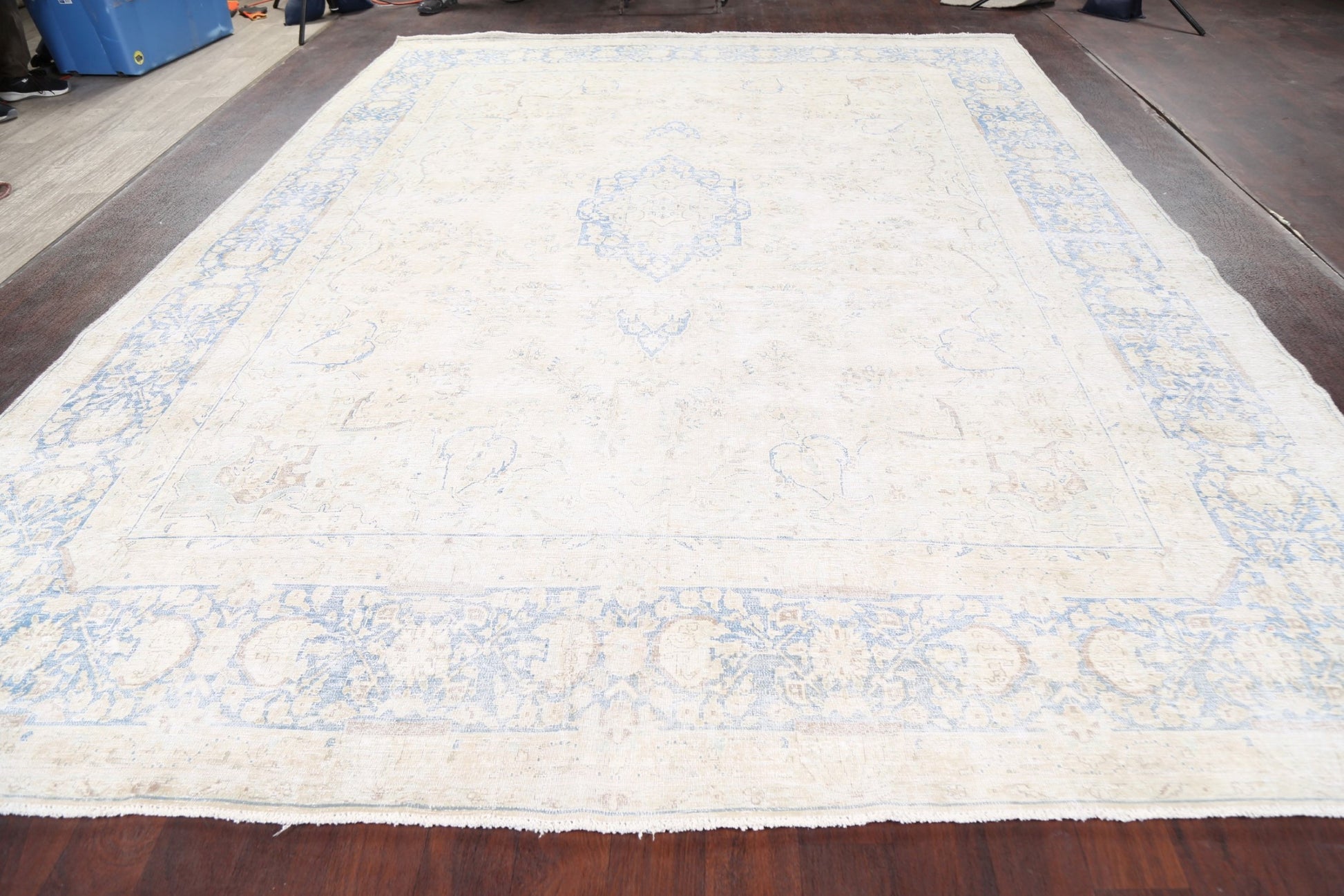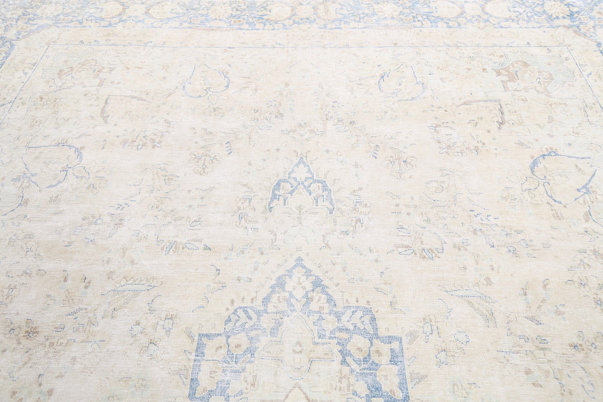 A Beautiful Genuine Persia ( Persia ) Kerman rug is Hand Knotted by skillful weavers in Persia ( Persia ) with 100% Wool Material. This rug is in Very Good (Evenly Low Pile) condition. dimensions are 12' 10'' X 9' 8'' in foot and 391 X 295 in centimeter. the primary color is Beige & Ivories.