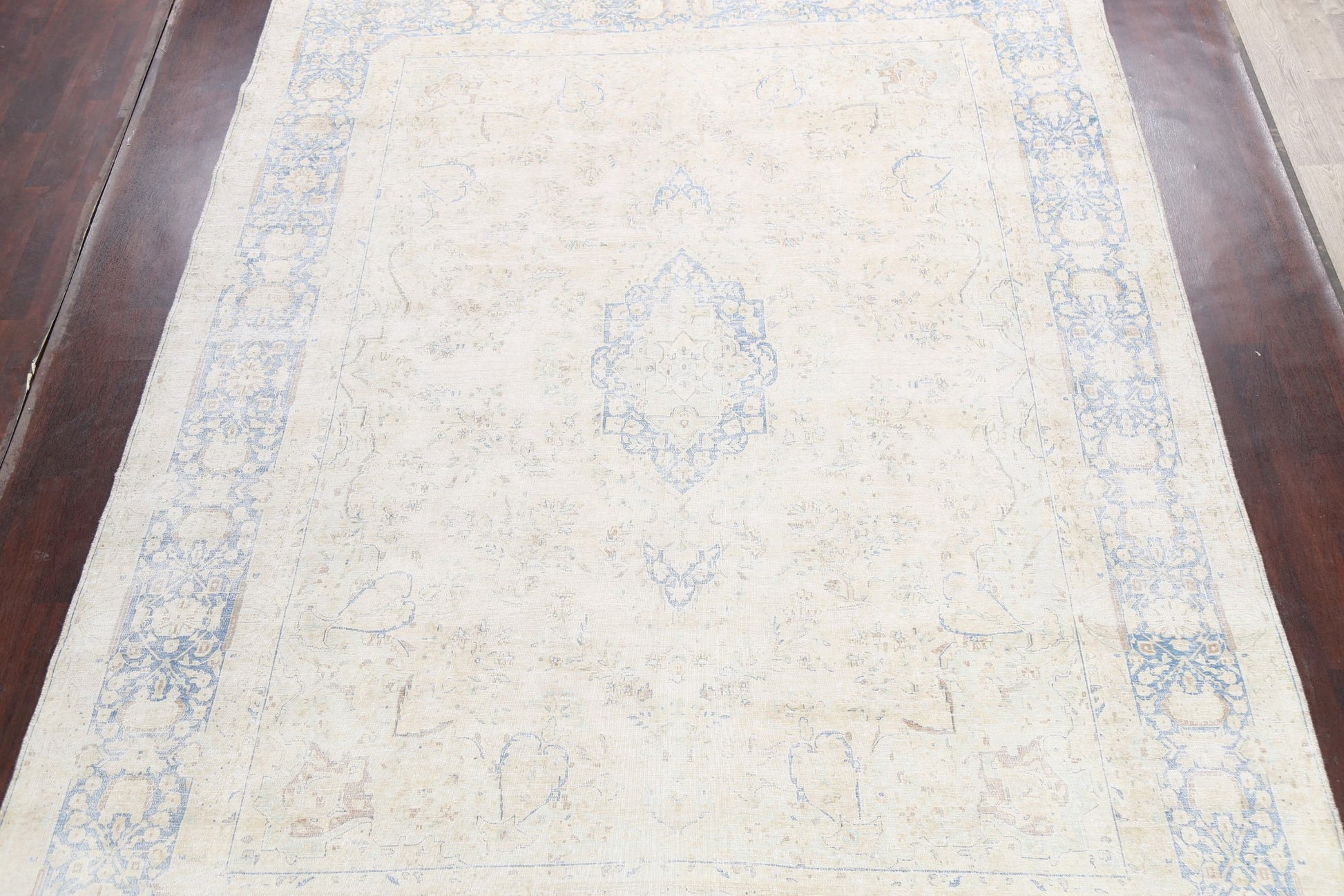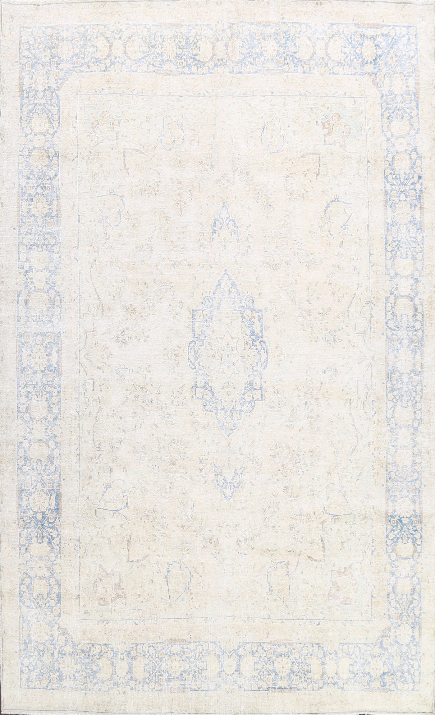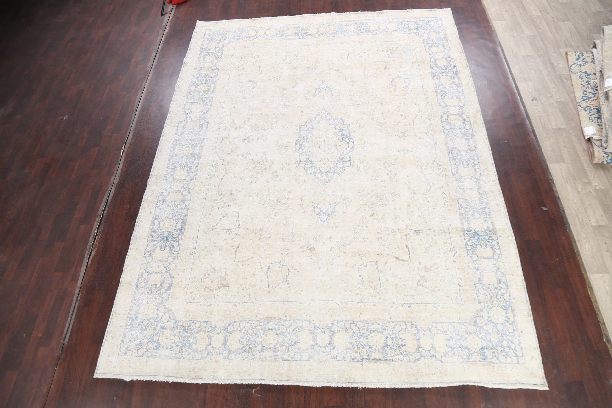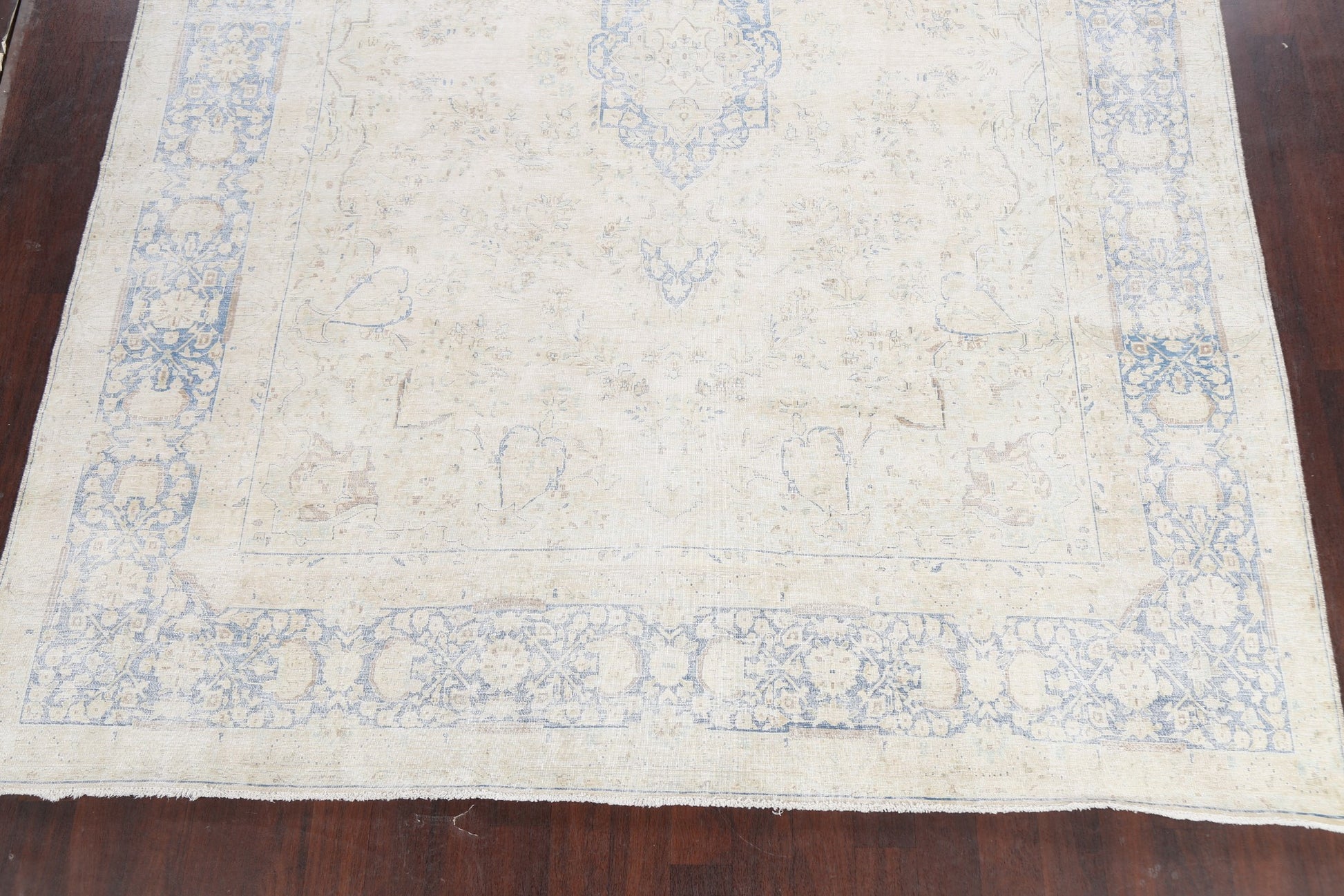 A Beautiful Genuine Persia ( Persia ) Kerman rug is Hand Knotted by skillful weavers in Persia ( Persia ) with 100% Wool Material. This rug is in Very Good (Evenly Low Pile) condition. dimensions are 12' 10'' X 9' 8'' in foot and 391 X 295 in centimeter. the primary color is Beige & Ivories.
